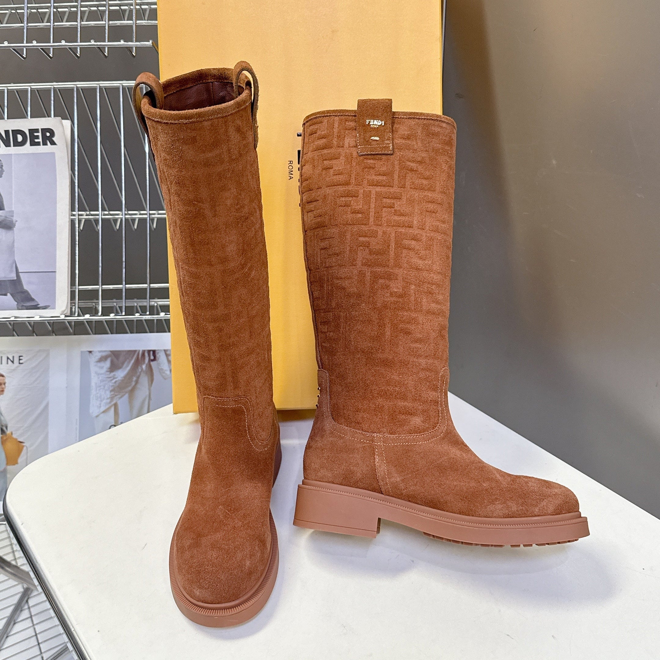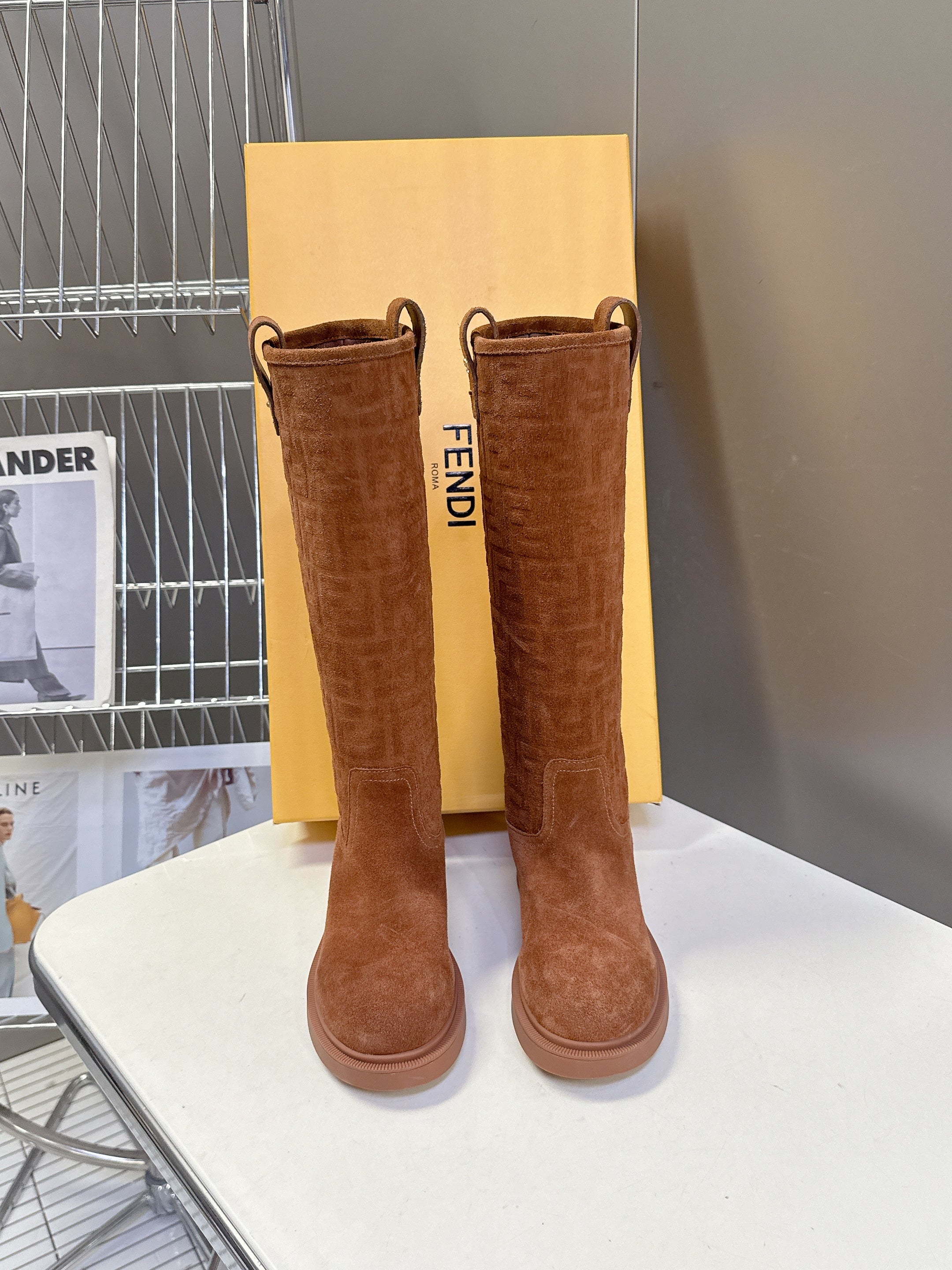 FENDI 25S HIGH-CUT BOOTS IN BROWN SUEDE