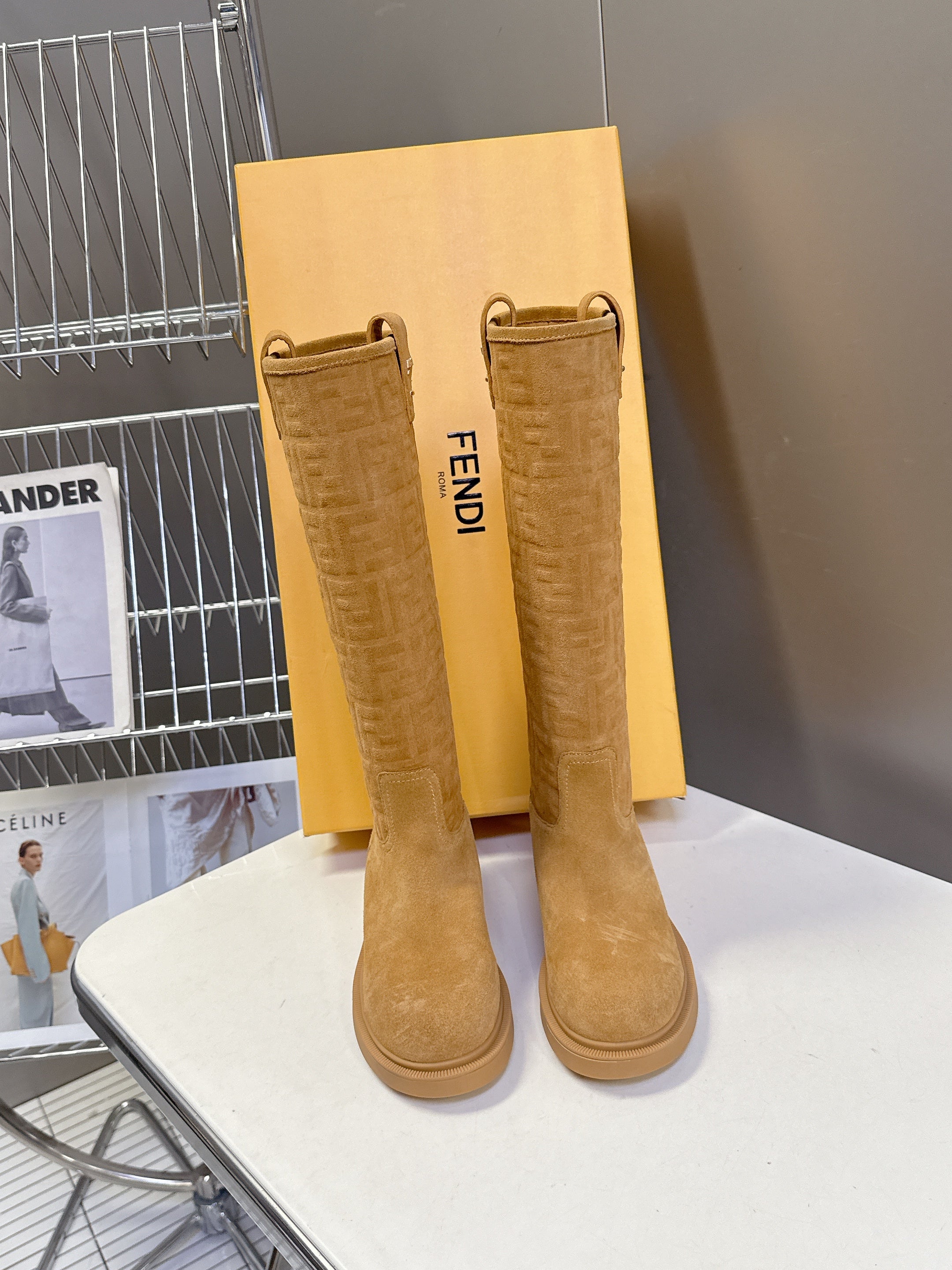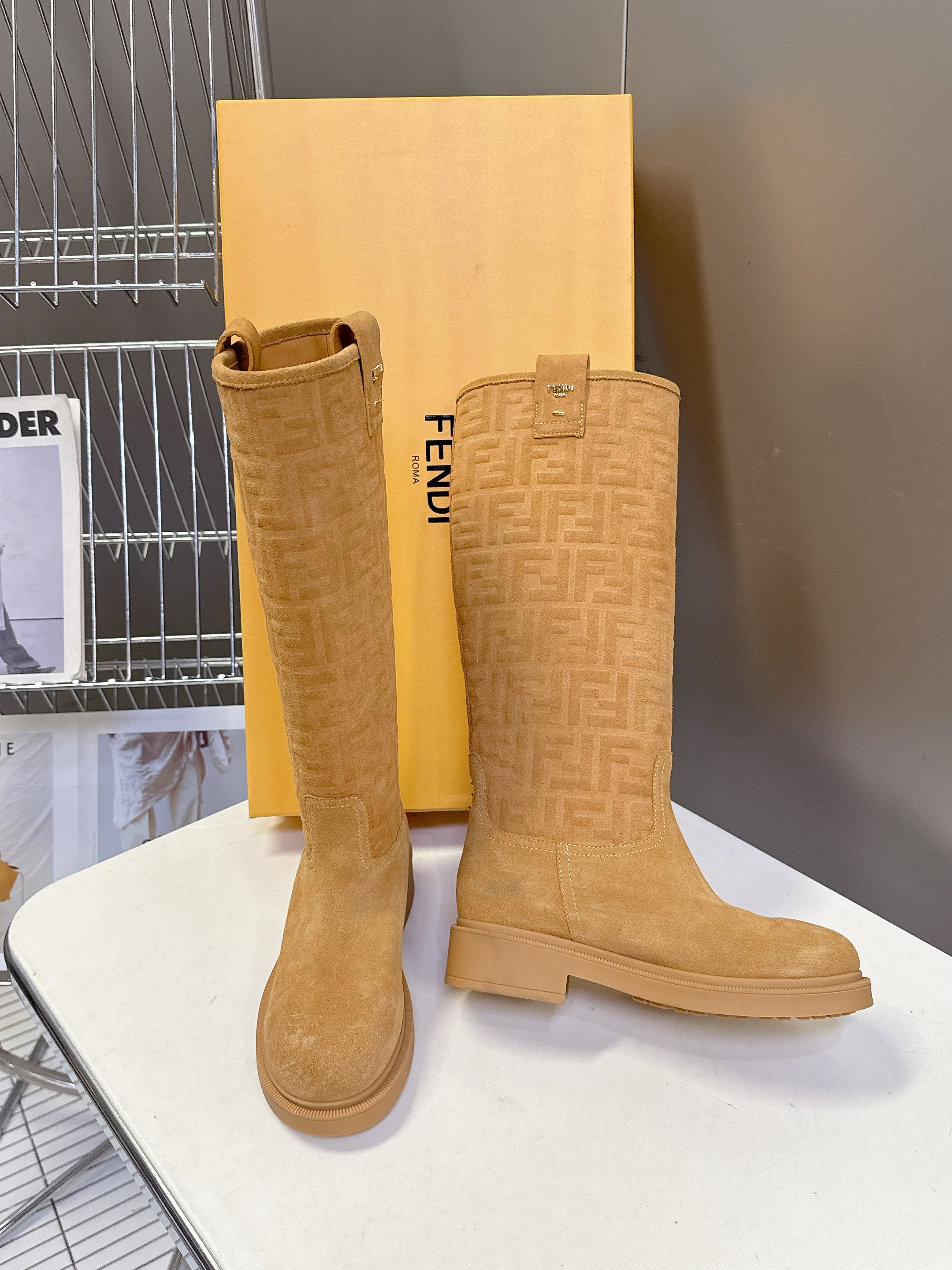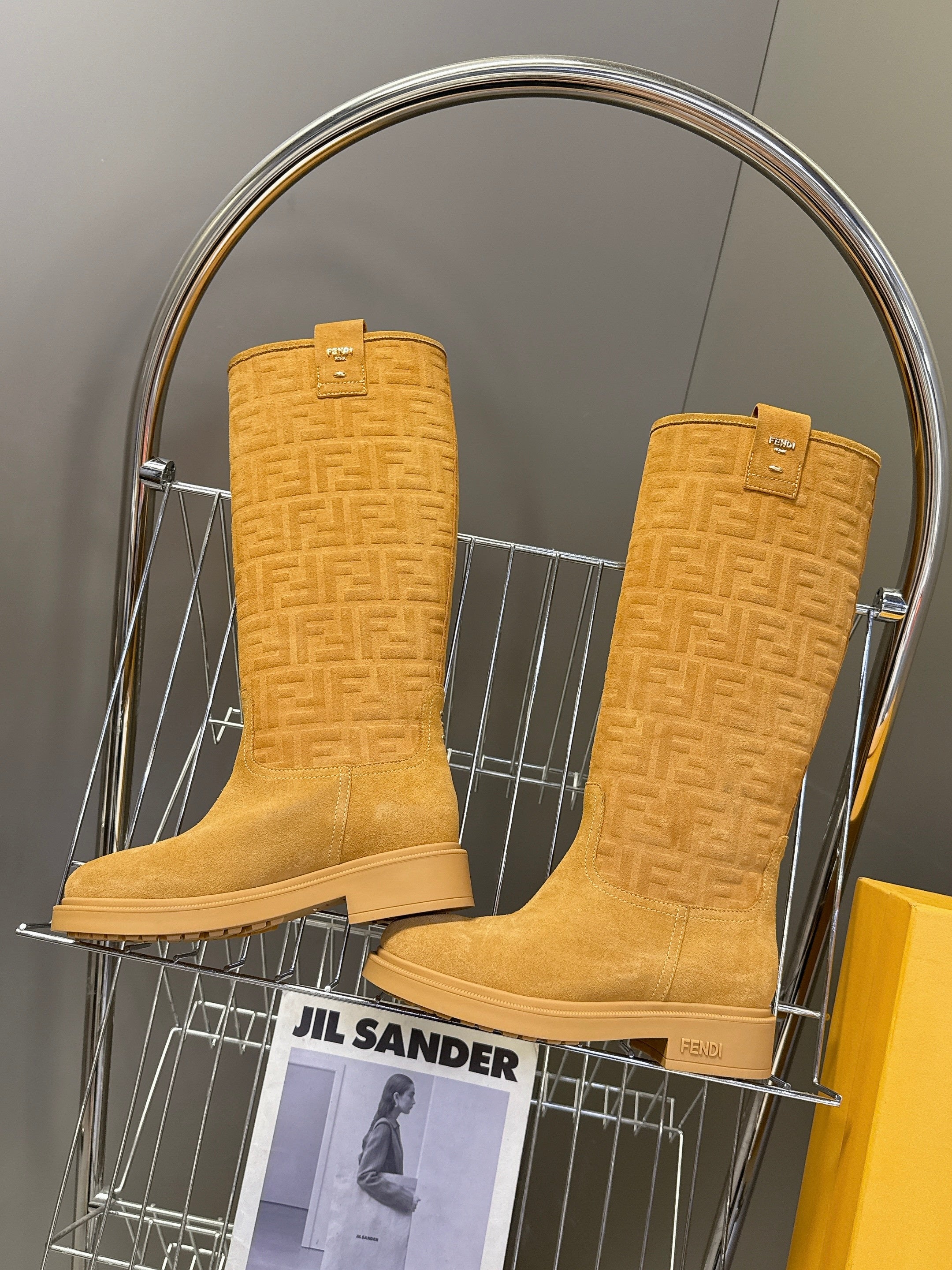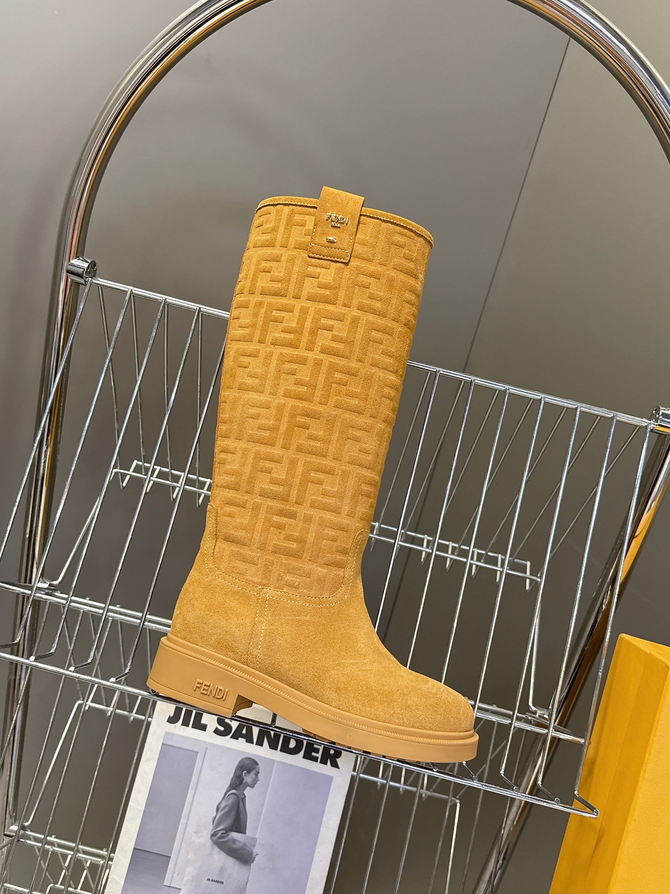 FENDI 25S HIGH-CUT BOOTS IN GOLDEN BROWN SUEDE