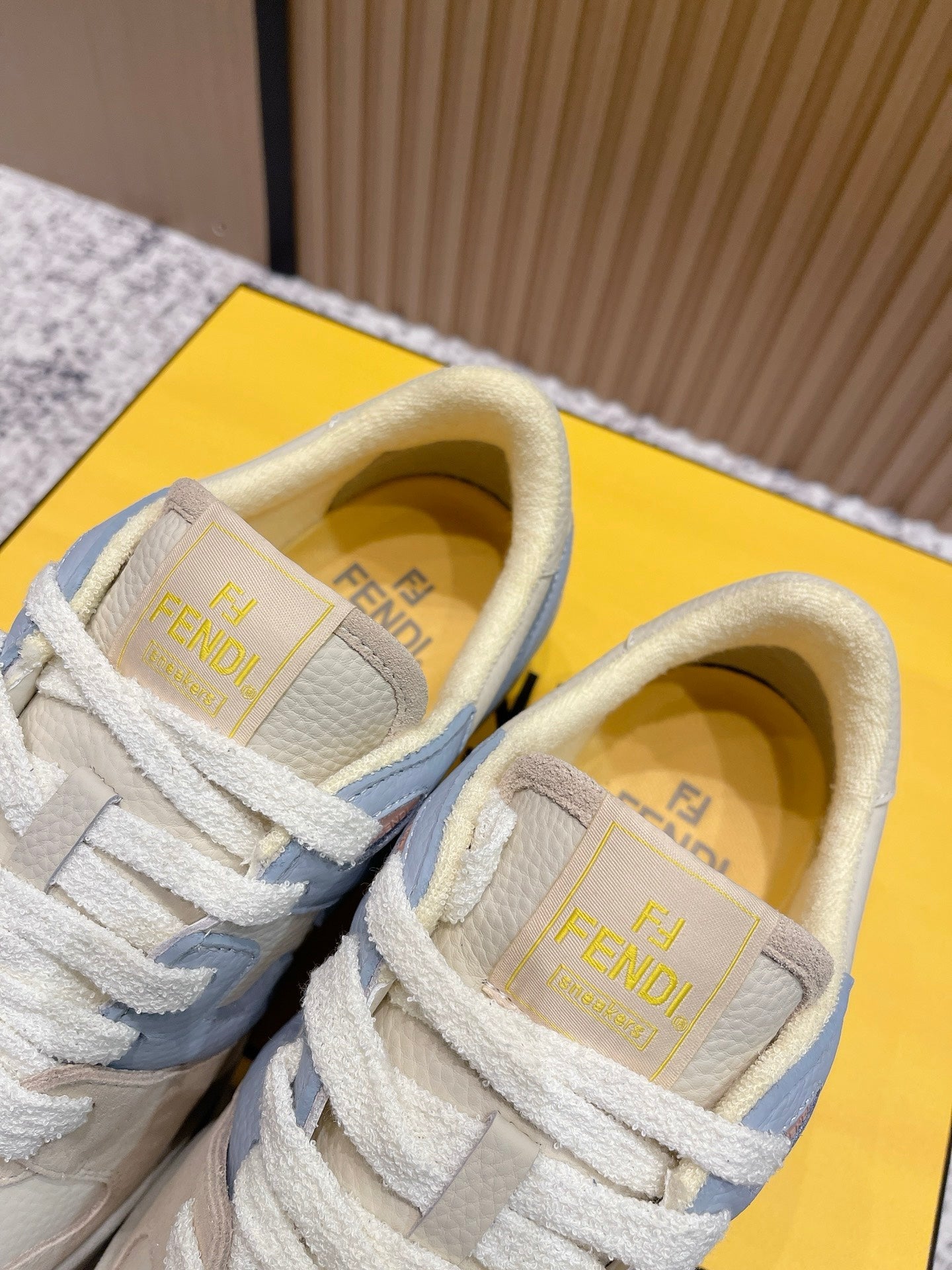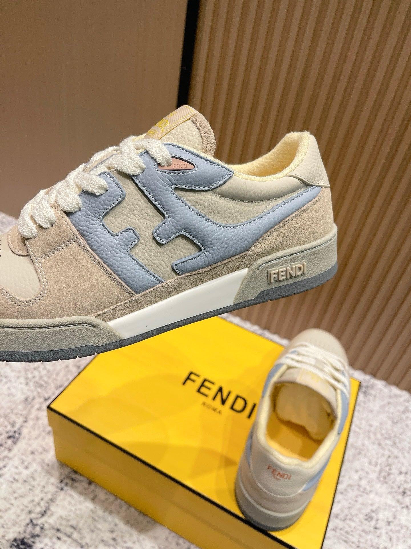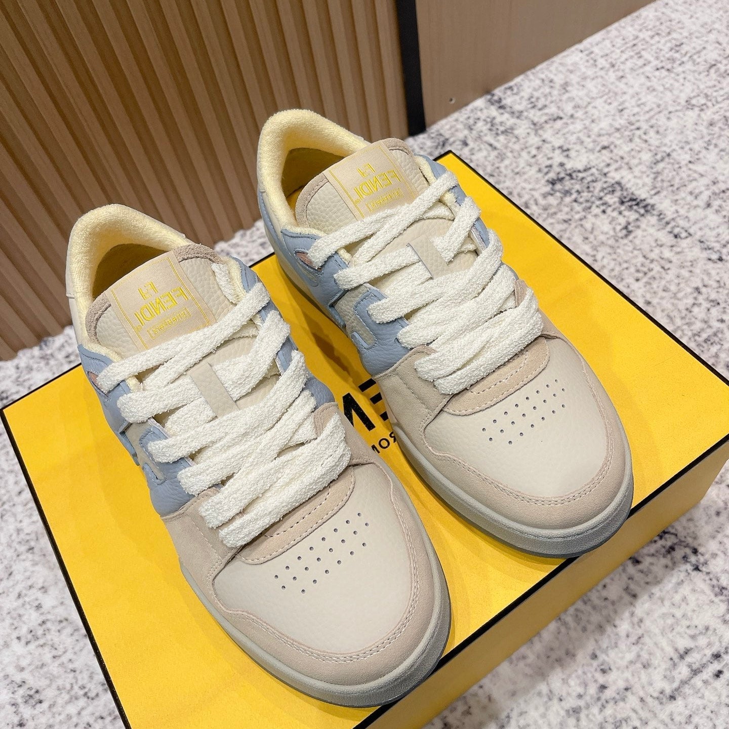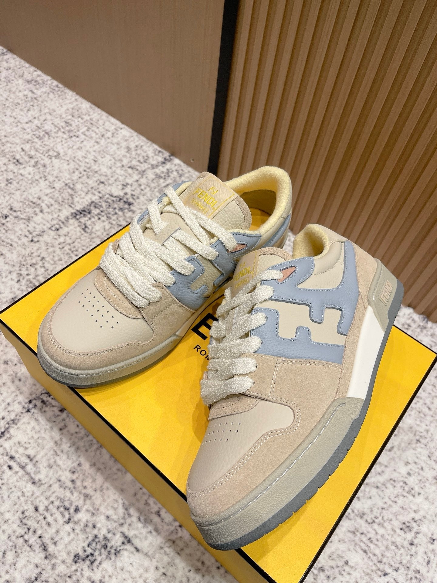 FENDI 25S MATCH SNEAKERS IN BEIGE MIX BLUE CALFSKIN AND SUEDE STYLE 10
