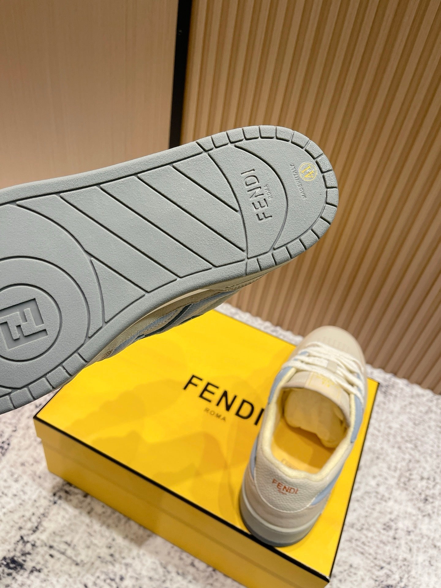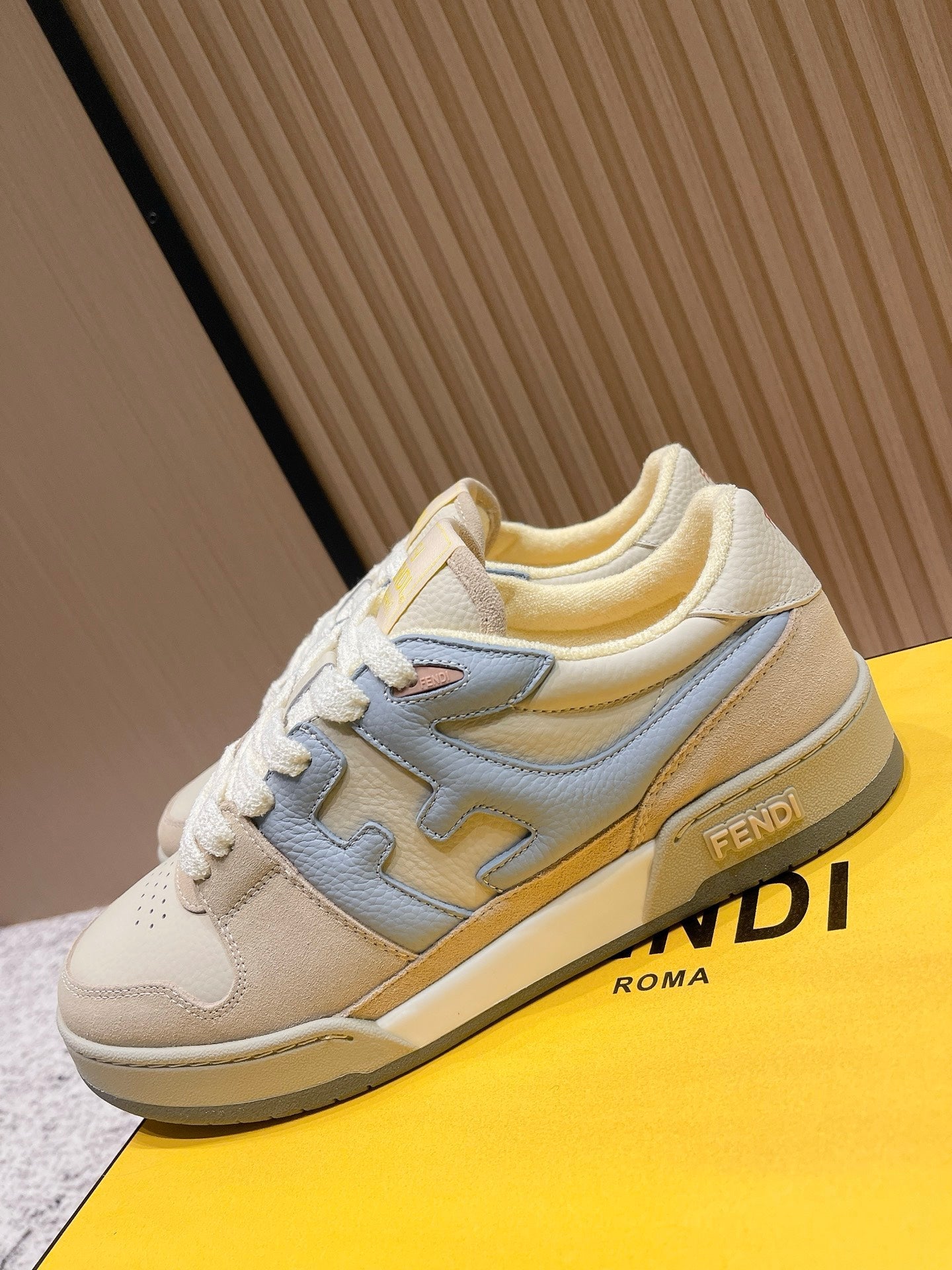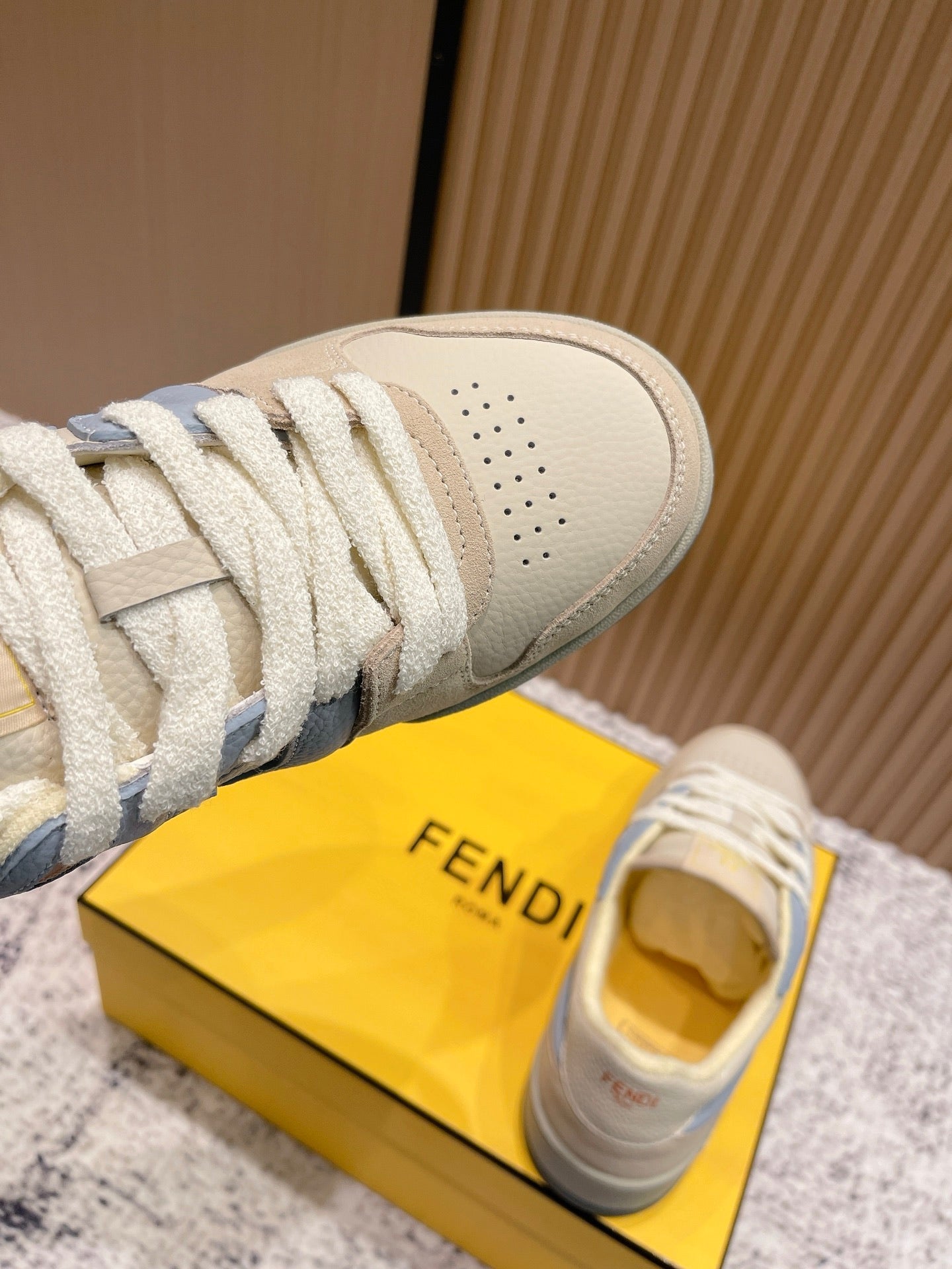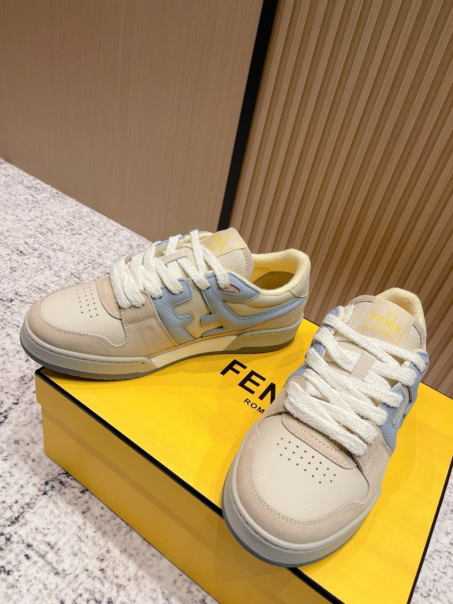 FENDI 25S MATCH SNEAKERS IN BEIGE MIX BLUE CALFSKIN AND SUEDE STYLE 10