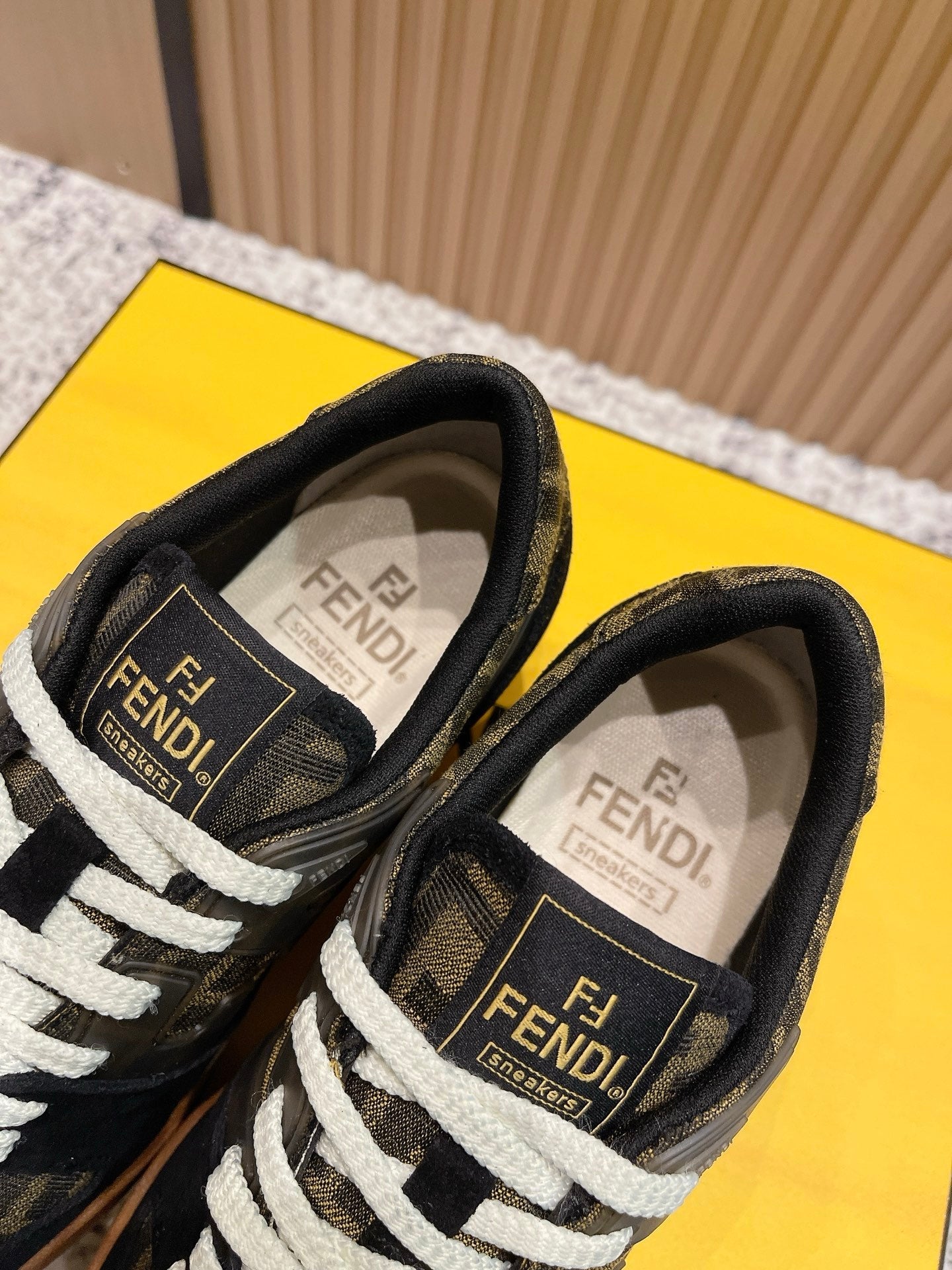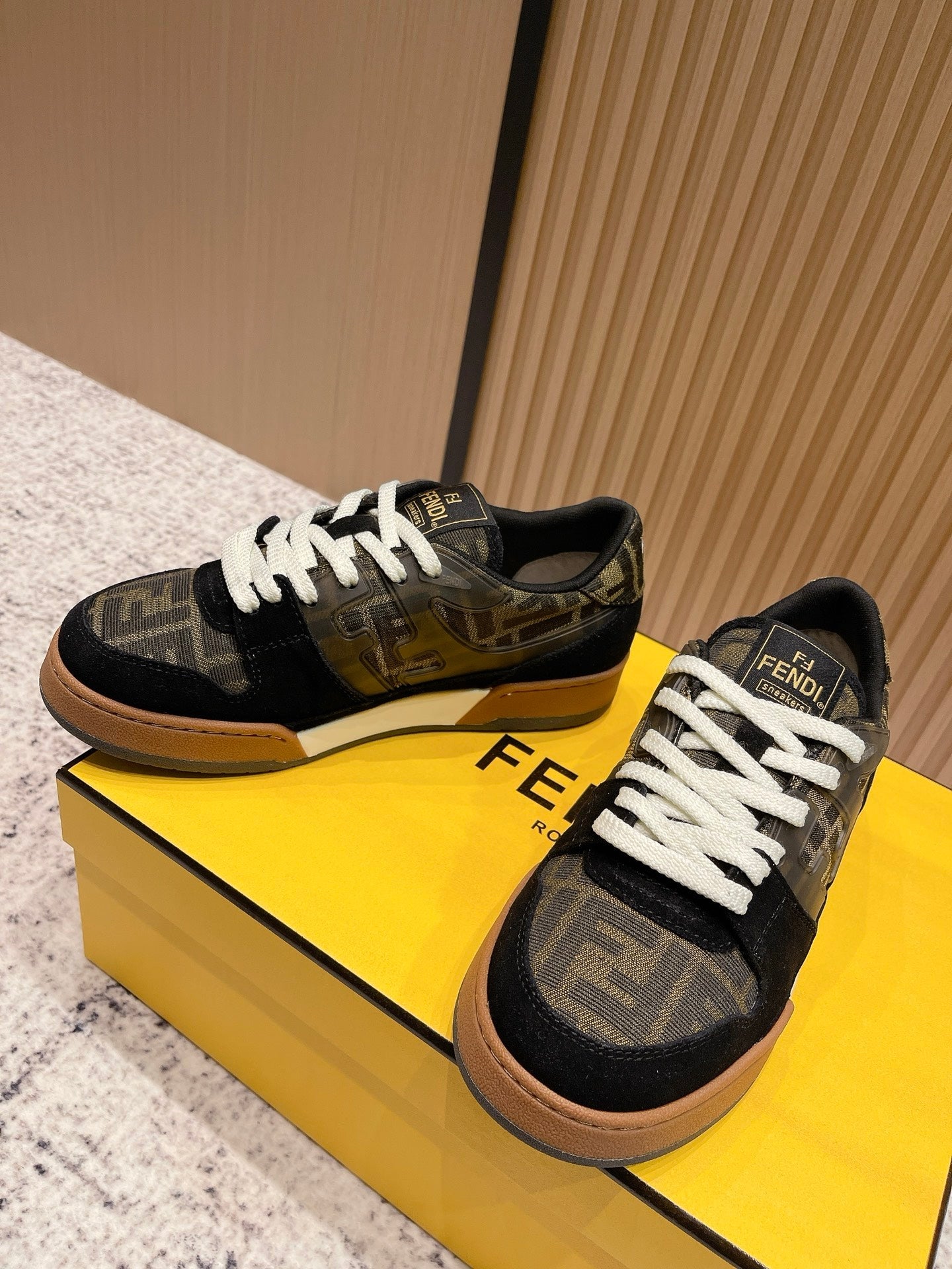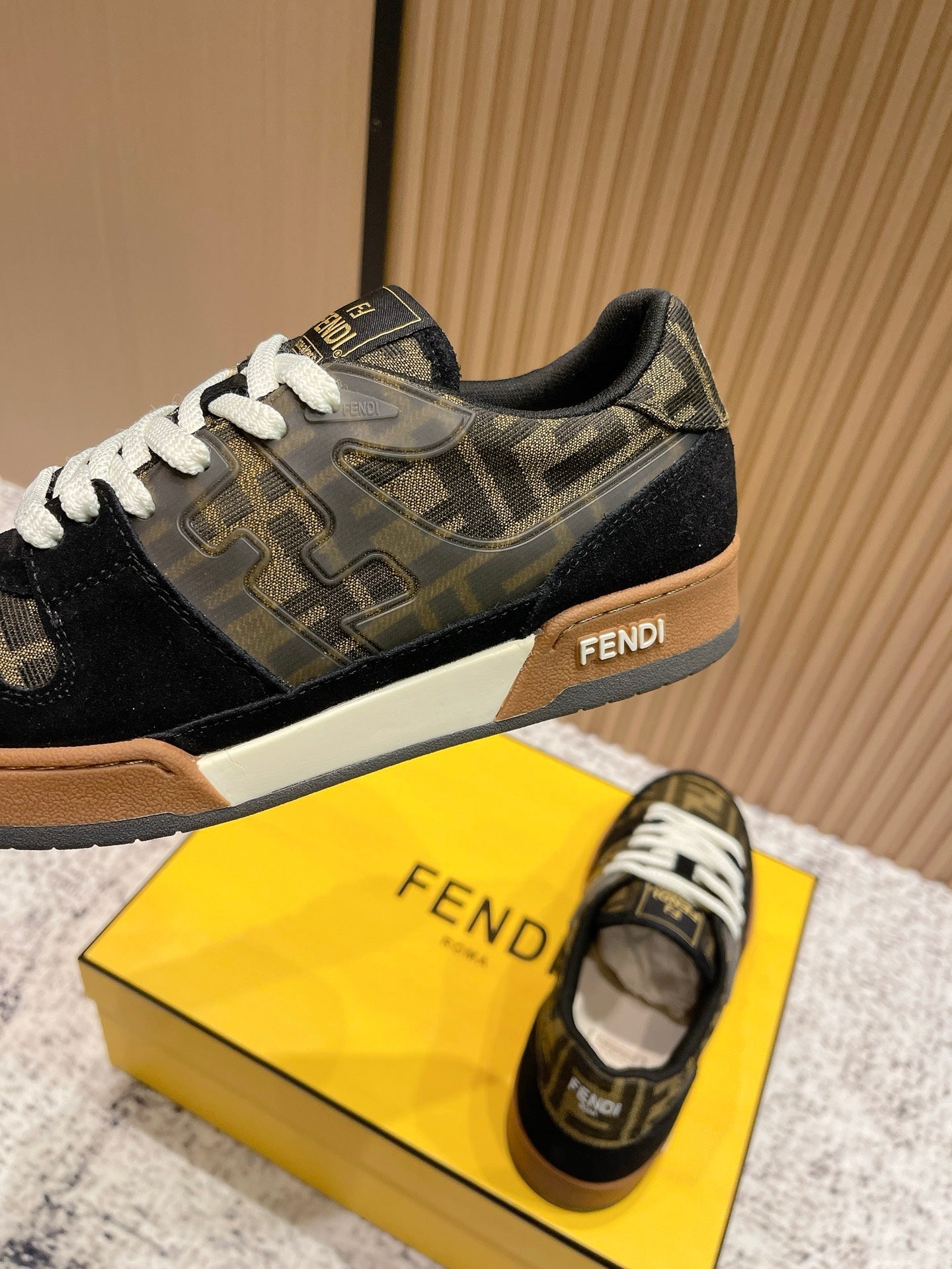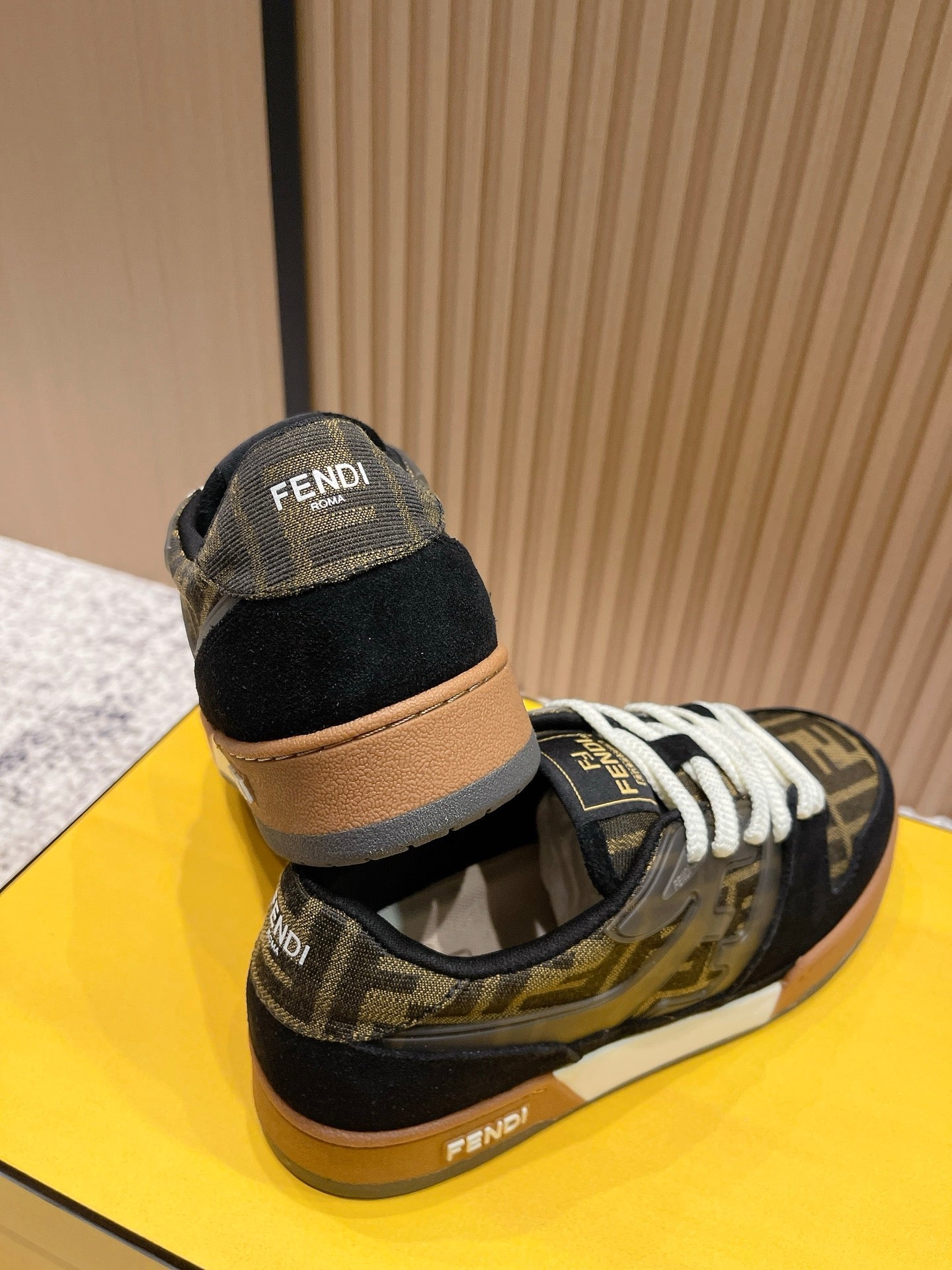FENDI 25S MATCH SNEAKERS IN BLACK SUEDE MIX BROWN CANVAS STYLE 5