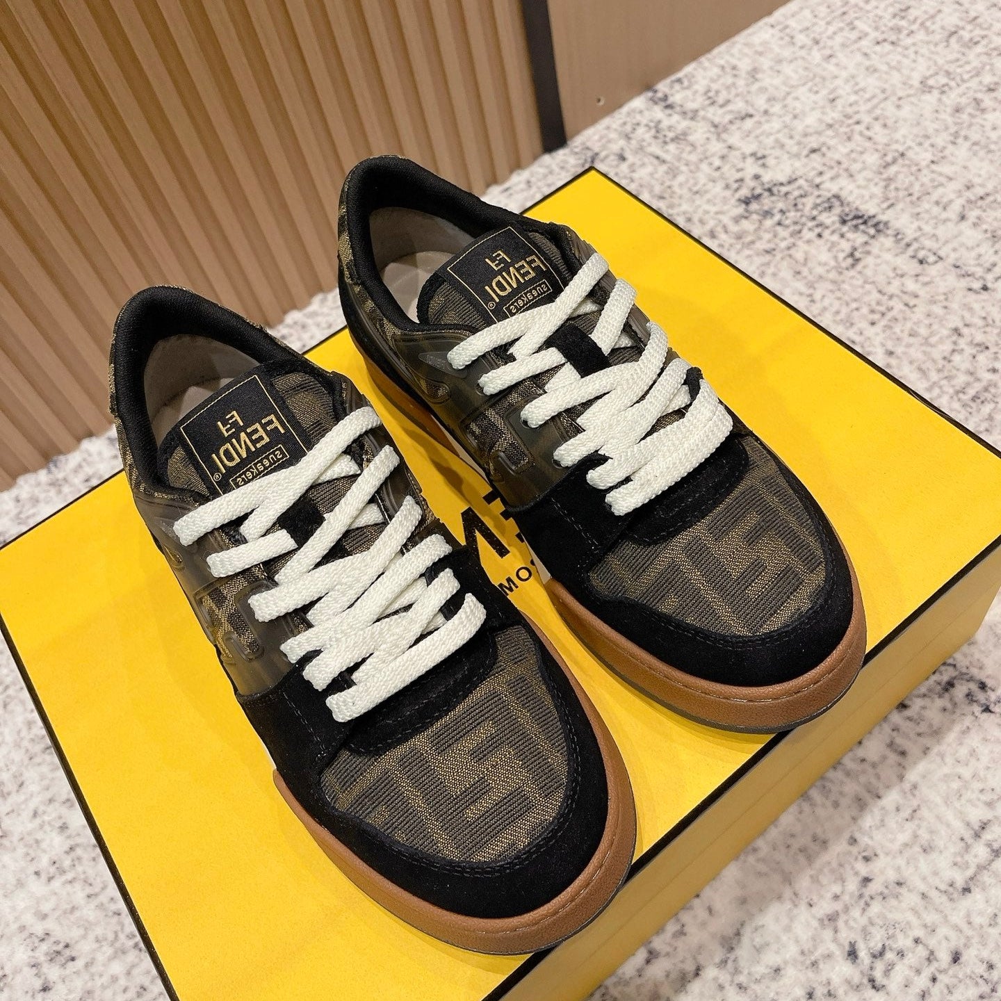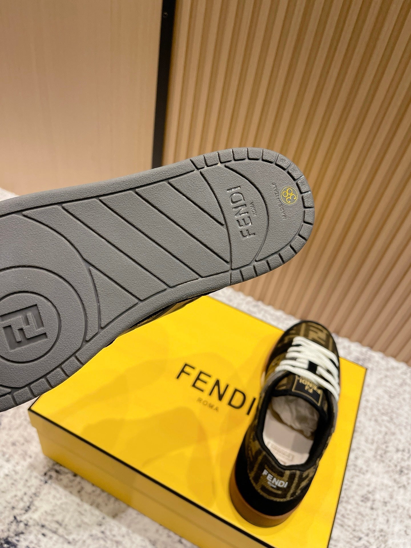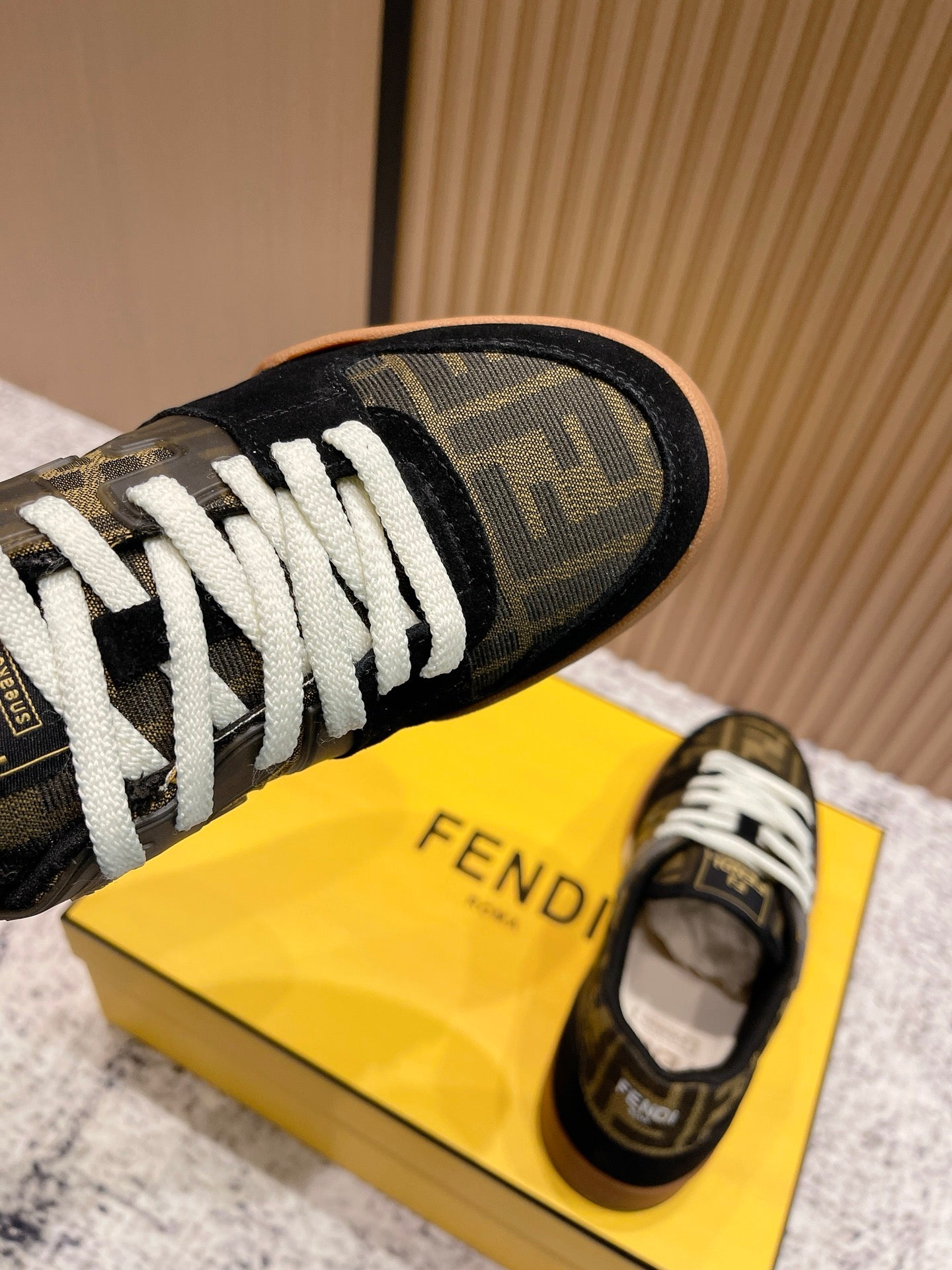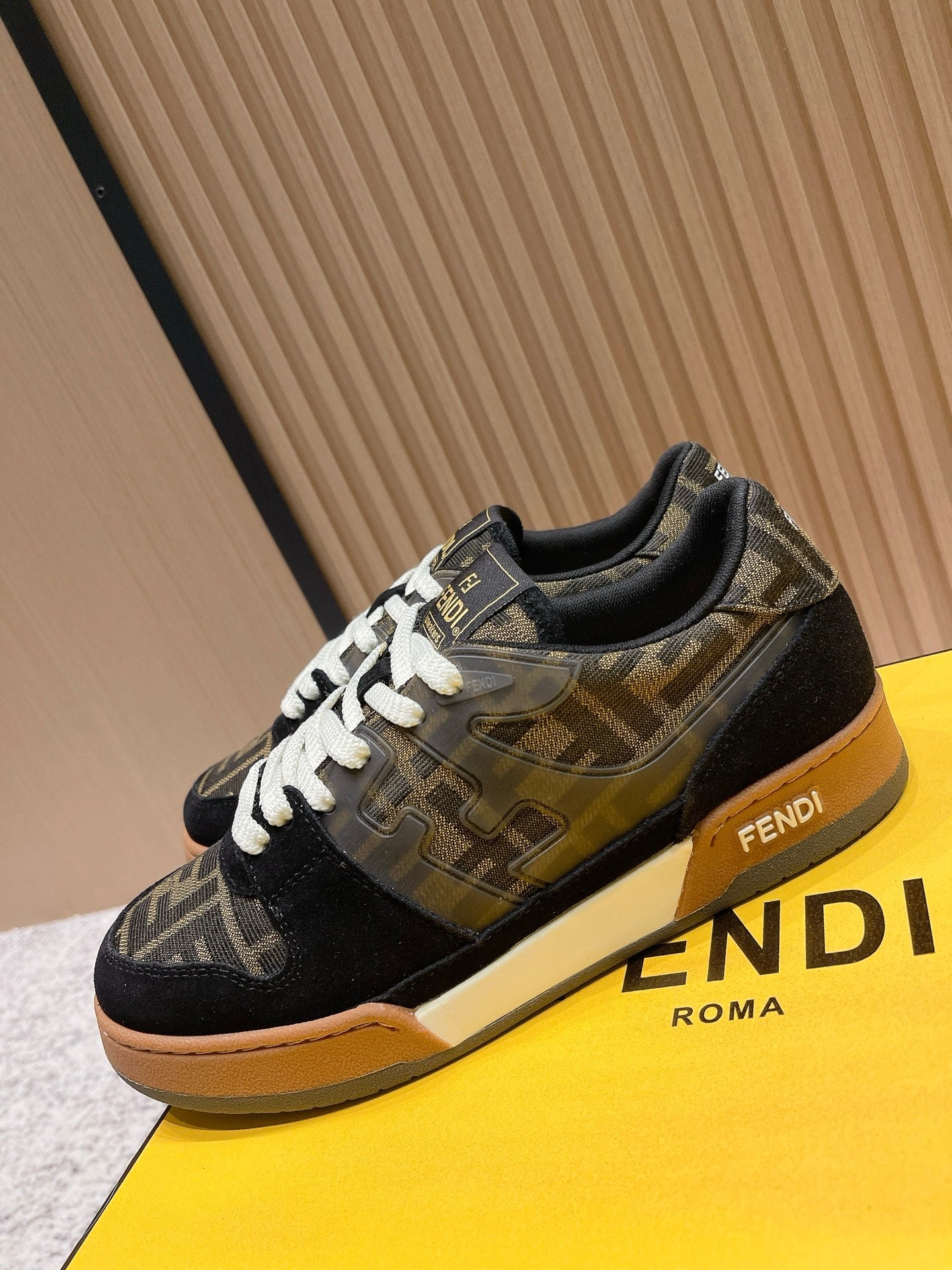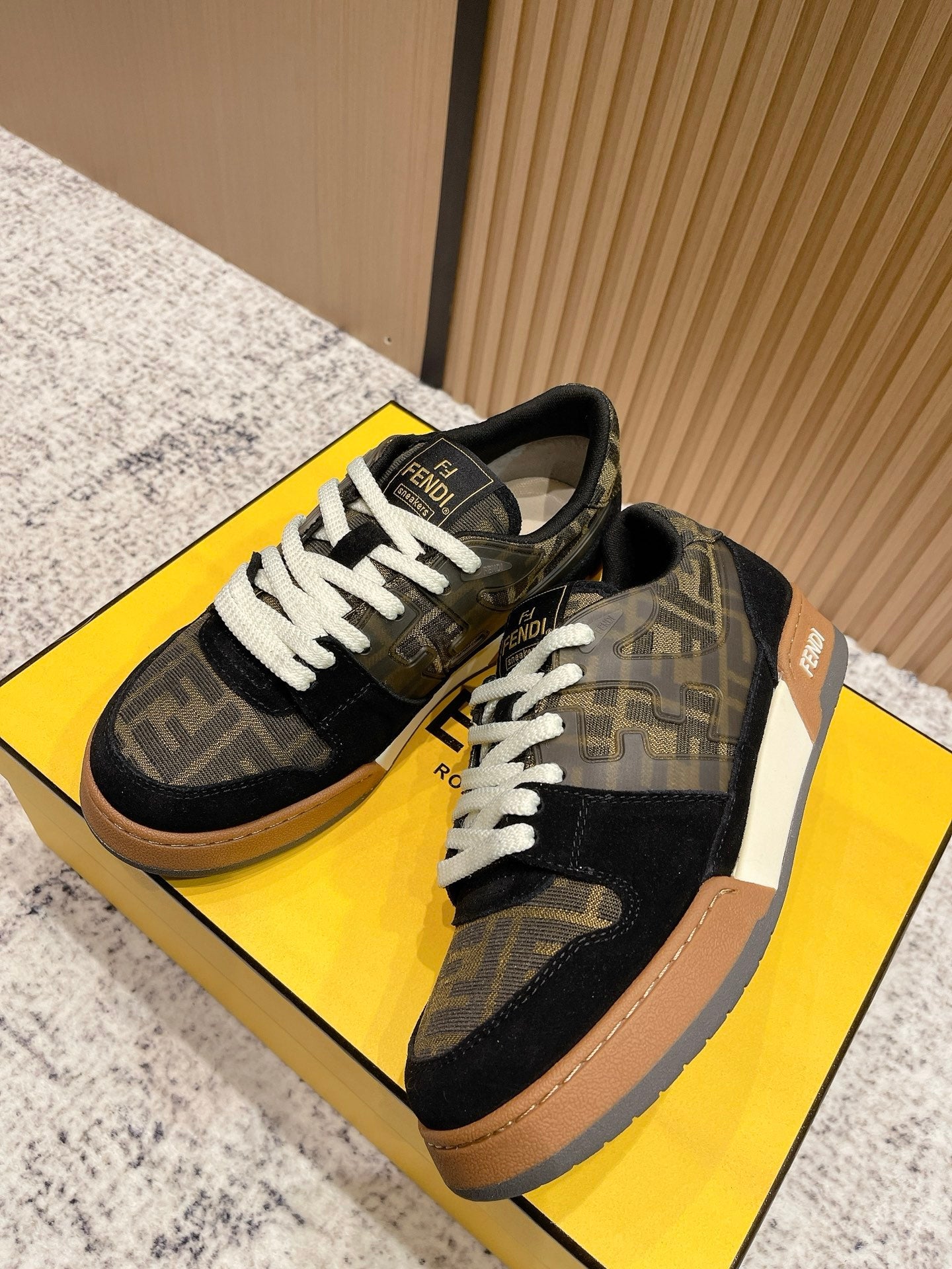 FENDI 25S MATCH SNEAKERS IN BLACK SUEDE MIX BROWN CANVAS STYLE 5