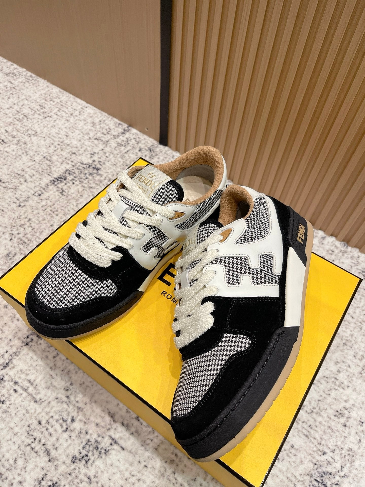 FENDI 25S MATCH SNEAKERS IN BLACK SUEDE MIX WHITE CALFSKIN STYLE 4