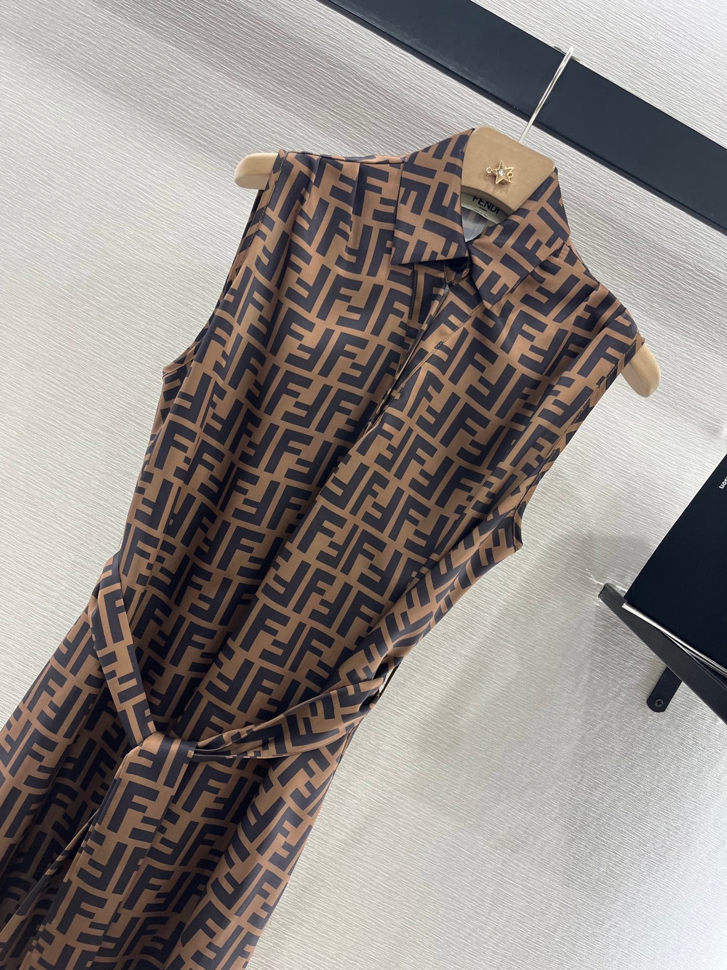 FENDI SLEEVELESS DRESS WITH BELT IN BROWN AND BLACK