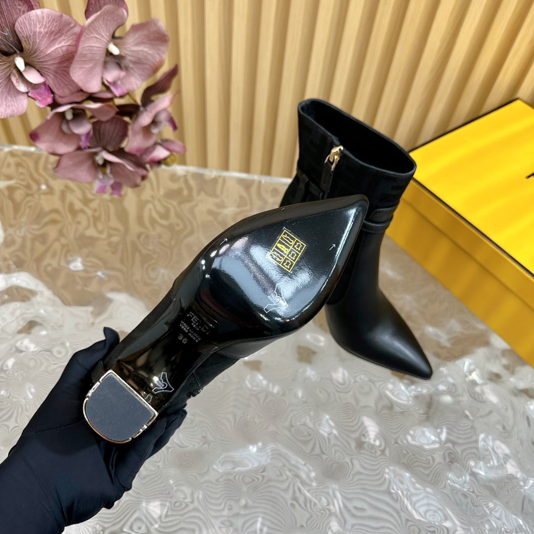 FF BOOTIES BOOTS IN BLACK CALFSKIN AND MONOGRAM FF FABRIC