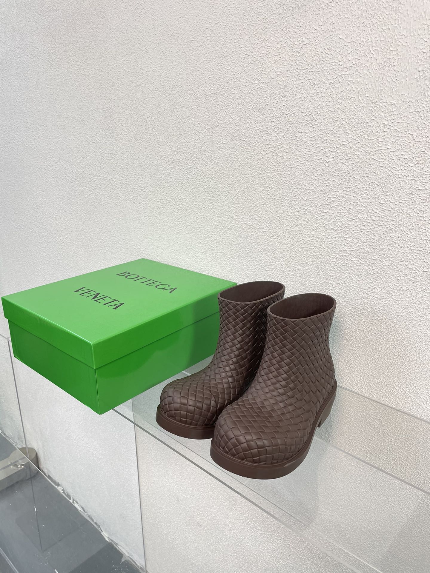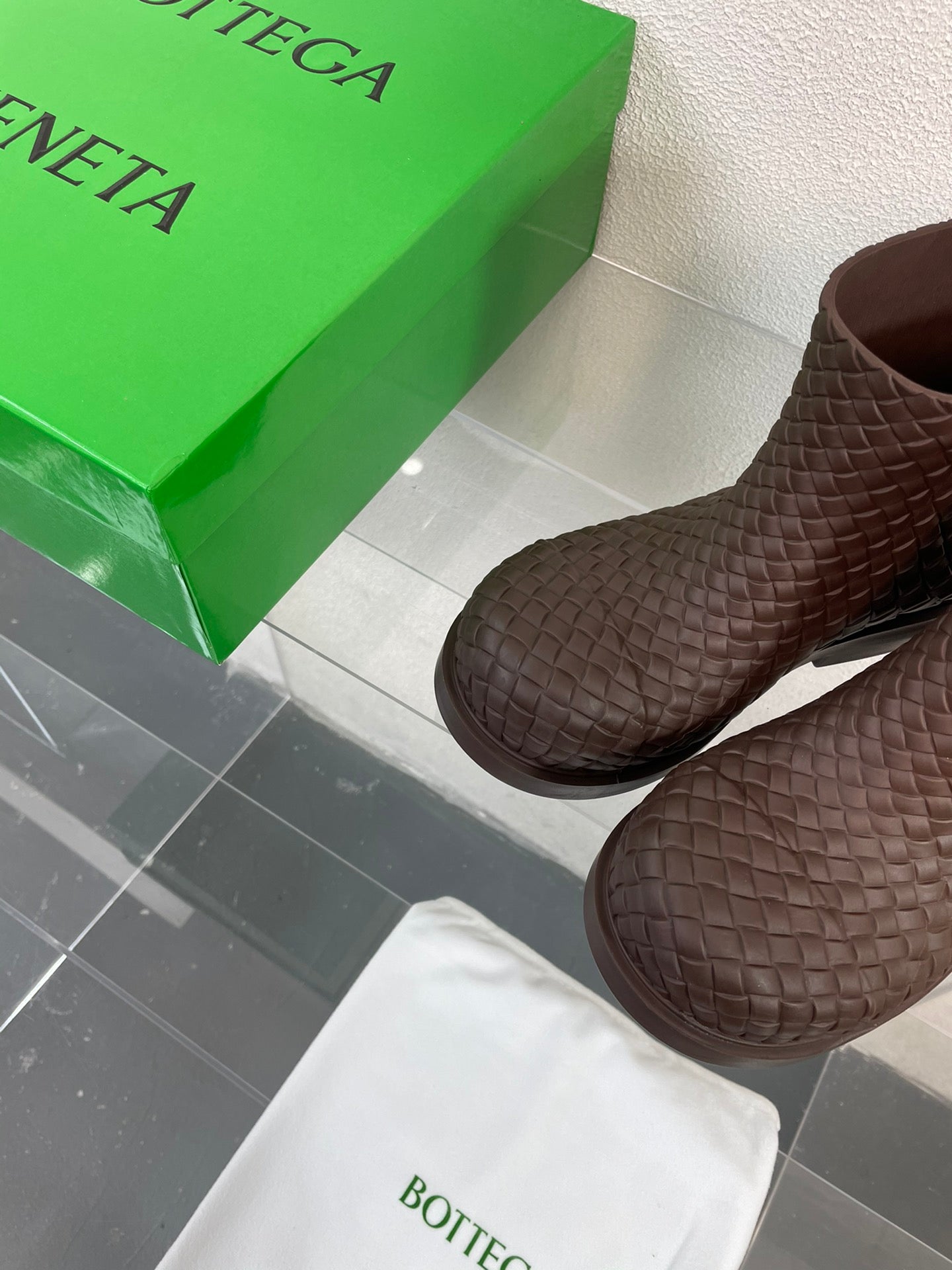 FIREMAN BOOTS IN CHOCOLATE BROWN RUBBER WITH ICONIC INTRECCIO MOTIF