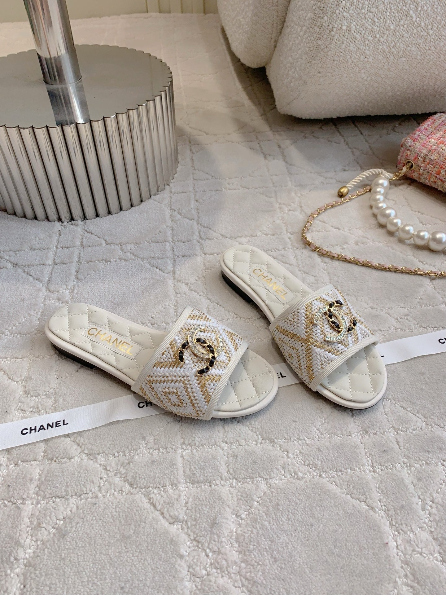 FLAT SANDALS LOGO STONE AND CHAIN IN WHITE LAMBSKIN WITH RAFFIA