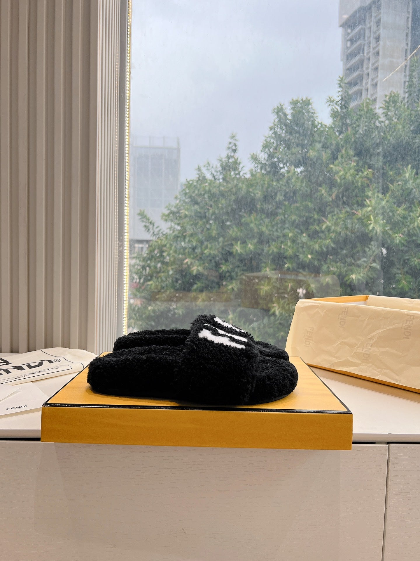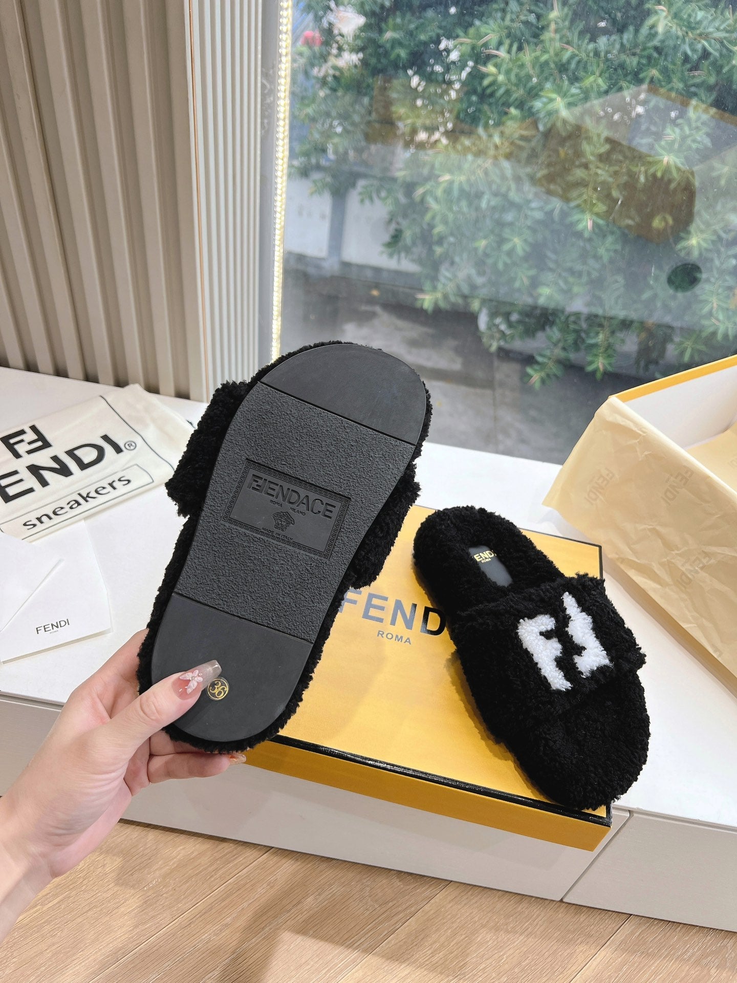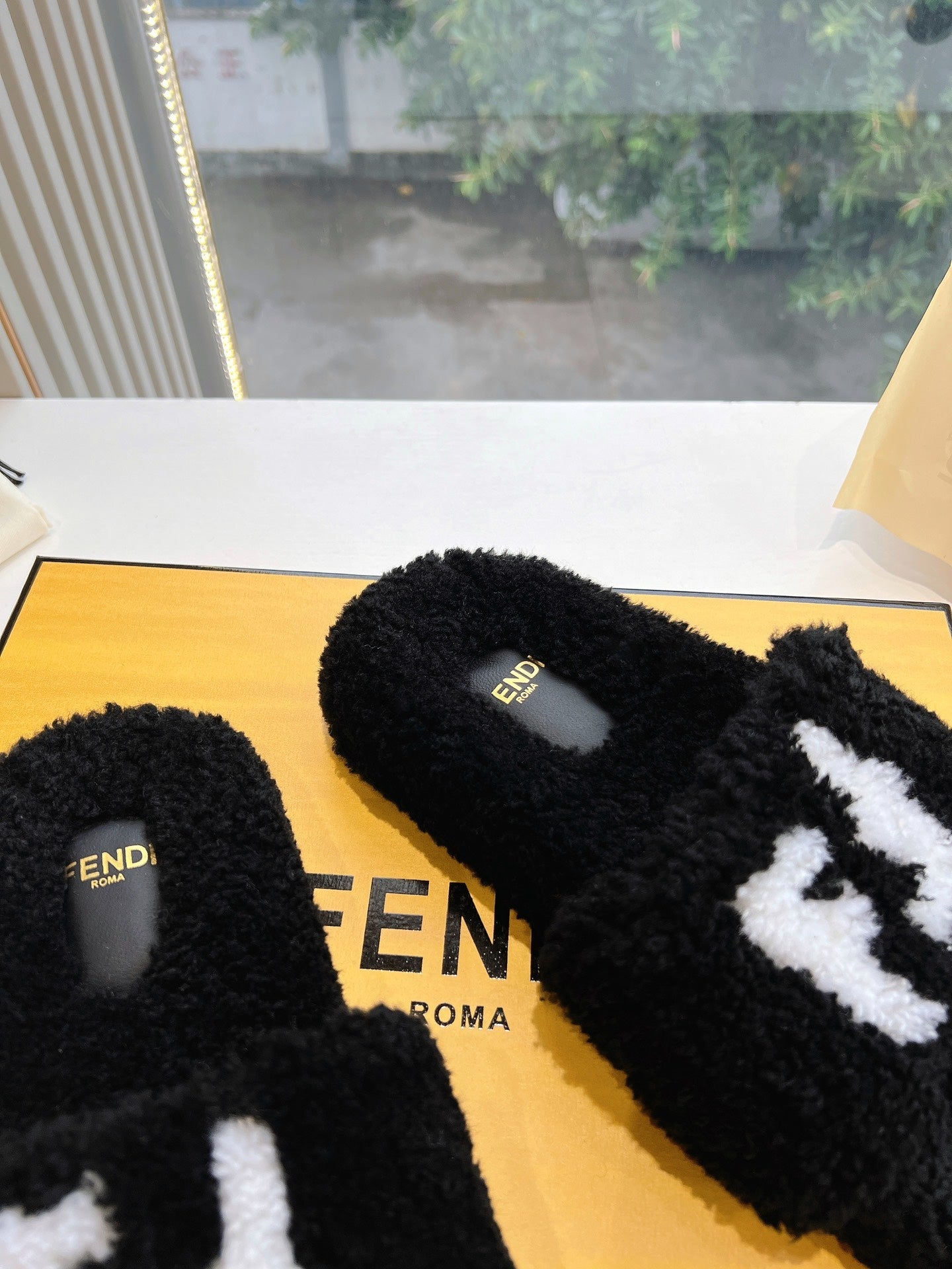 FLAT SLIDE IN BLACK FLEECE WITH WHITE LOGO