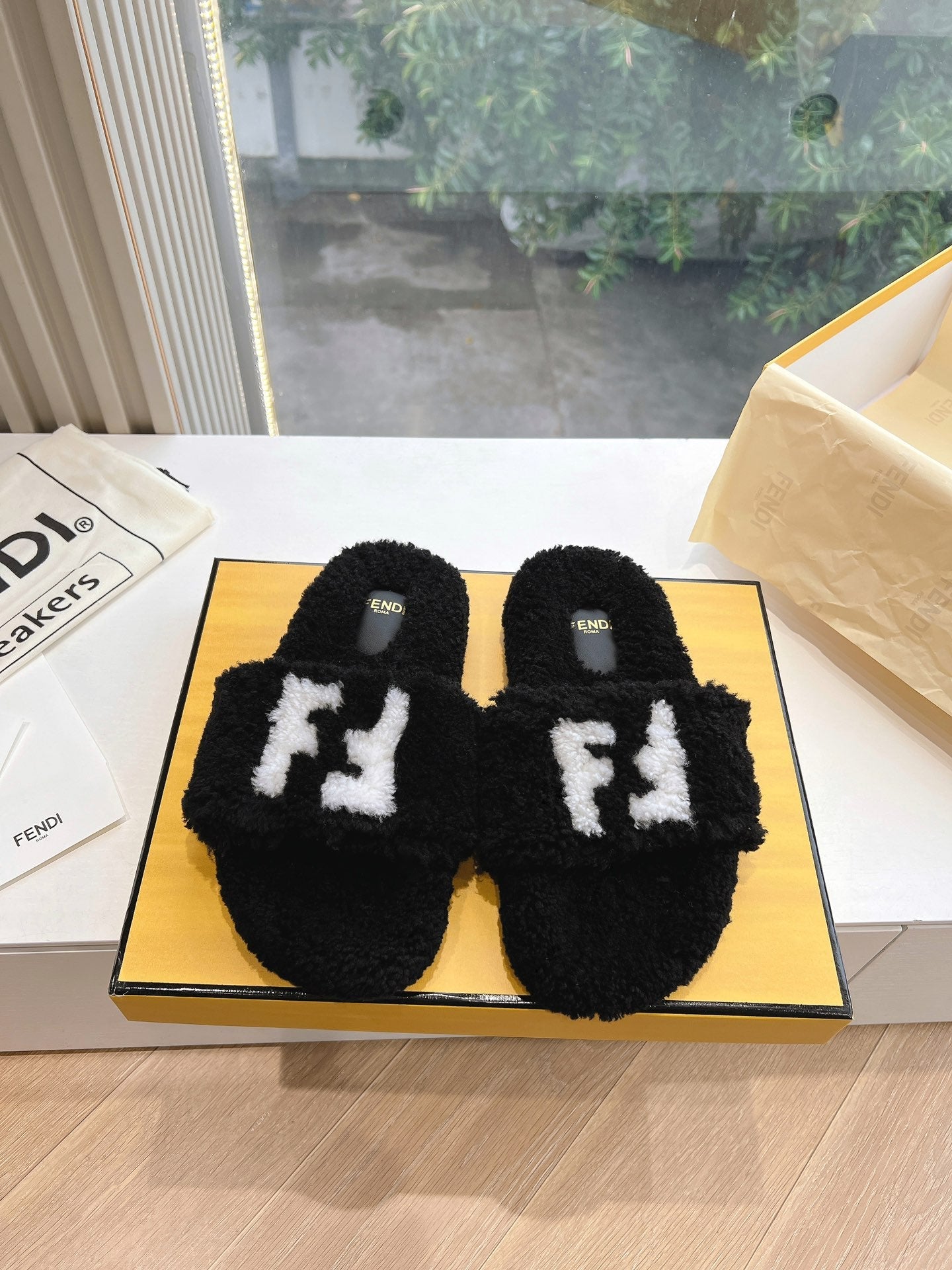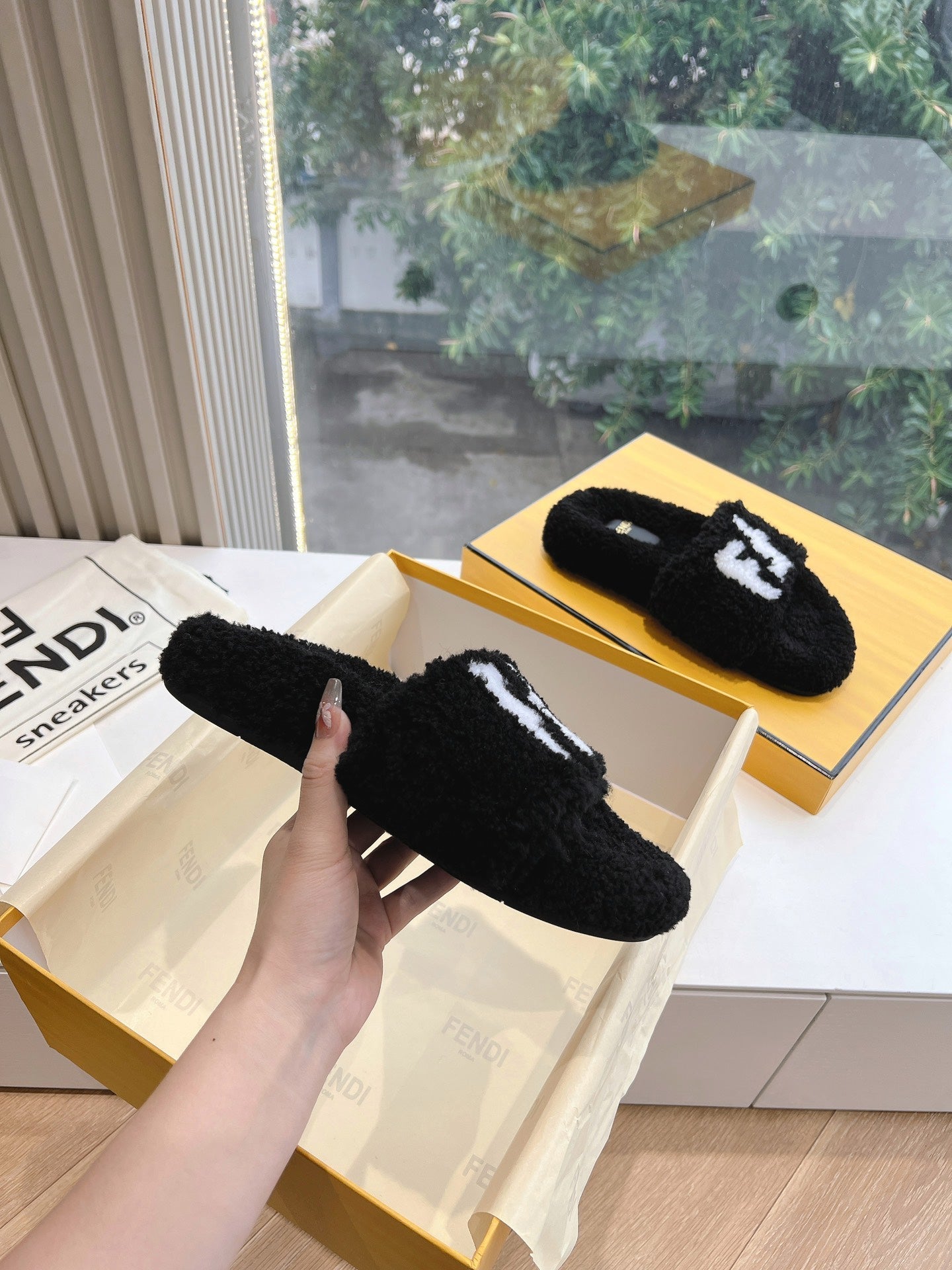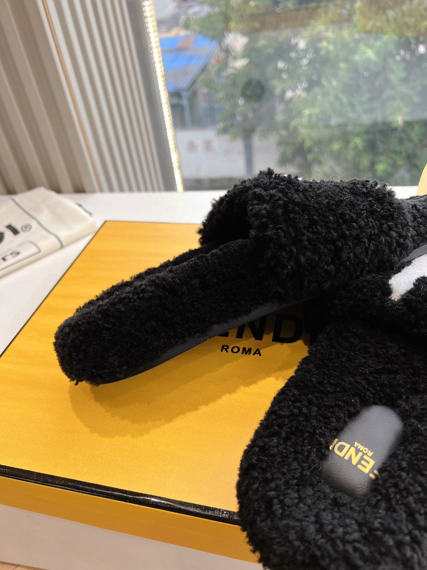 FLAT SLIDE IN BLACK FLEECE WITH WHITE LOGO