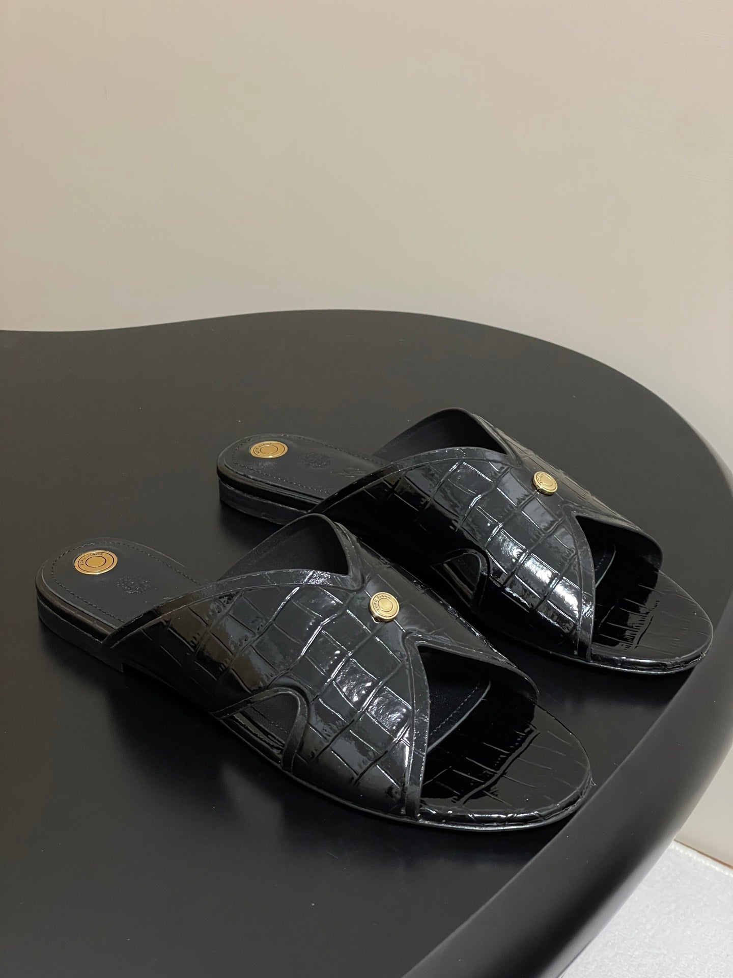FLAT SLIPPERS IN BLACK CALFSKIN SNAKE EMBOSSING