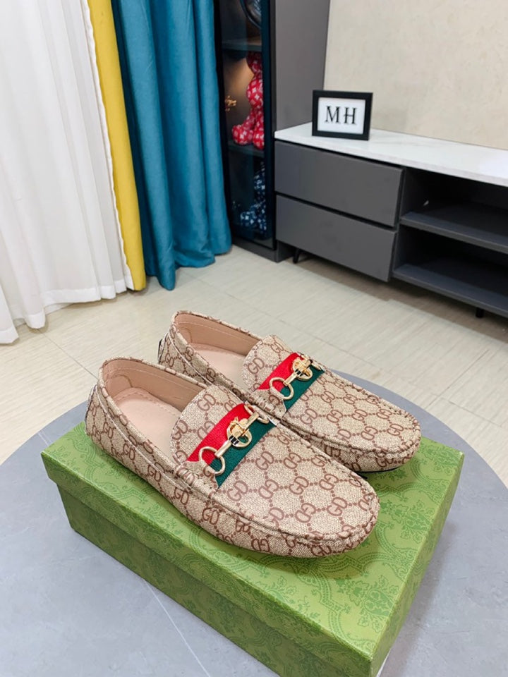 GG DRIVER WITH WEB BROWN LEATHER