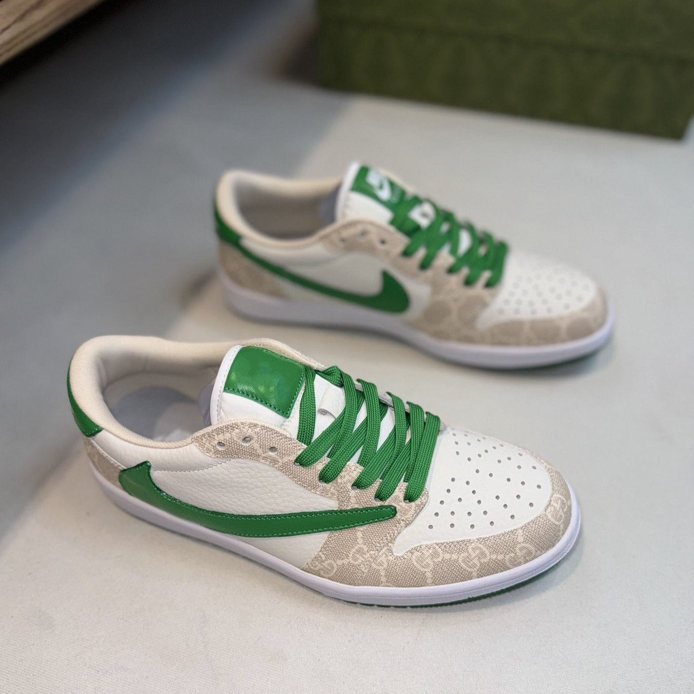 GG LOW TRAVIS GREEN WHITE LEATHER