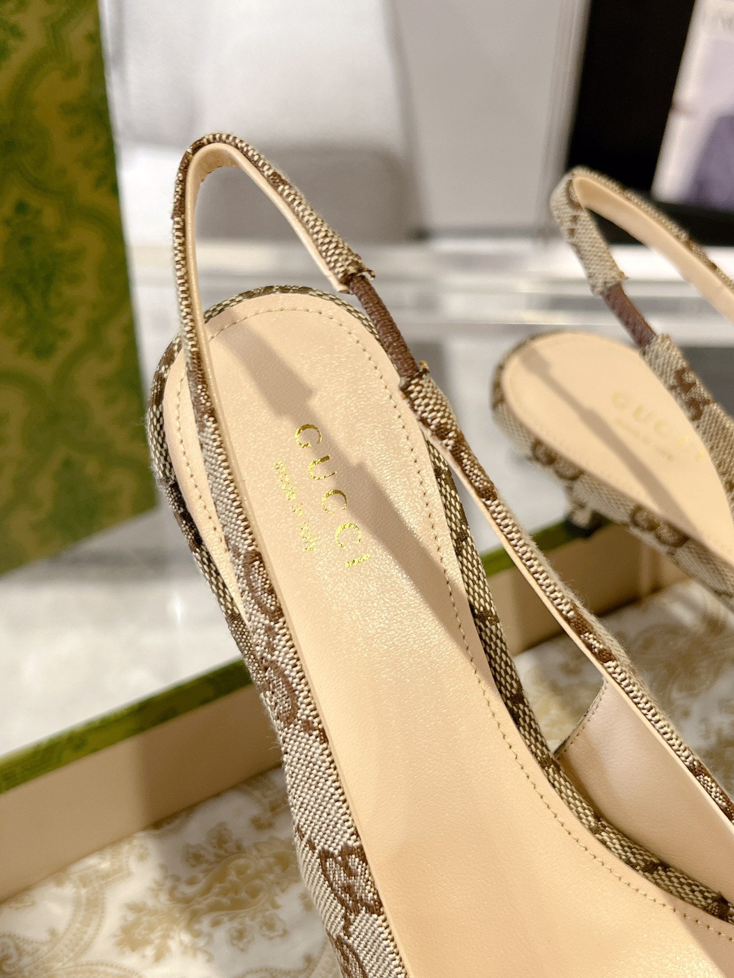 GG MID-HEELED SLINGBACK 4.5 CM IN TAN BEIGE CANVAS