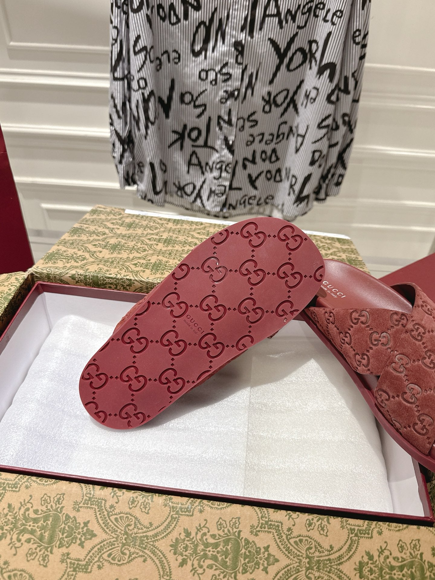 GG SLIDES IN RED SUEDE WITH EMBOSSED LOGO STYLE 9