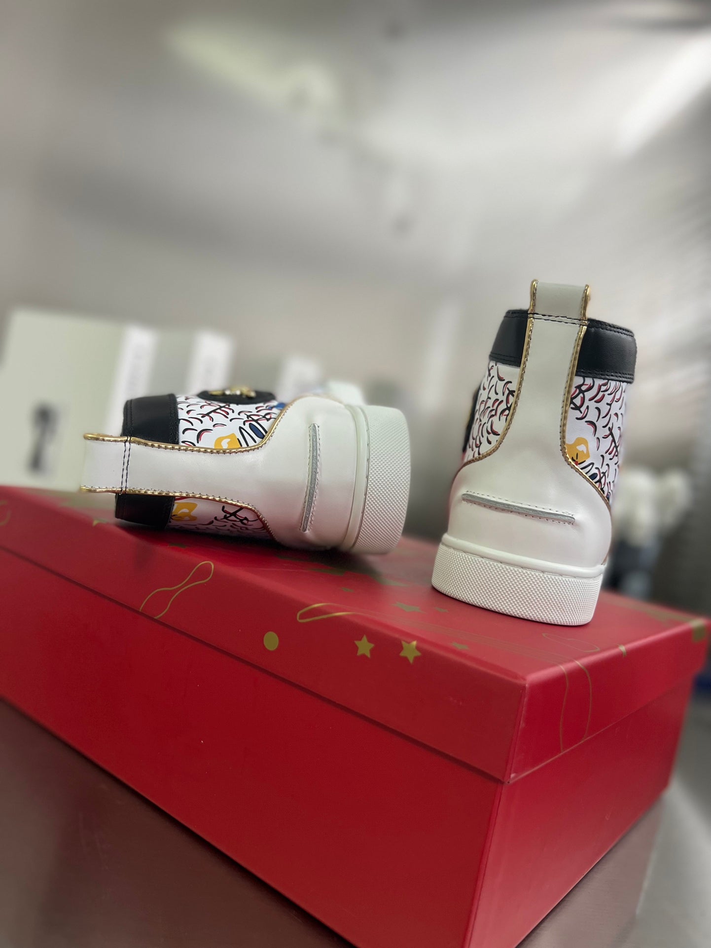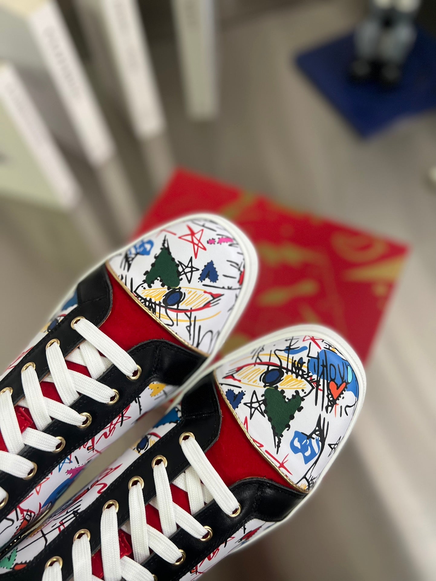 GRAFFITI HIGH-TOP FLAT SNEAKERS IN MULTICOLOR CALFSKIN