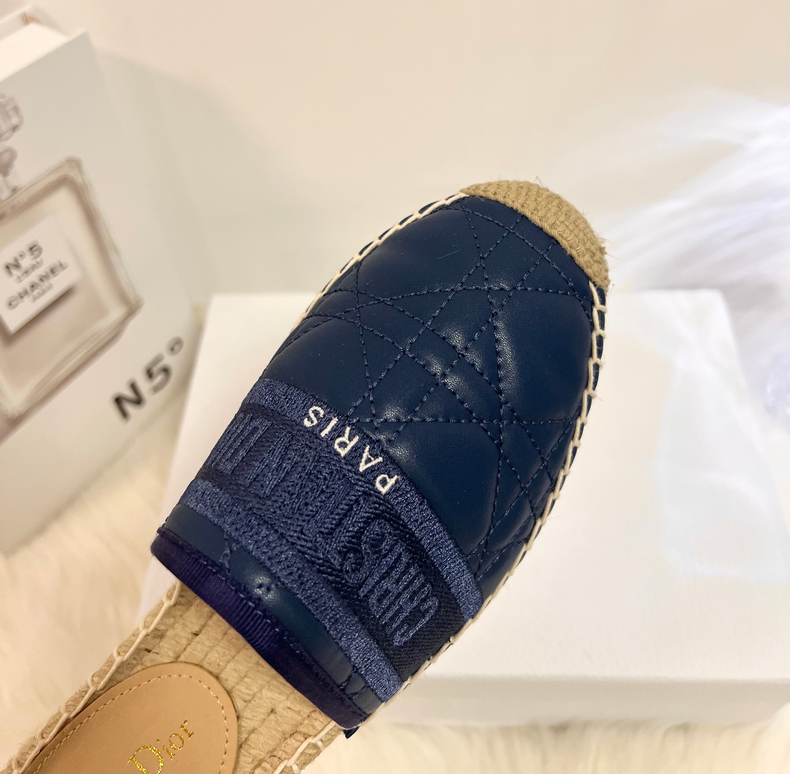 GRANVILLE ESPADRILLE MULE NAVY BLUE QUILTED CANNAGE CALFSKIN