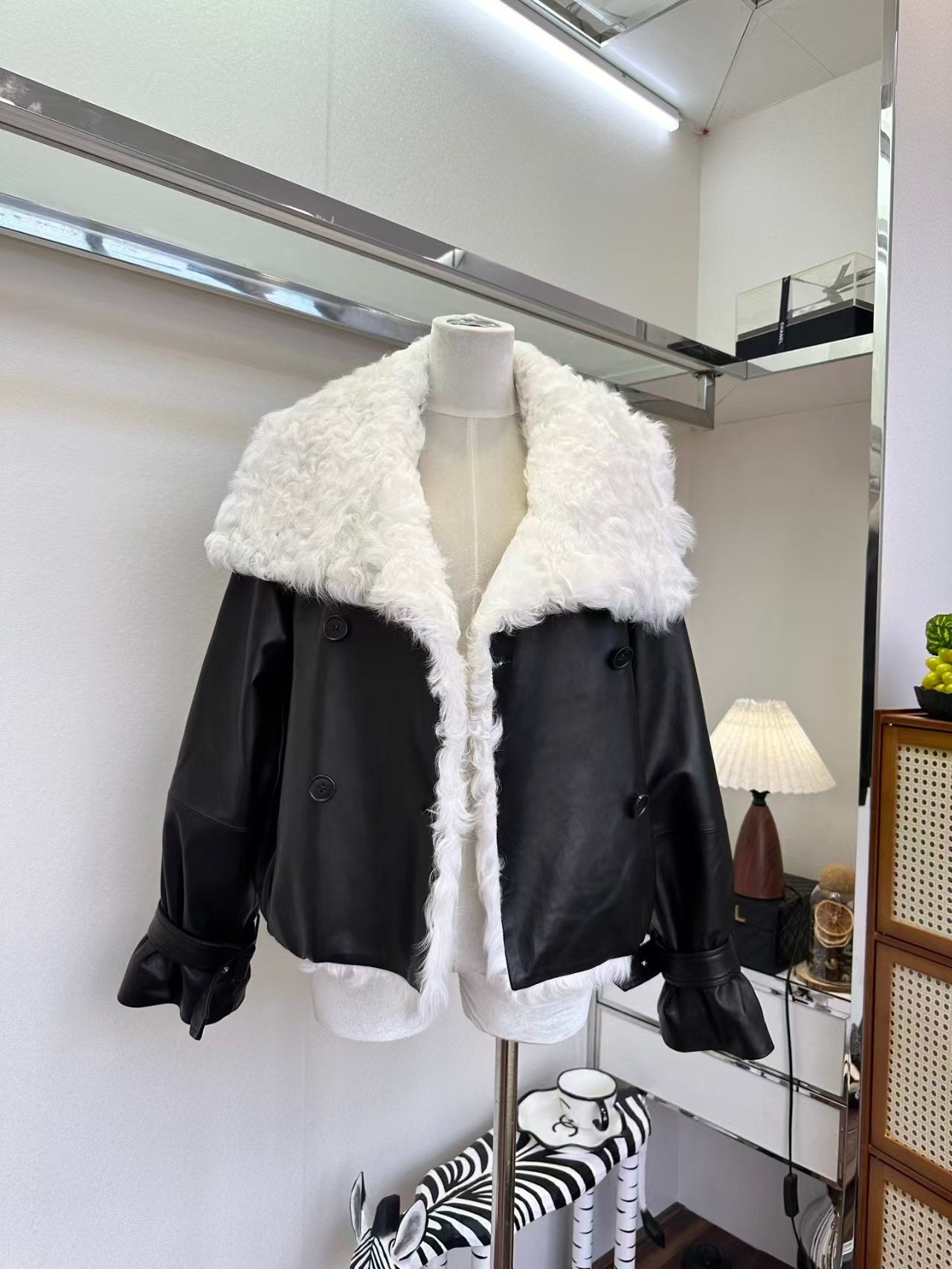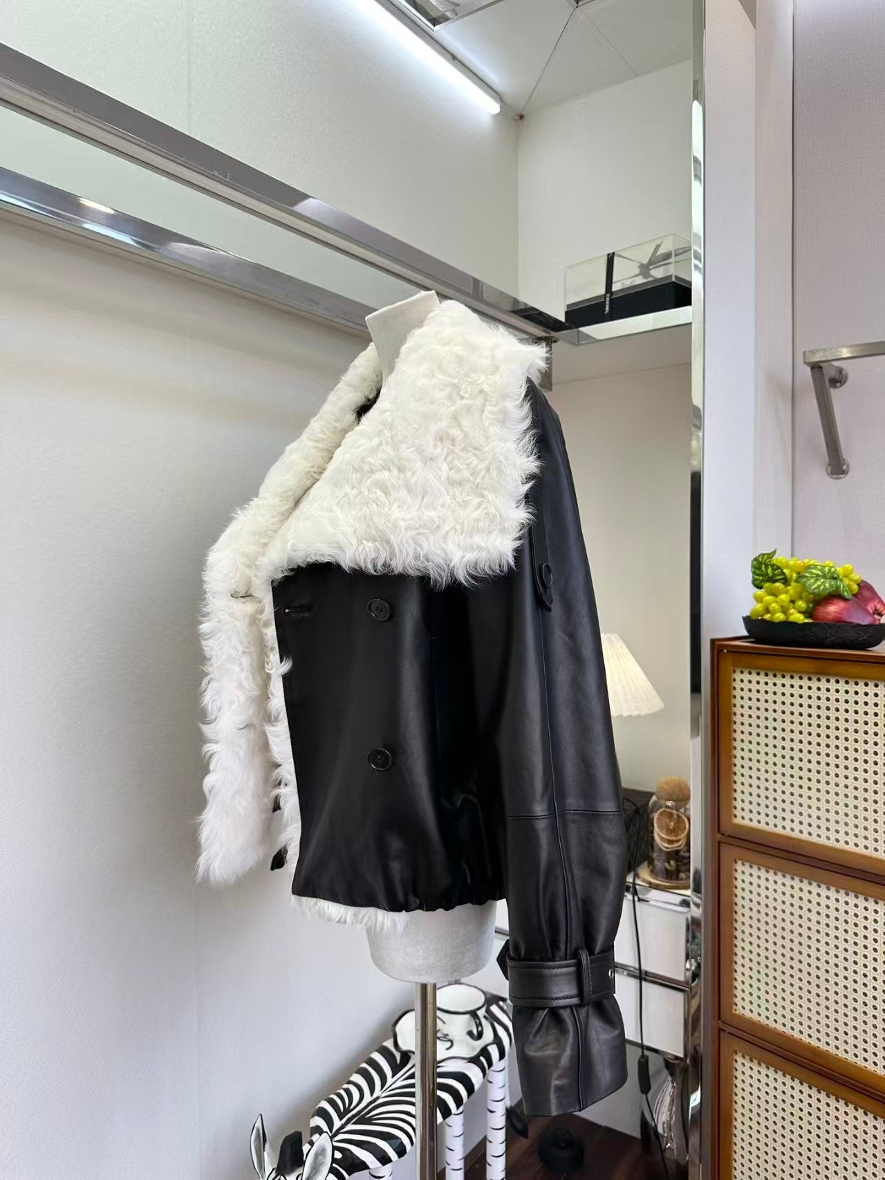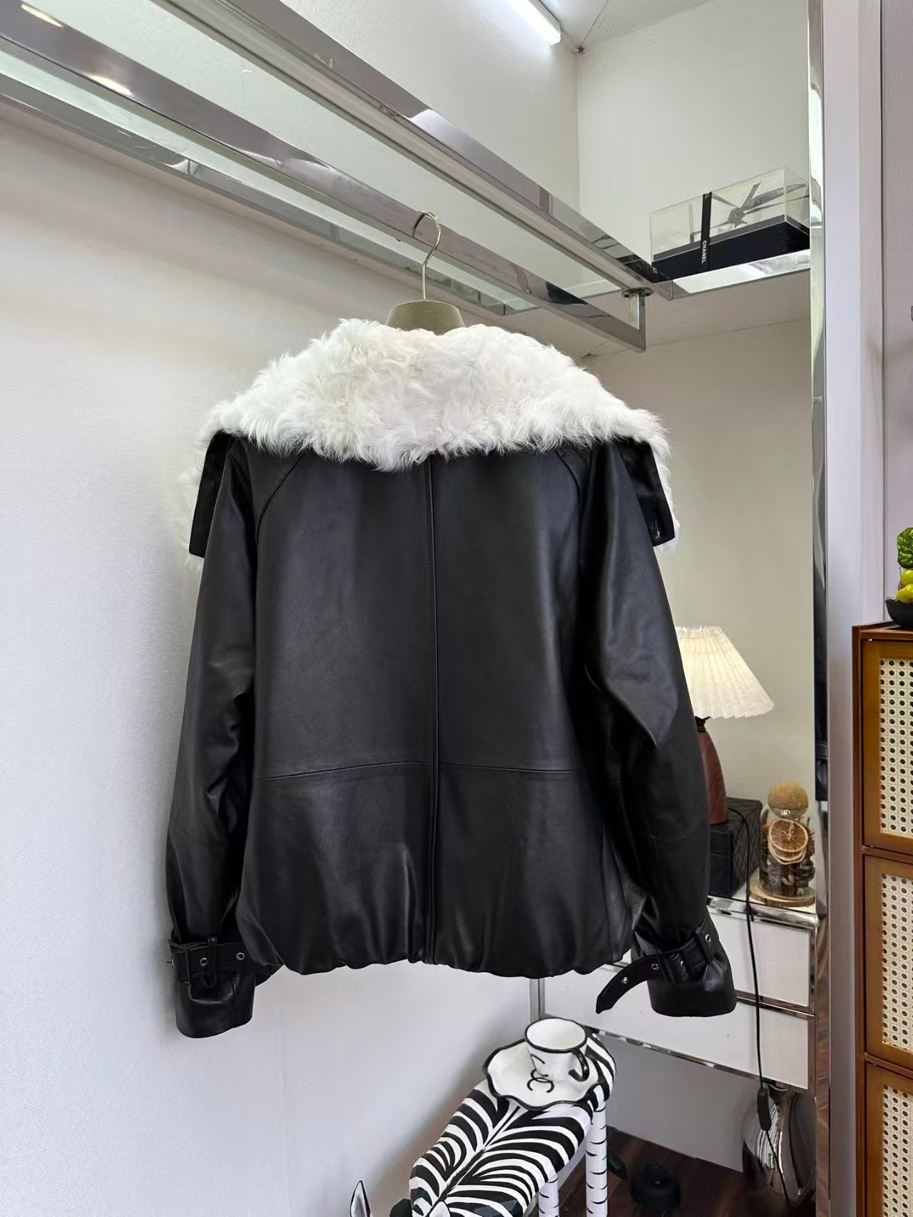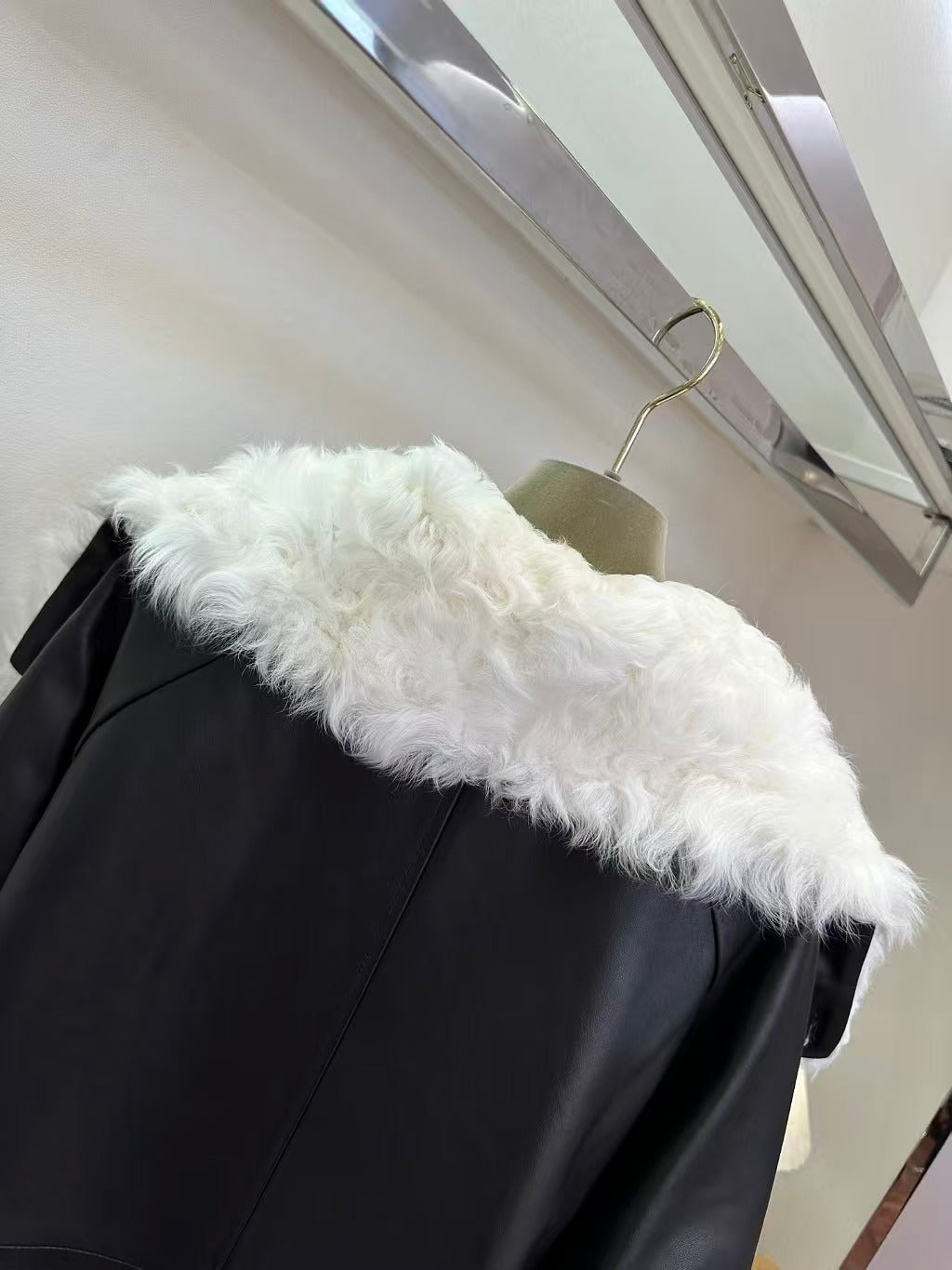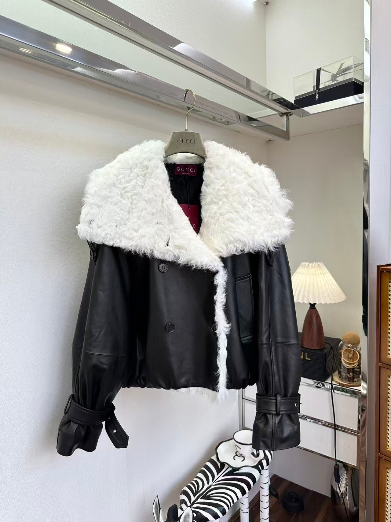 GUCCI LEATHER JACKET WITH WHITE SHEARLING