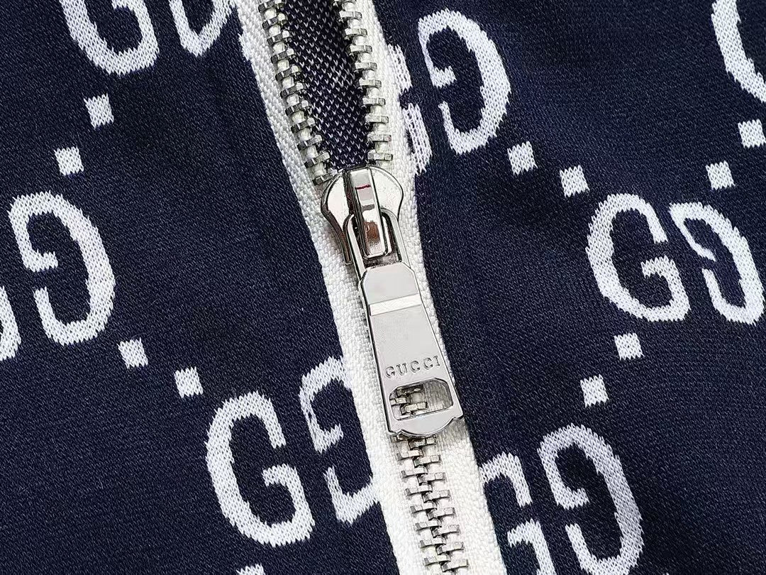GUCCI ZIP-UP KNITTED JACKET IN NAVY BLUE