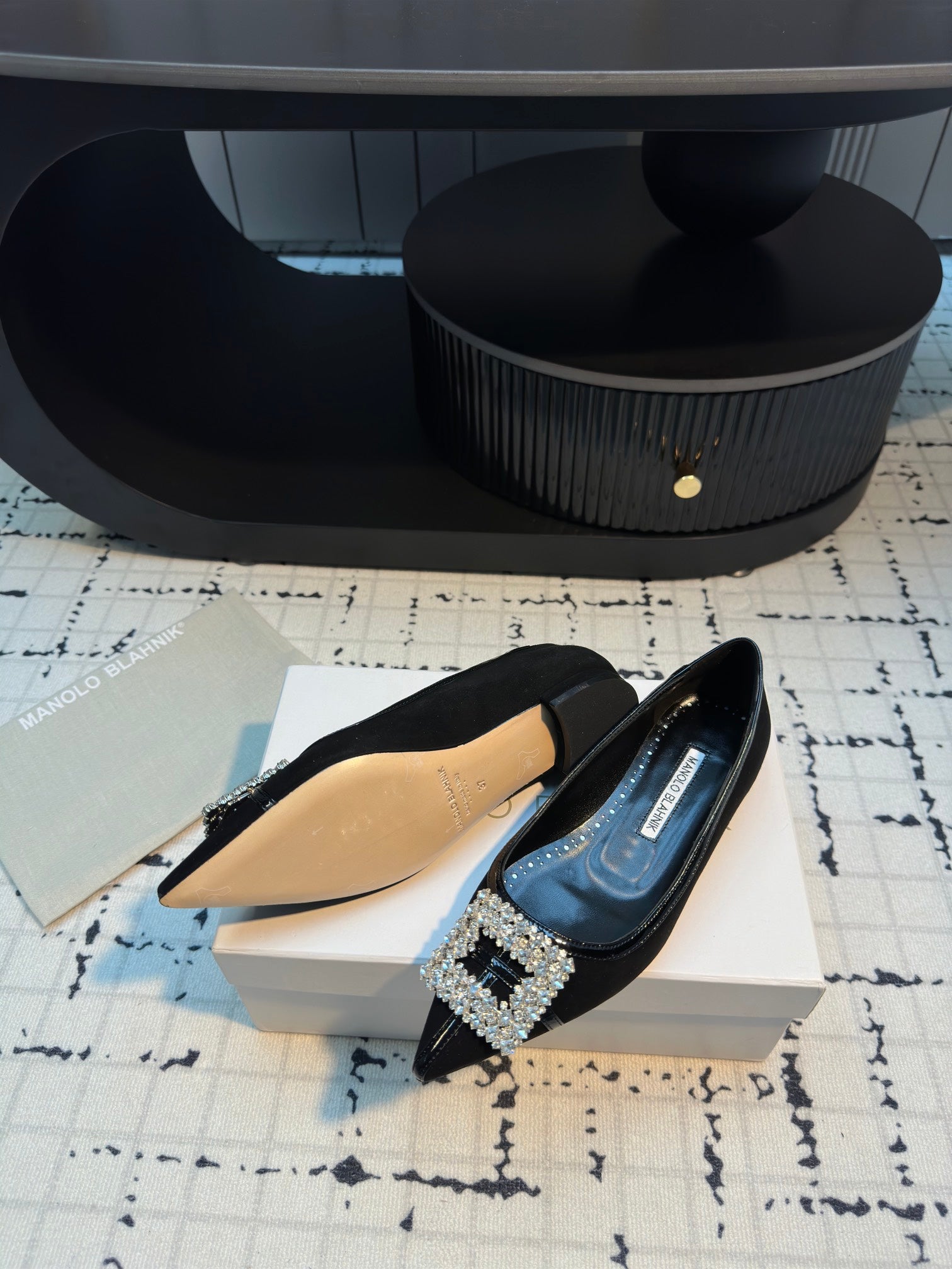 Hangisi 10mm Ballet Flat Black Linen and Leather Jewel Buckle 161063