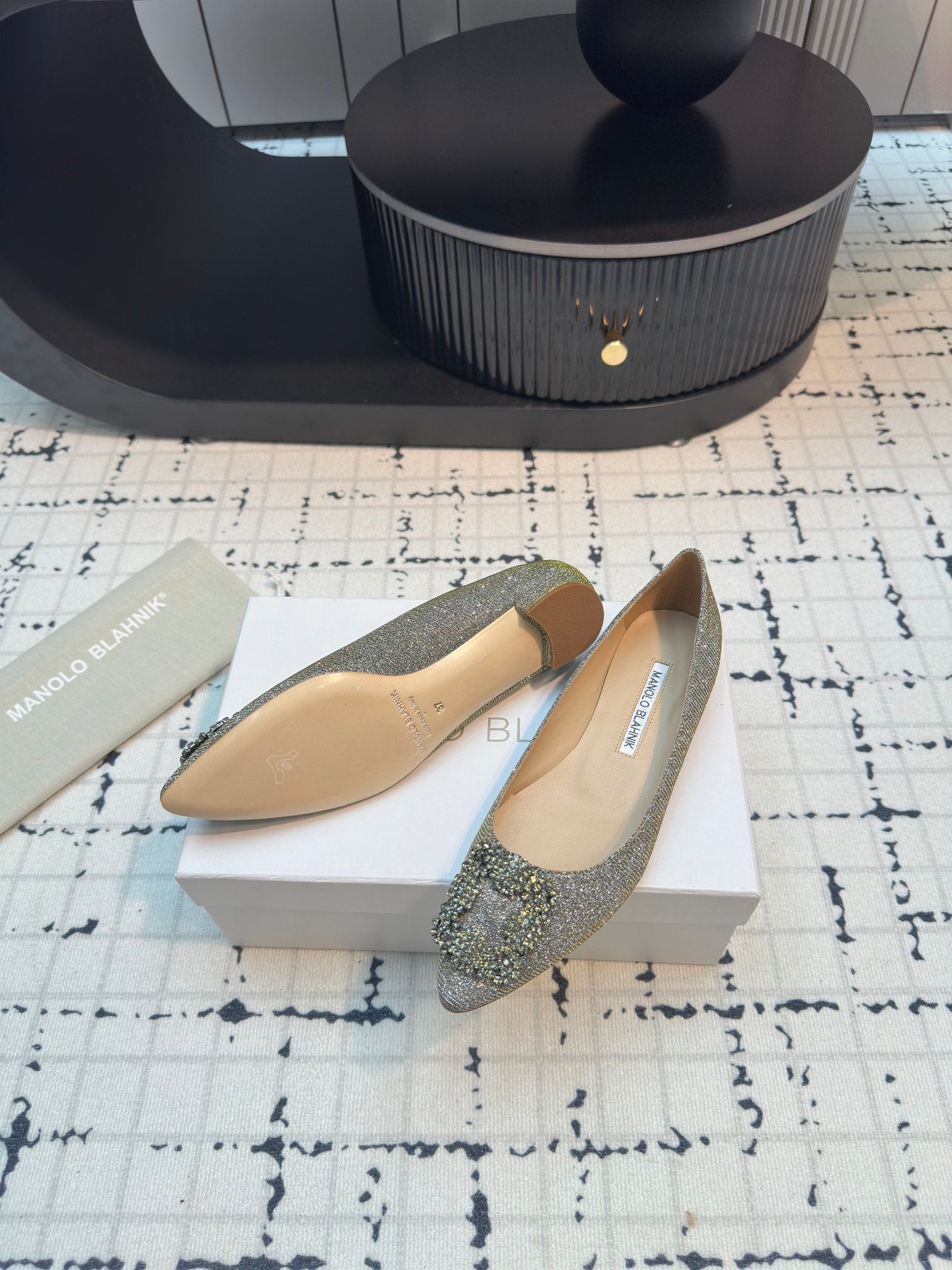 Hangisi 20 Ballet Flat Gold Glitter Fabric Leather Jewel Buckle 912606