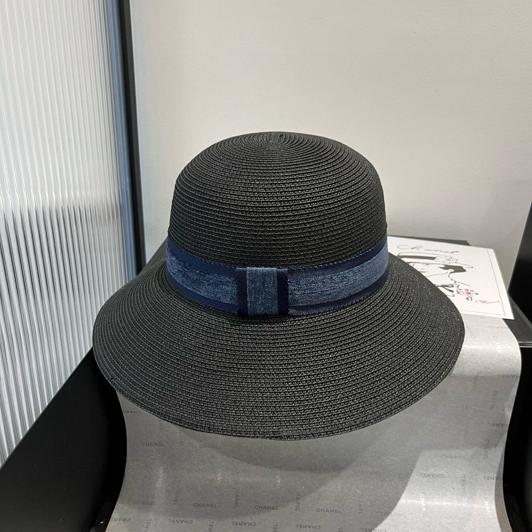 HAT IN BLACK RAFFIA MIX DENIM 653574