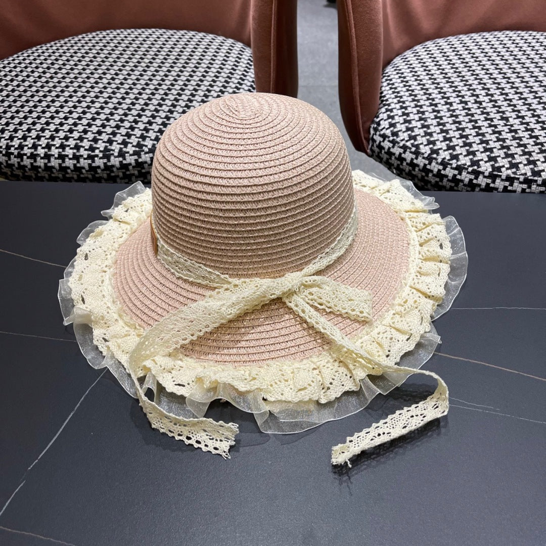 HAT IN PINK RAFFIA MIX LACE FABRIC