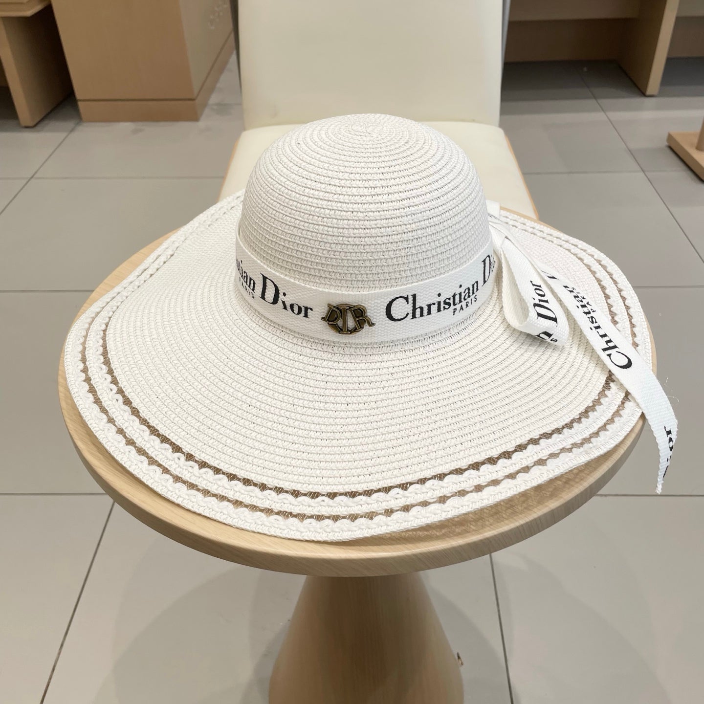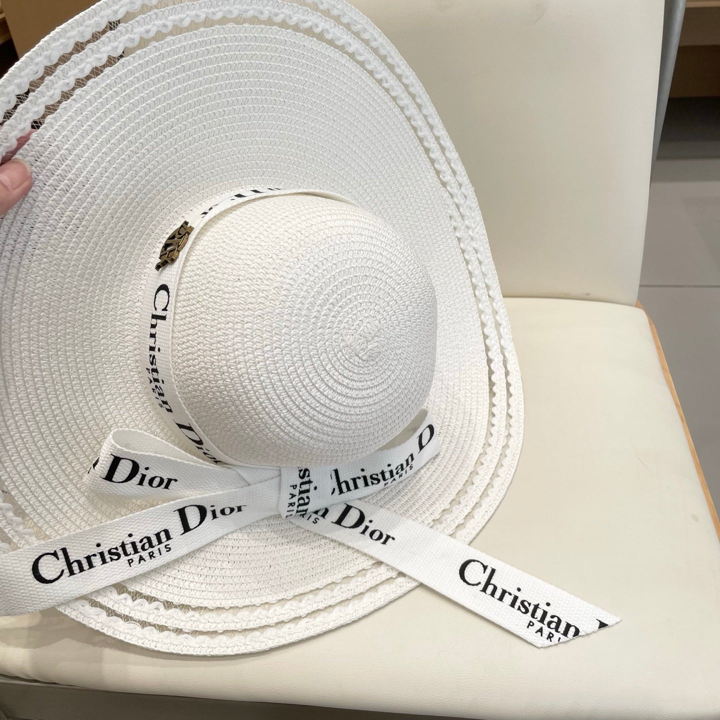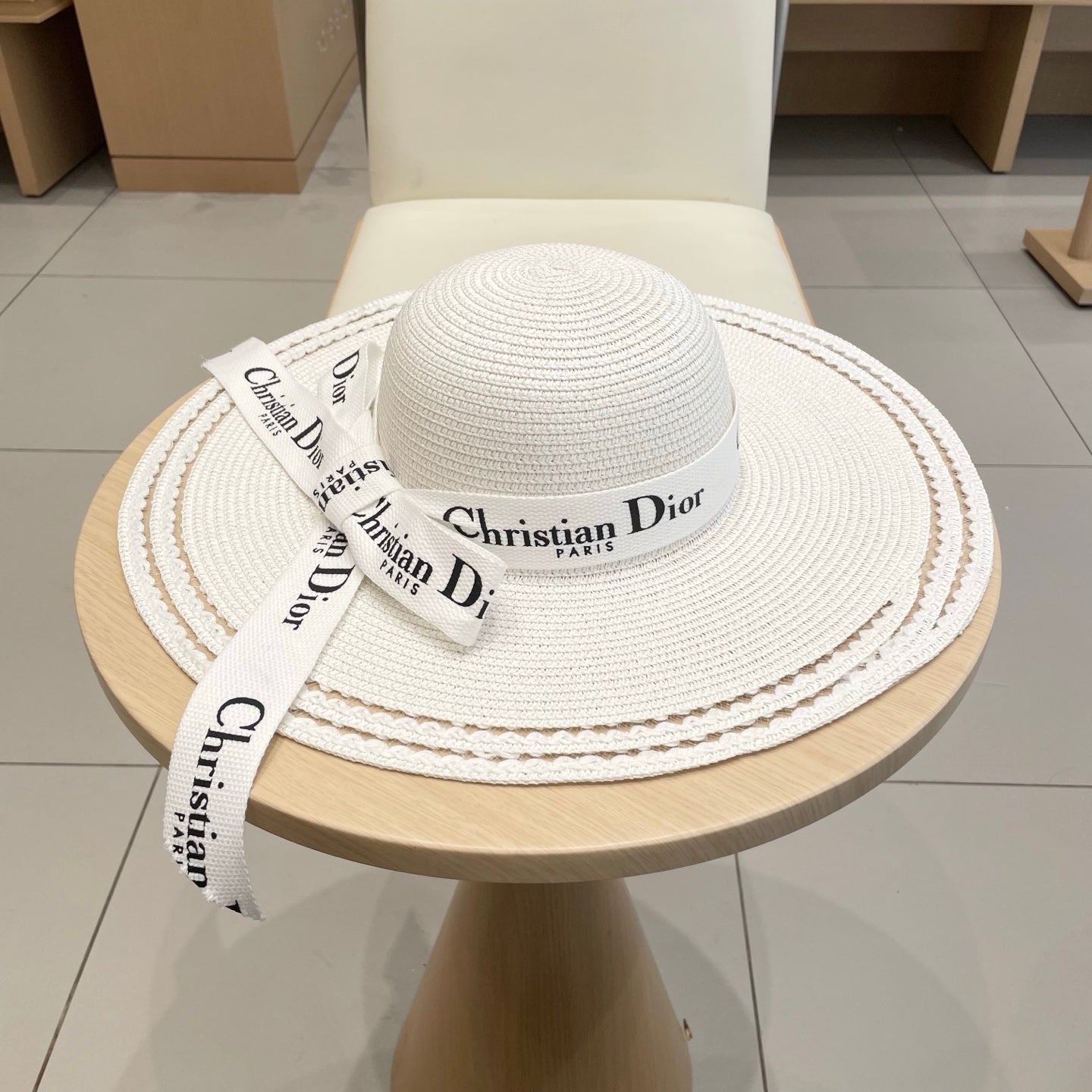 HAT IN WHITE RAFFIA WIDE-BRIM MIX BIG WHITE BOW