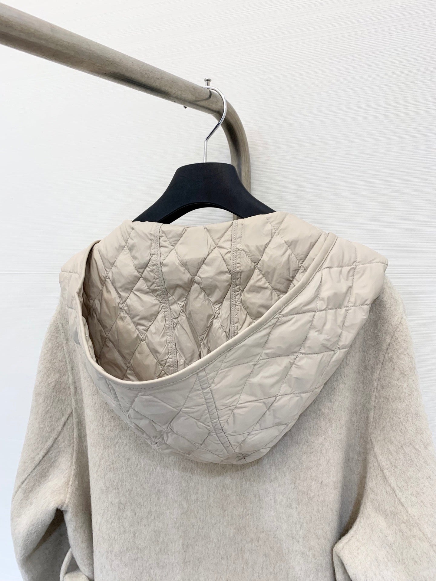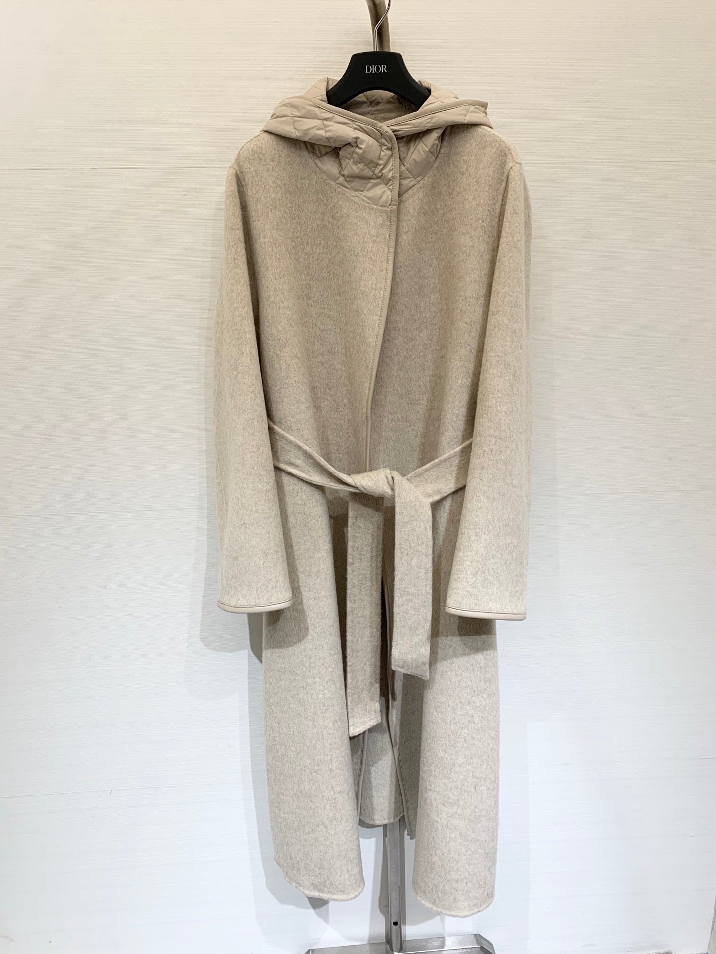 HERMES 25S KNIT HOODED COAT WITH SHEARLING TRIM 216