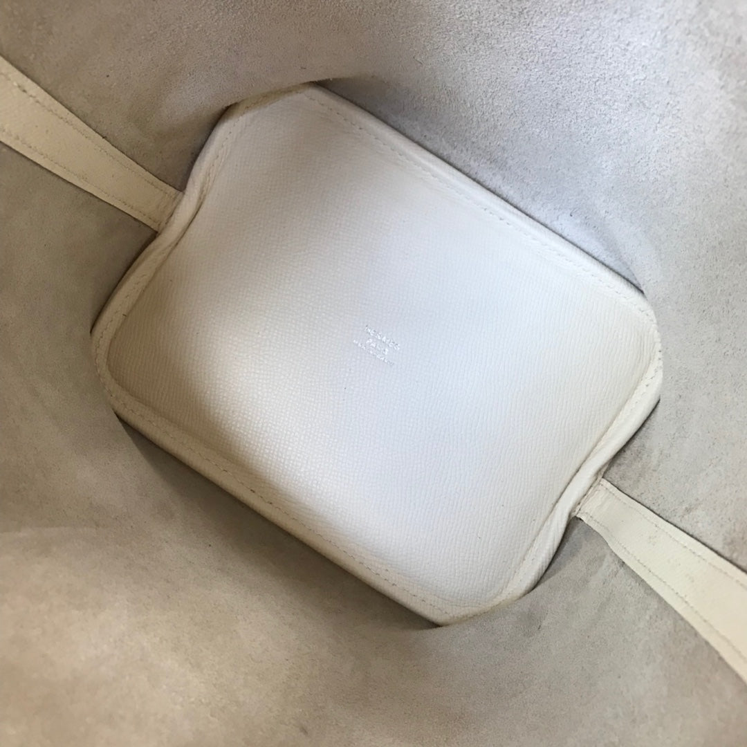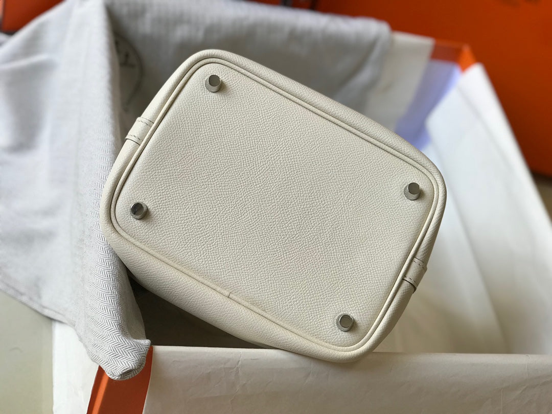 HM PICOTIN LOCK 22 WHITE CALFSKIN WITH BRAID STRAP