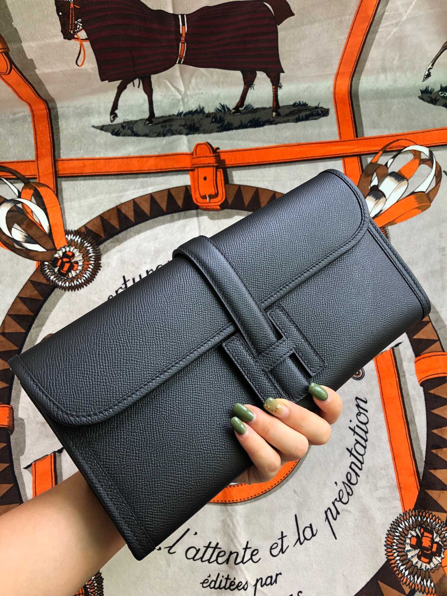 JIGE ELAN 29 CLUTCH IN BLACK CALFSKIN