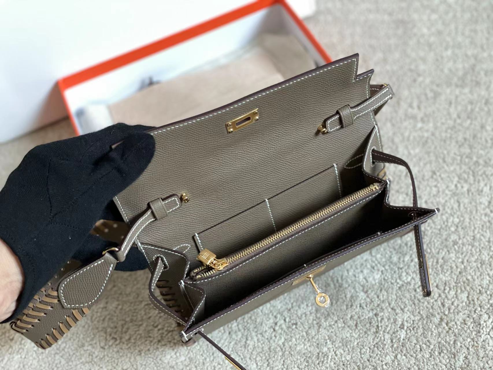 KELLY CLASSIQUE TO GO WALLET 20 IN WENGE BROWN CALFSKIN WITH GOLD HARDWARE
