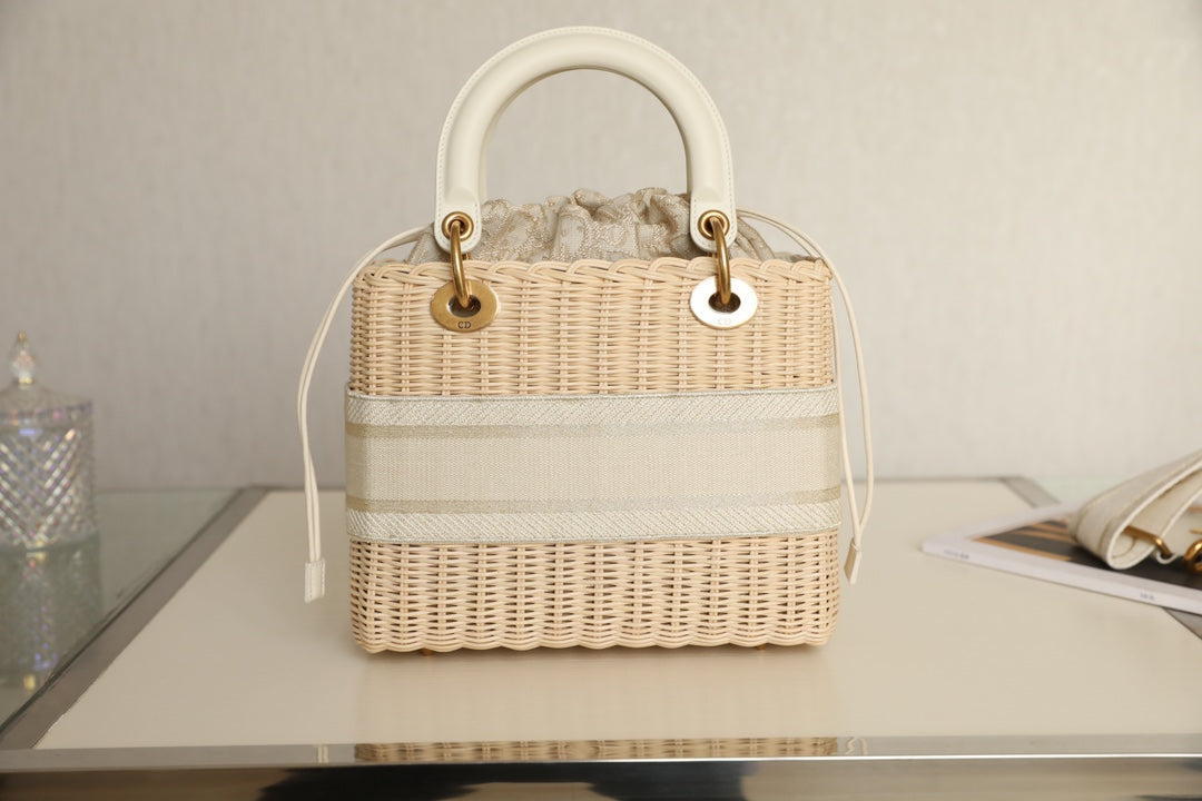 LADY 24 HANDBAG IN WHITE OBLIQUE JACQUARD AND BEIGE WICKER