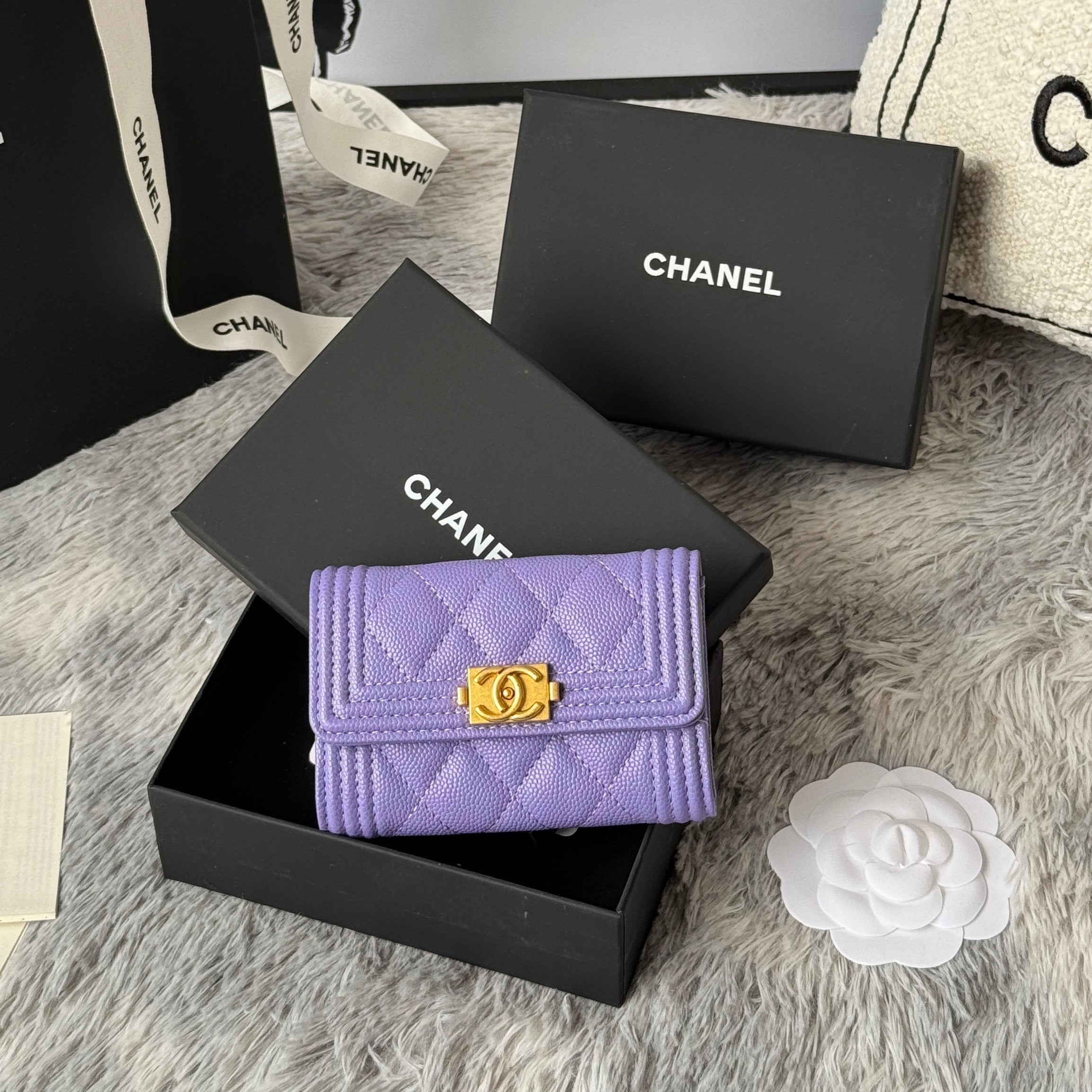 LEBOY WALLET 11 IN BABY PURPLE GRAINED CALFSKIN GOLD-TONE HARDWARE