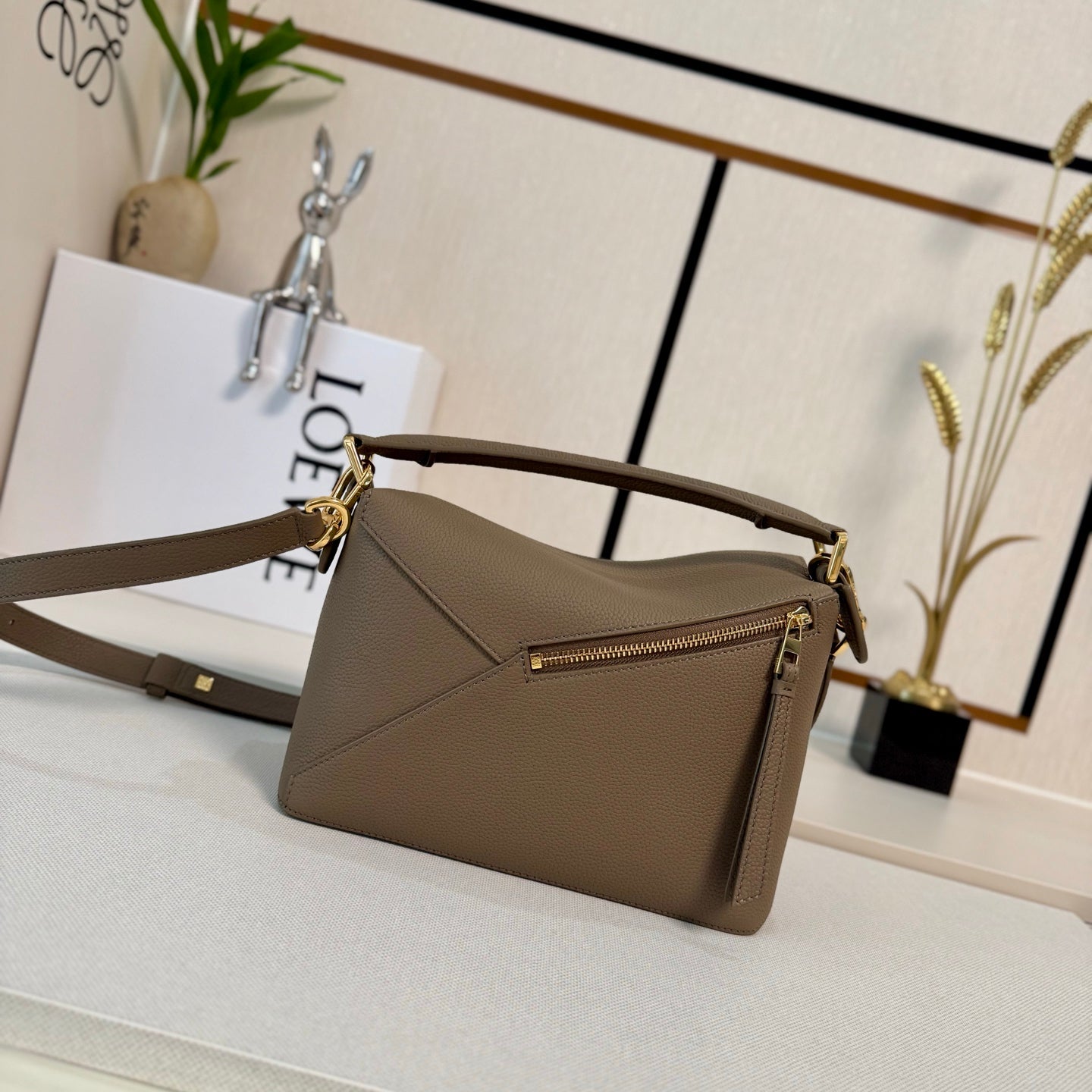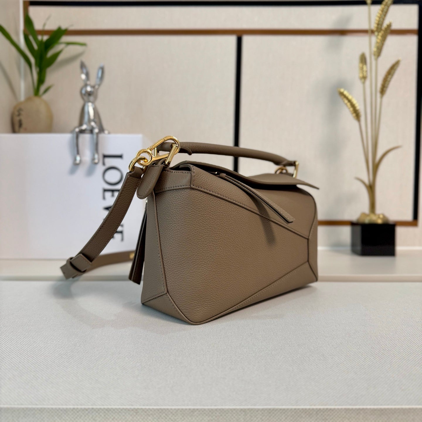 LOEWE 25S MEDIUM PUZZLE EDGE BAG 24 IN WALNUT BROWN CALFSKIN GOLD HARDWARE