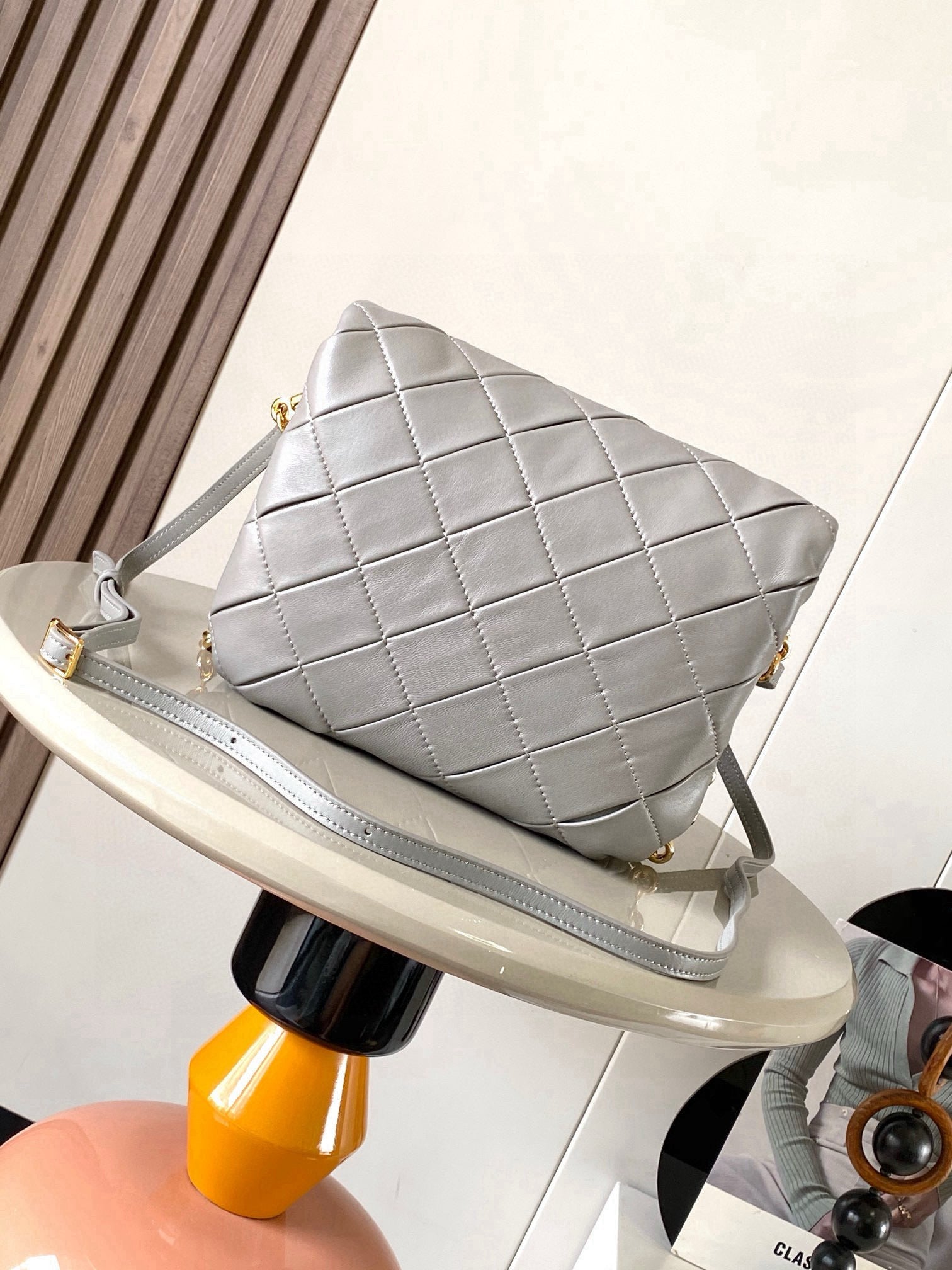 LOEWE 25S PUFFER GOYA BAG 23 IN LIGHT GRAY NAPPA LAMBSKIN