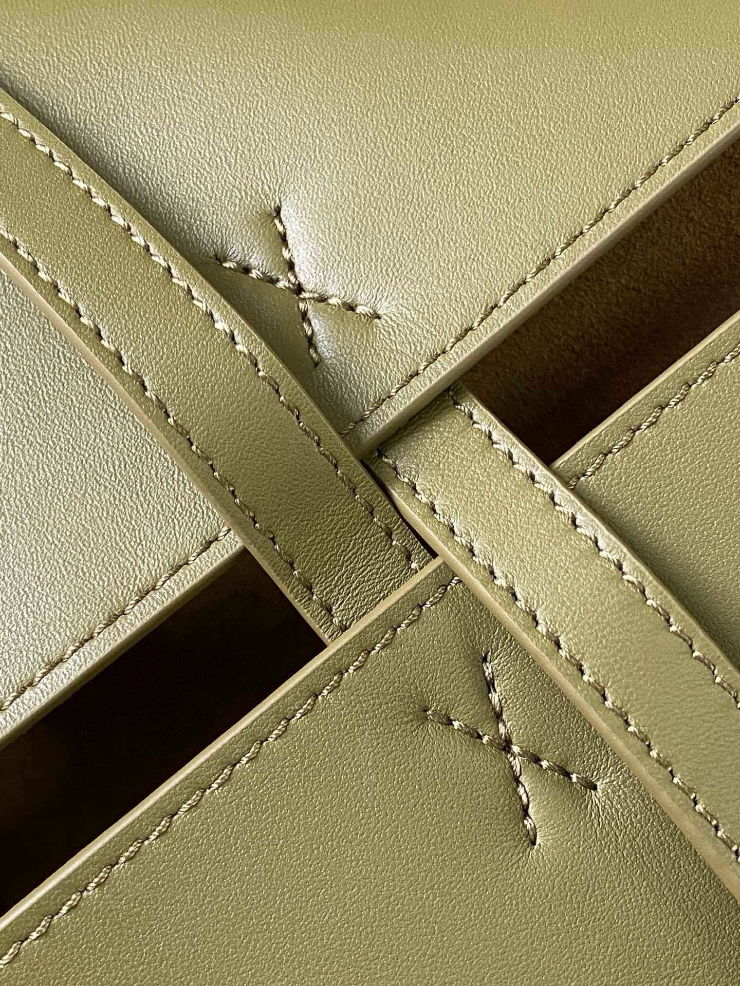 LOEWE 25S PUZZLE FOLD BAG 31 IN OLIVE GREEN AND DARK BLUE SHINY CALFSKIN