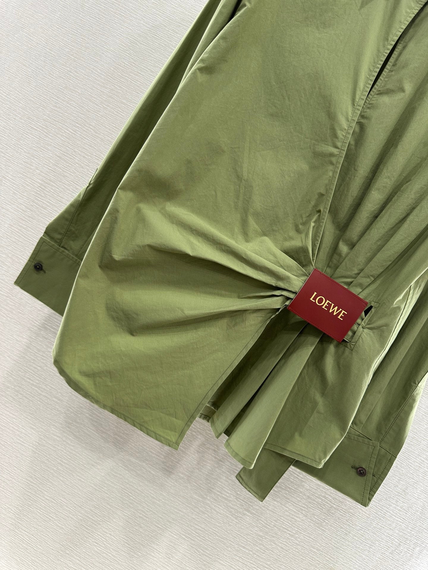 LOEWE GREEN LONG SLEEVE SHIRT WITH PLEATED WAIST