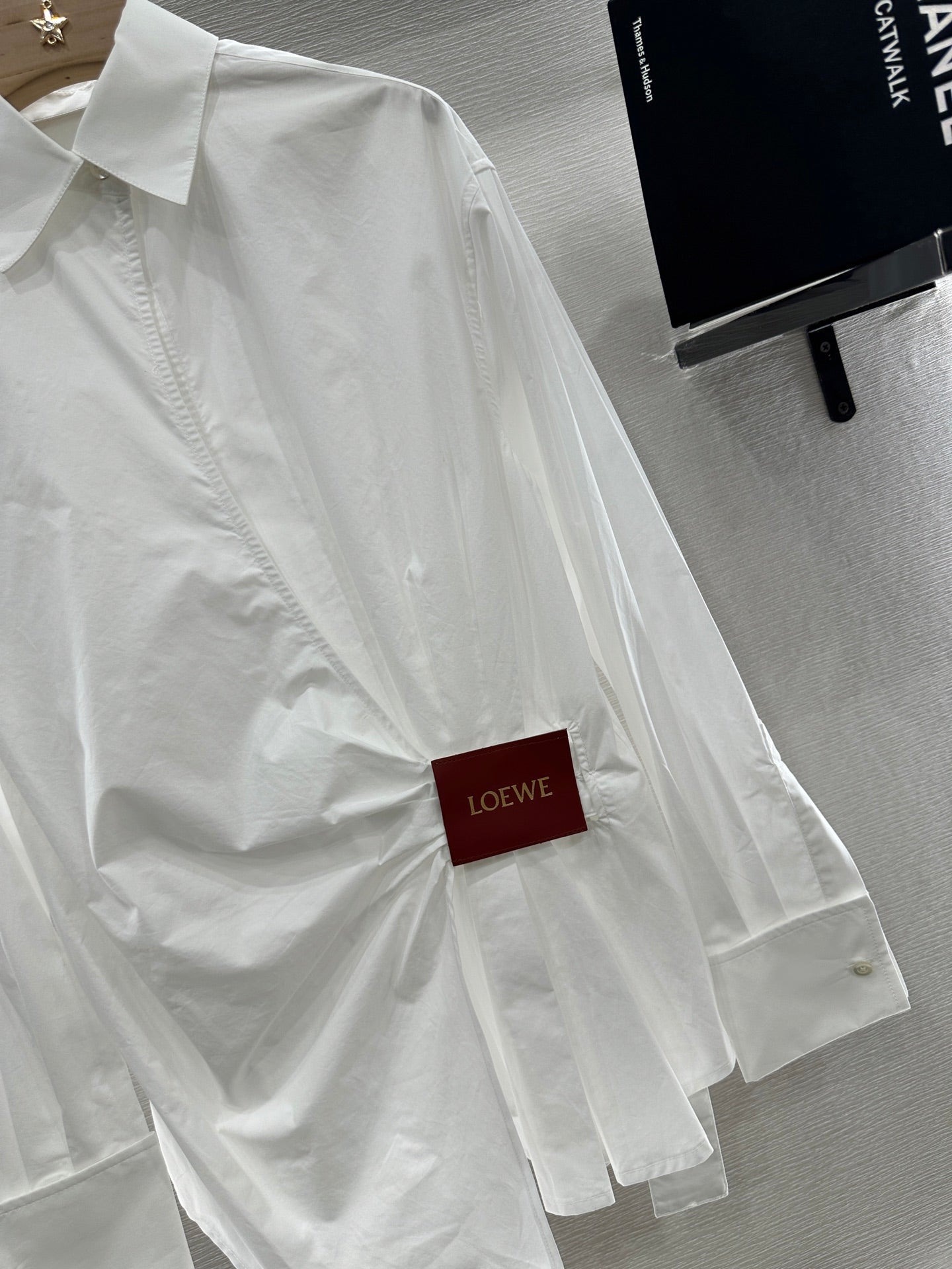 LOEWE WHITE LONG SLEEVE SHIRT WITH PLEATED WAIST