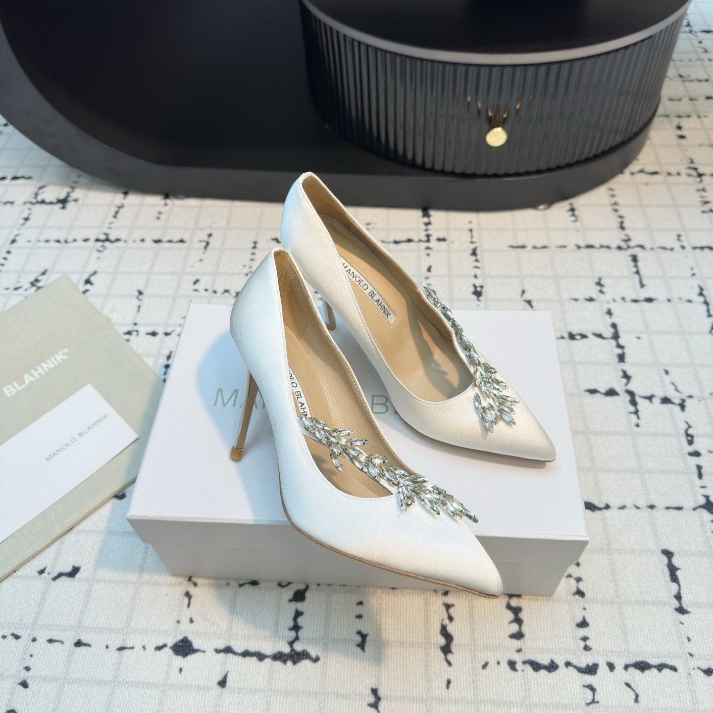 Lurum 90 White Satin Crystal Embellished Pumps 868664