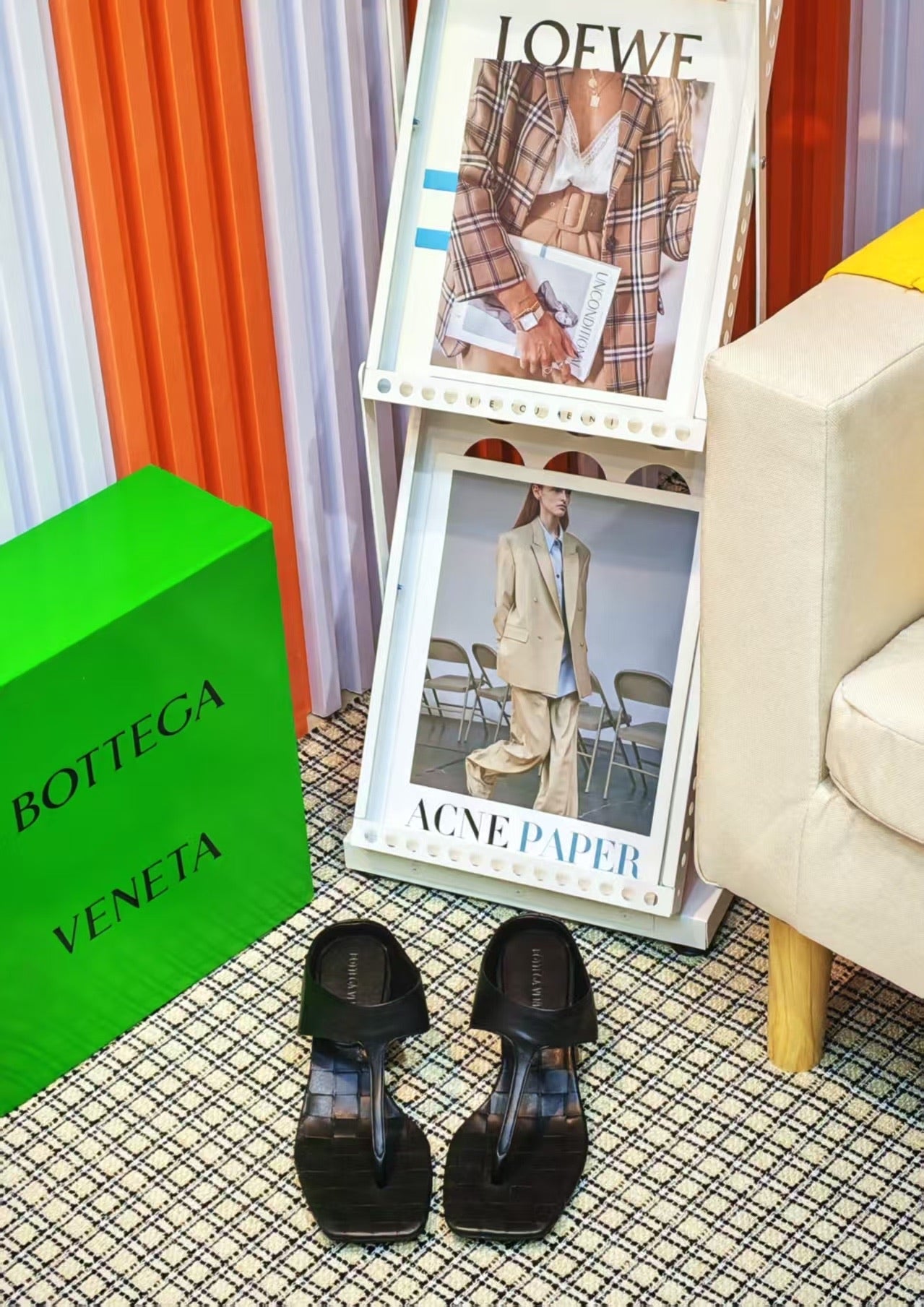 MARELLA THONG IN BLACK CALFSKIN WITH SIGNATURE INTRECCIATO INSOLE
