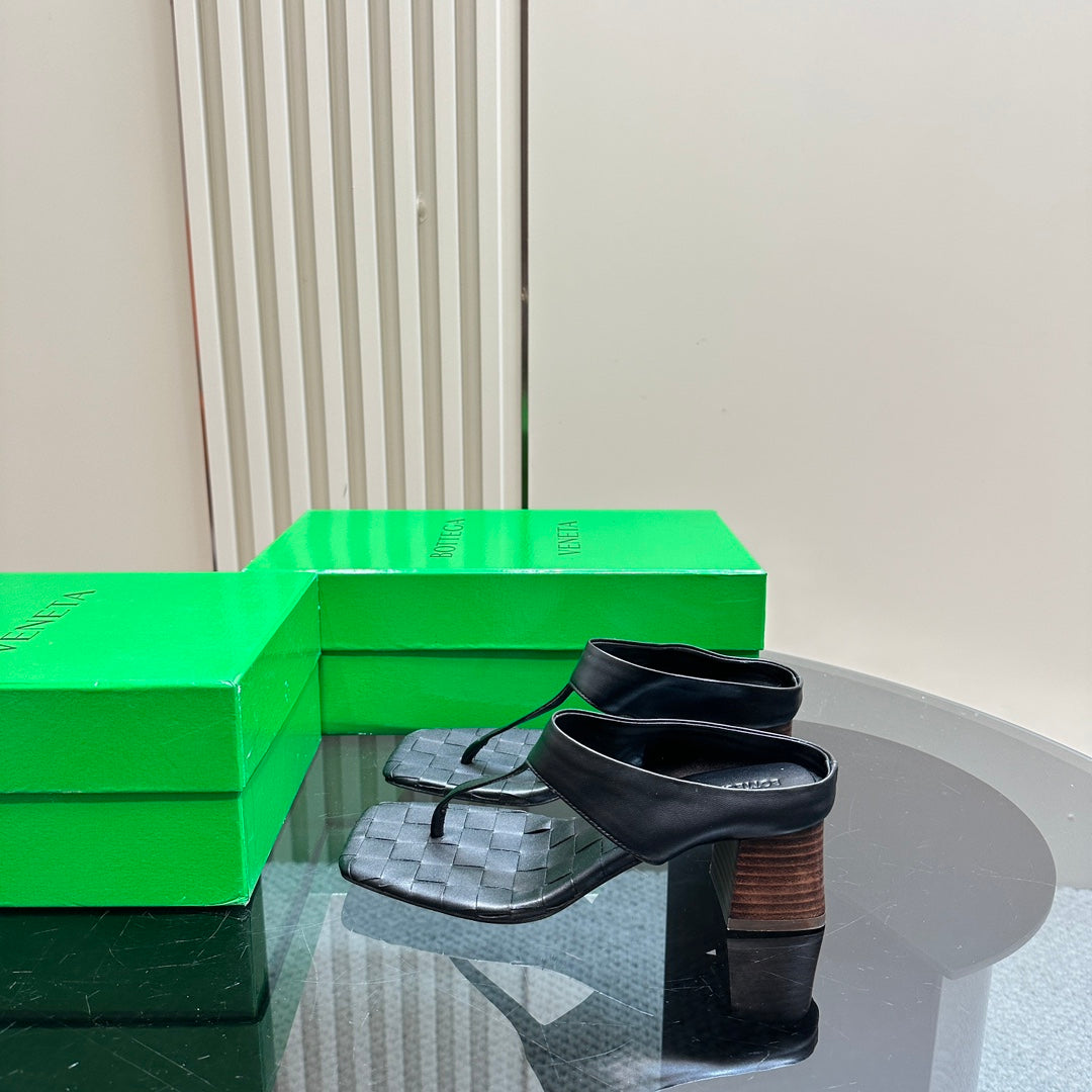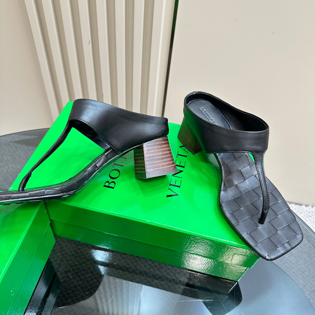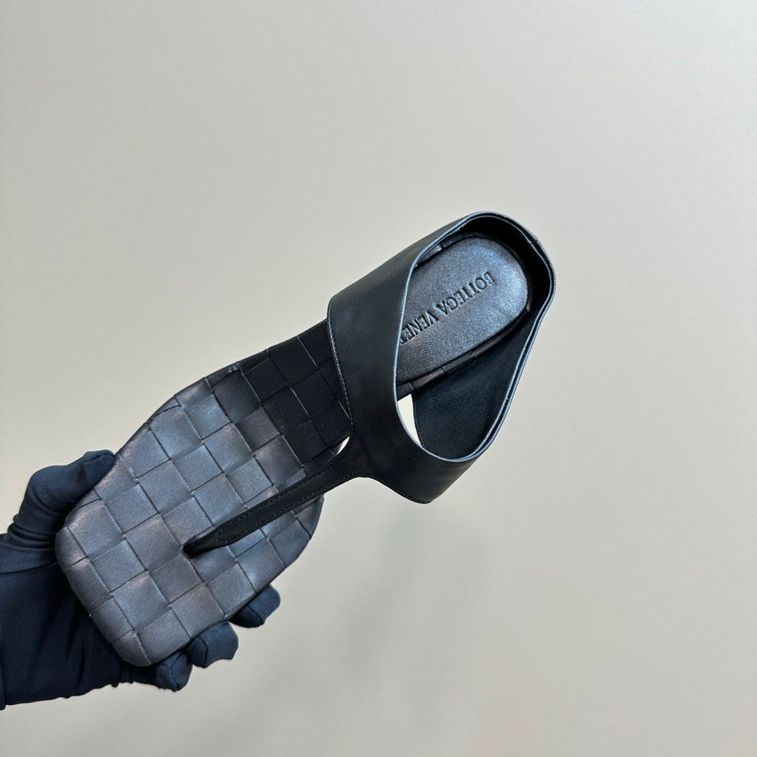 MARELLA THONG IN BLACK LEATHER WITH SIGNATURE INTRECCIATO INSOLE 55 MM