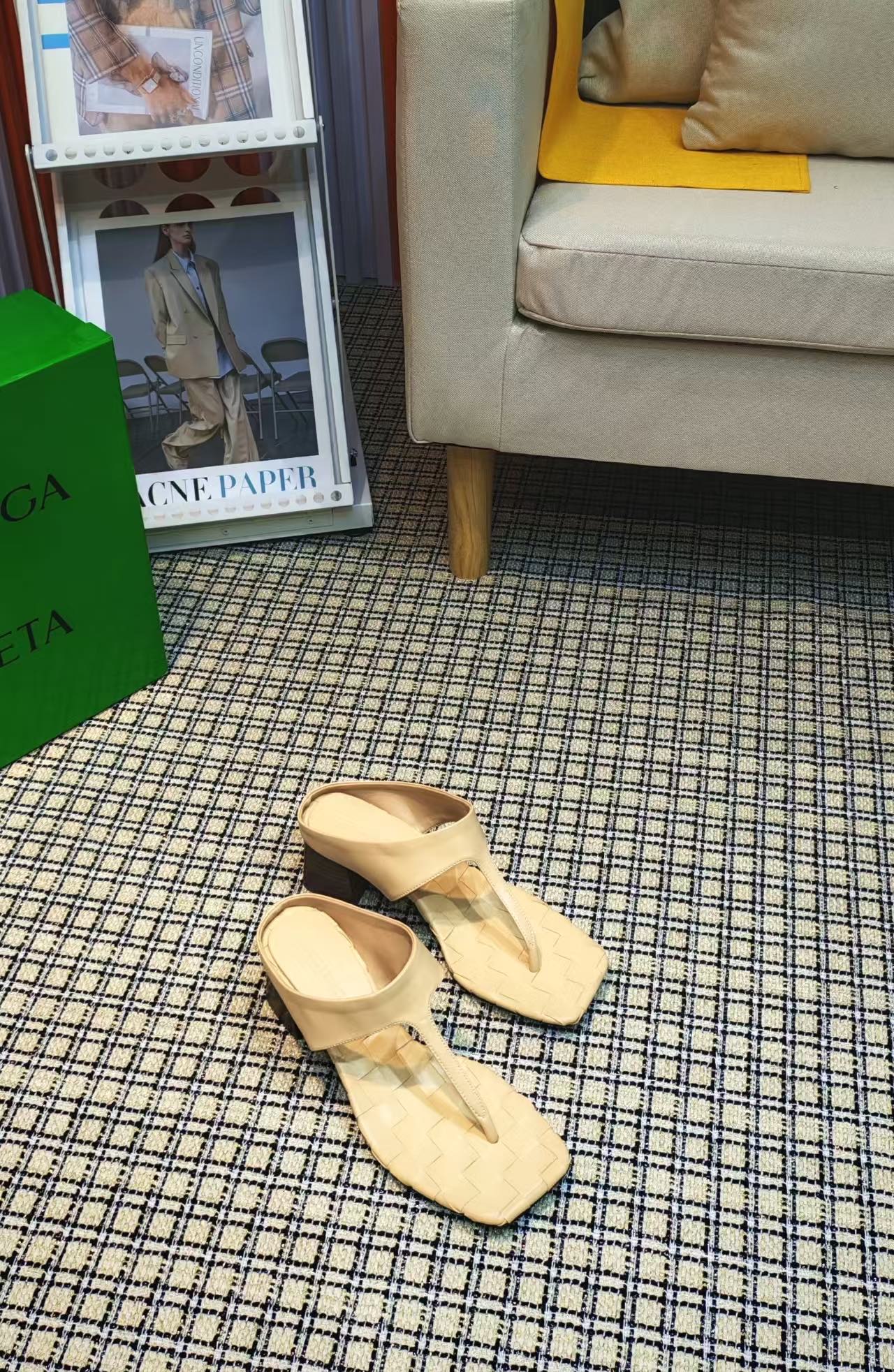 MARELLA THONG IN PALE YELLOW CALFSKIN WITH SIGNATURE INTRECCIATO INSOLE