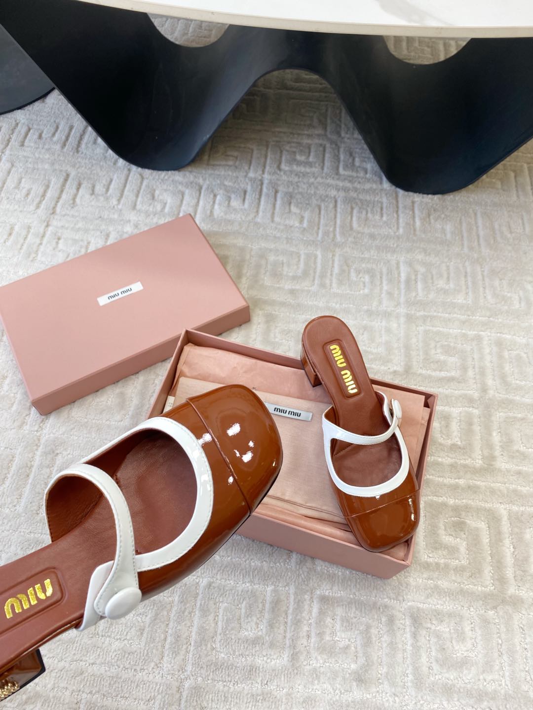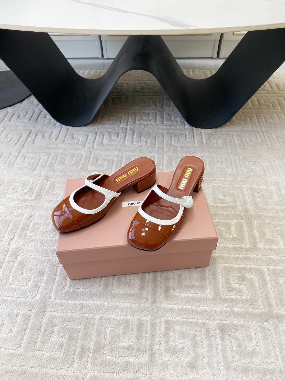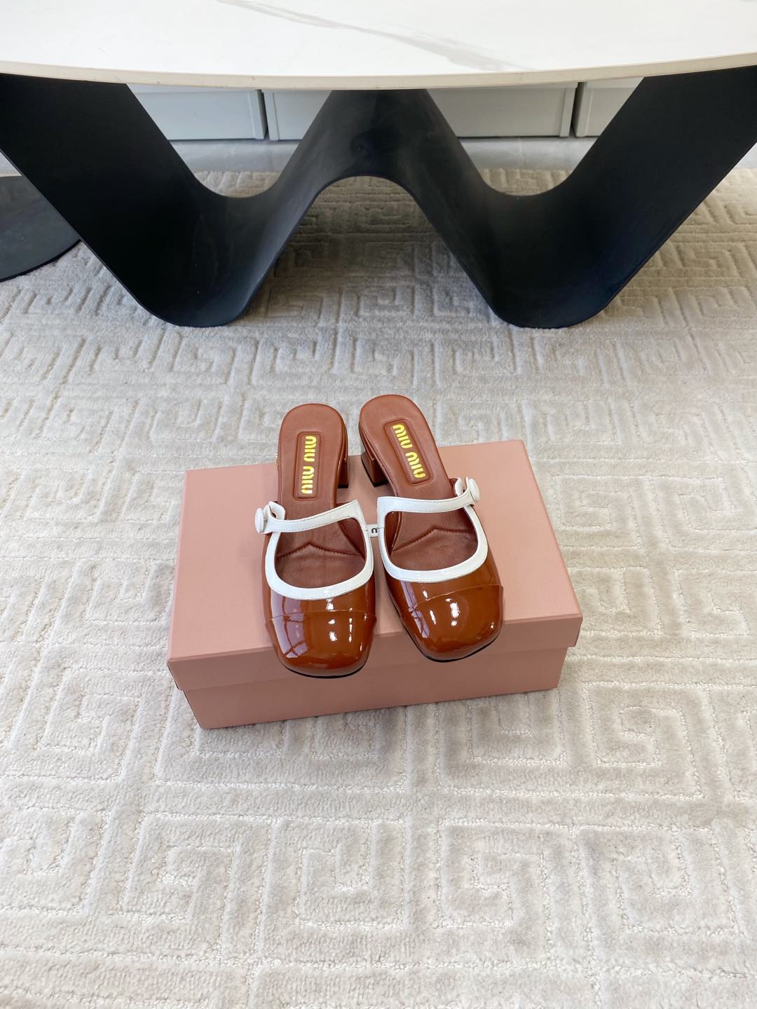 MARY JANE MULE PUMPS IN RED BROWN GLOSSY SHEEPSKIN