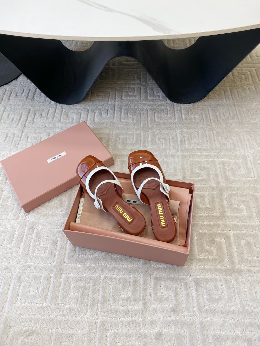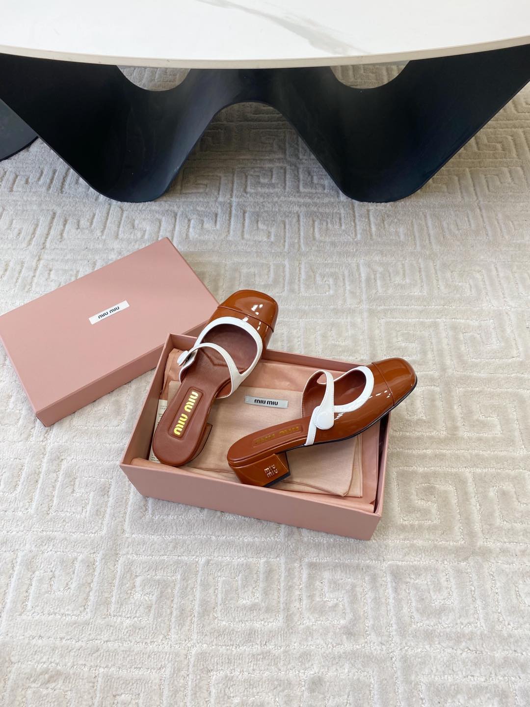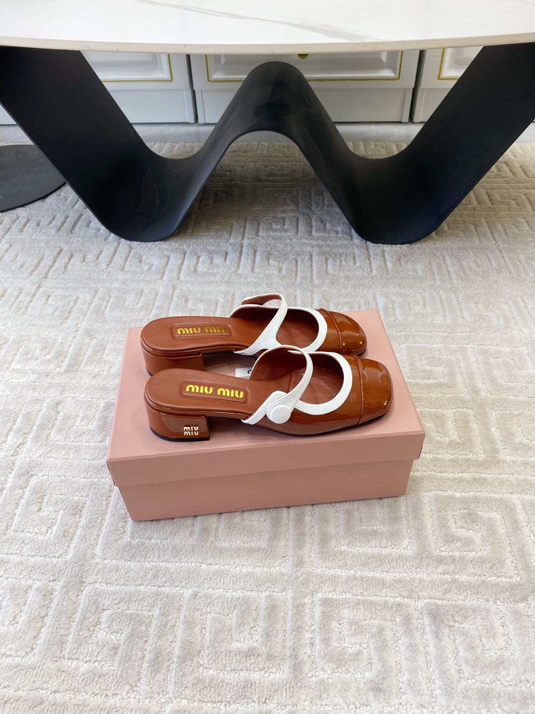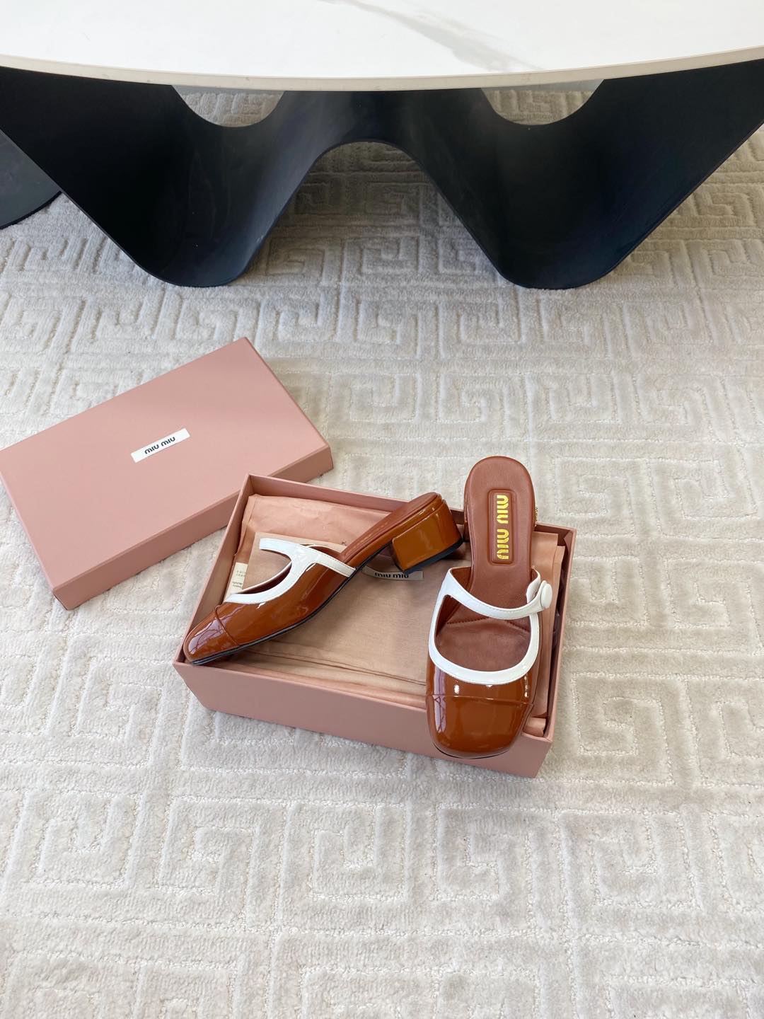 MARY JANE MULE PUMPS IN RED BROWN GLOSSY SHEEPSKIN