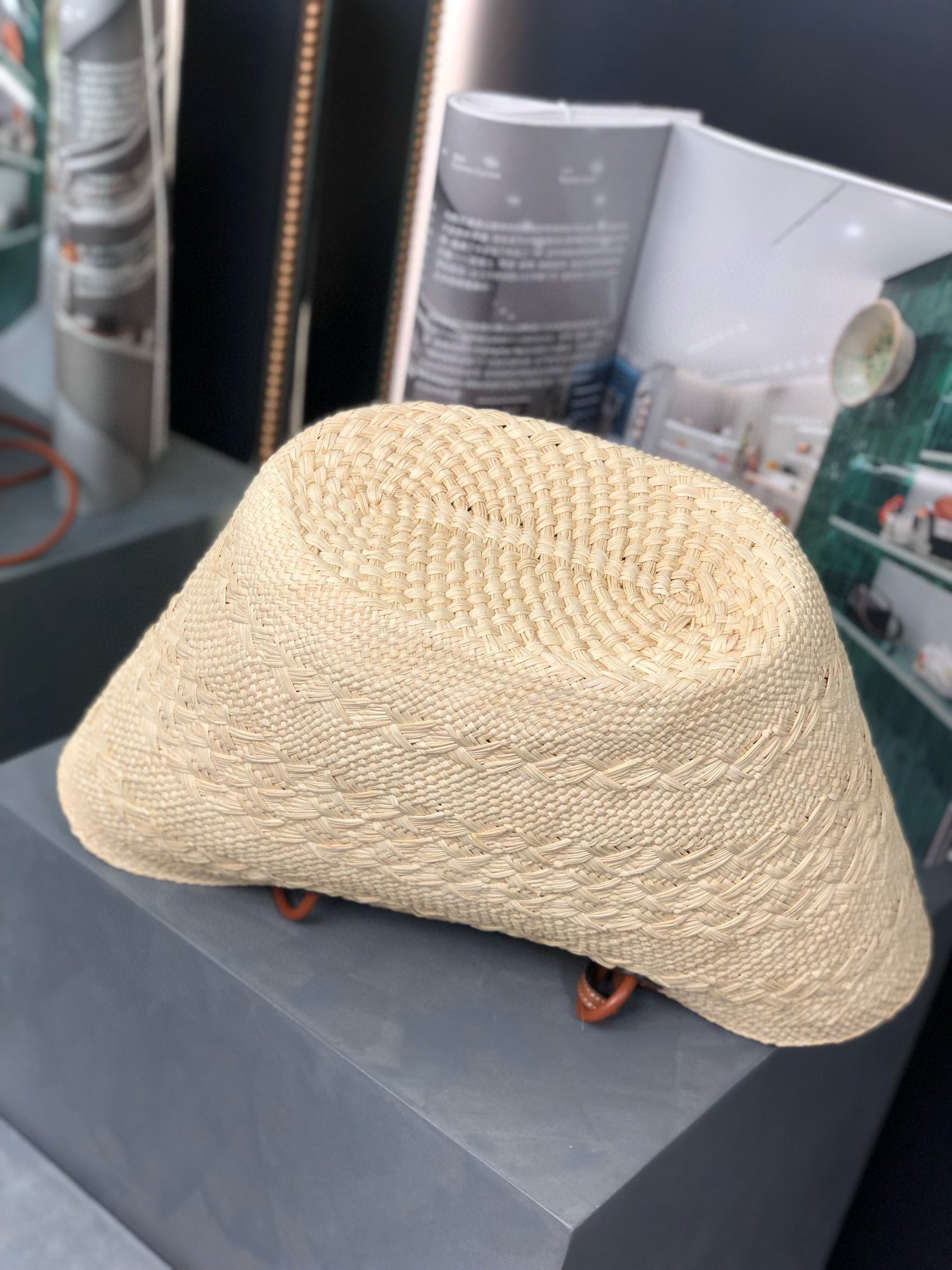 MEDIUM ANAGRAM BASKET BAG 46 IN BEIGE IRACA PALM AND TAN CALFSKIN
