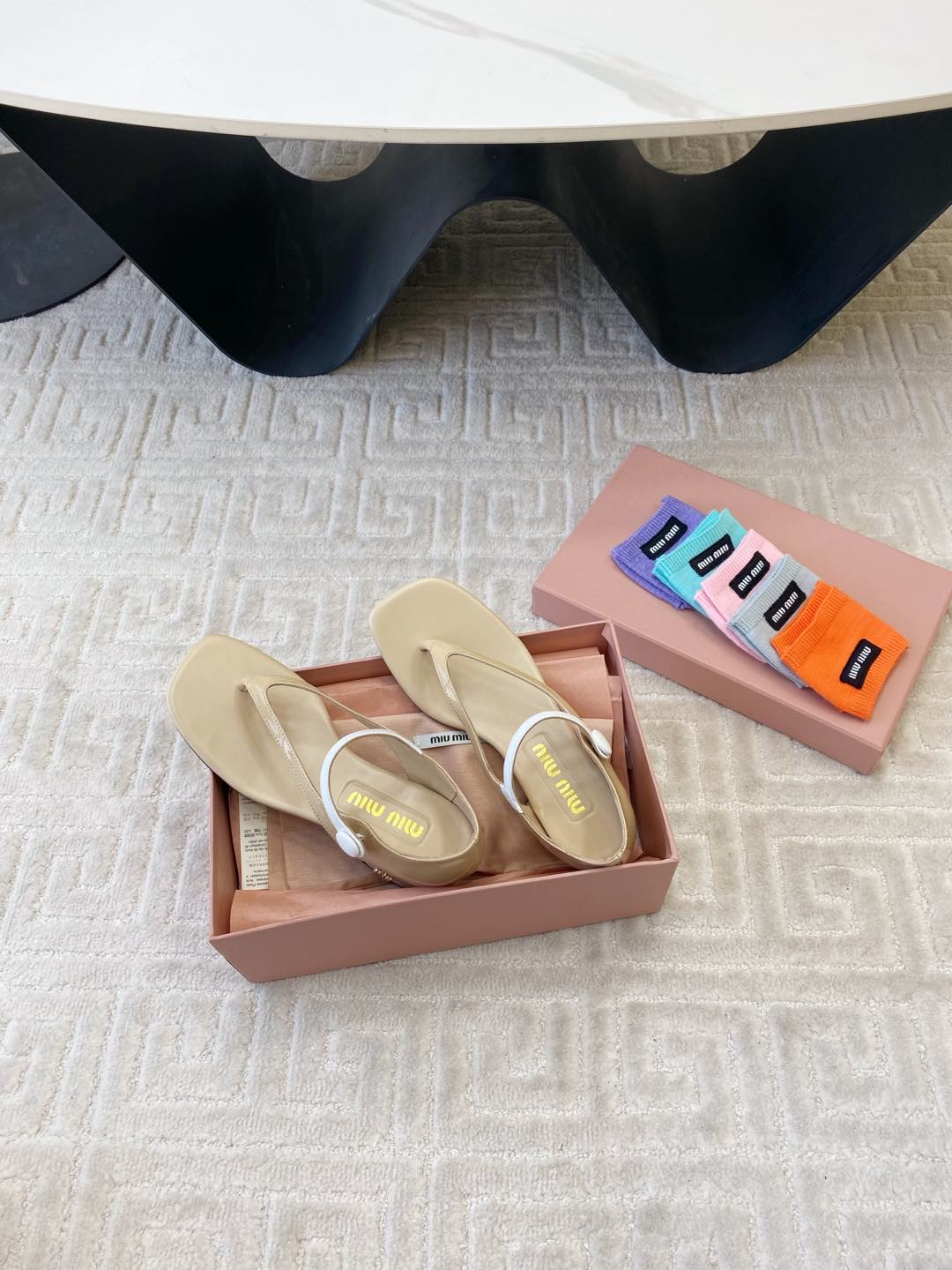 MID-HEEL THONG SANDALS IN BEIGE GLOSSY SHEEPSKIN