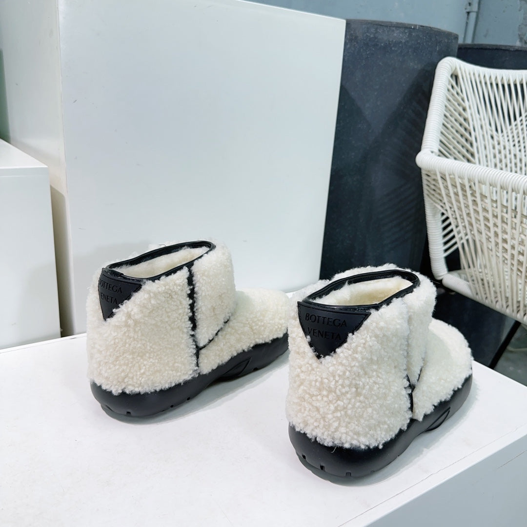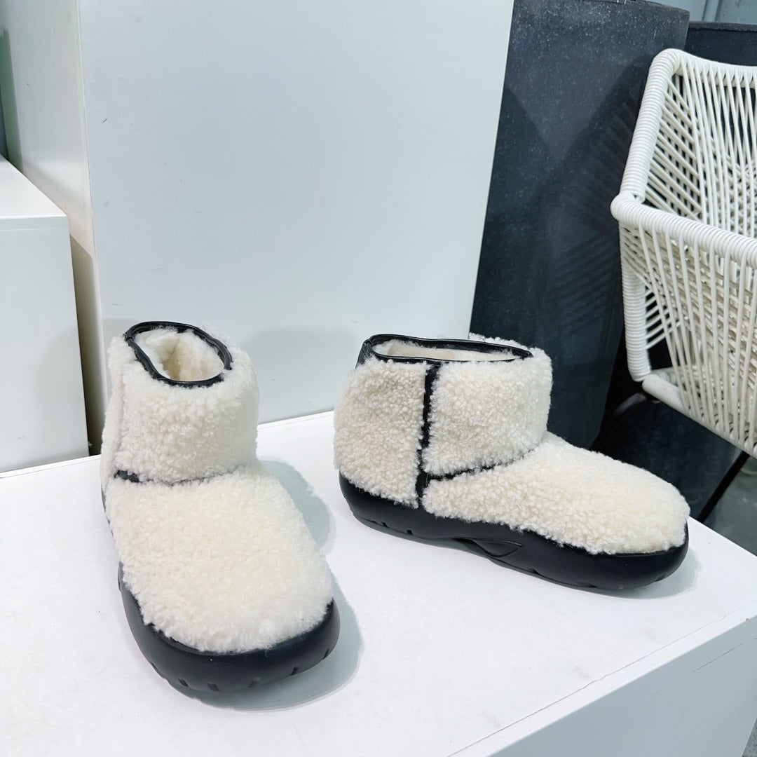 MINI ANKLE BOOT IN WHITE SHEARLING WITH BLACK ULTRA LIGHTWEIGHT RUBBER OUTSOLE