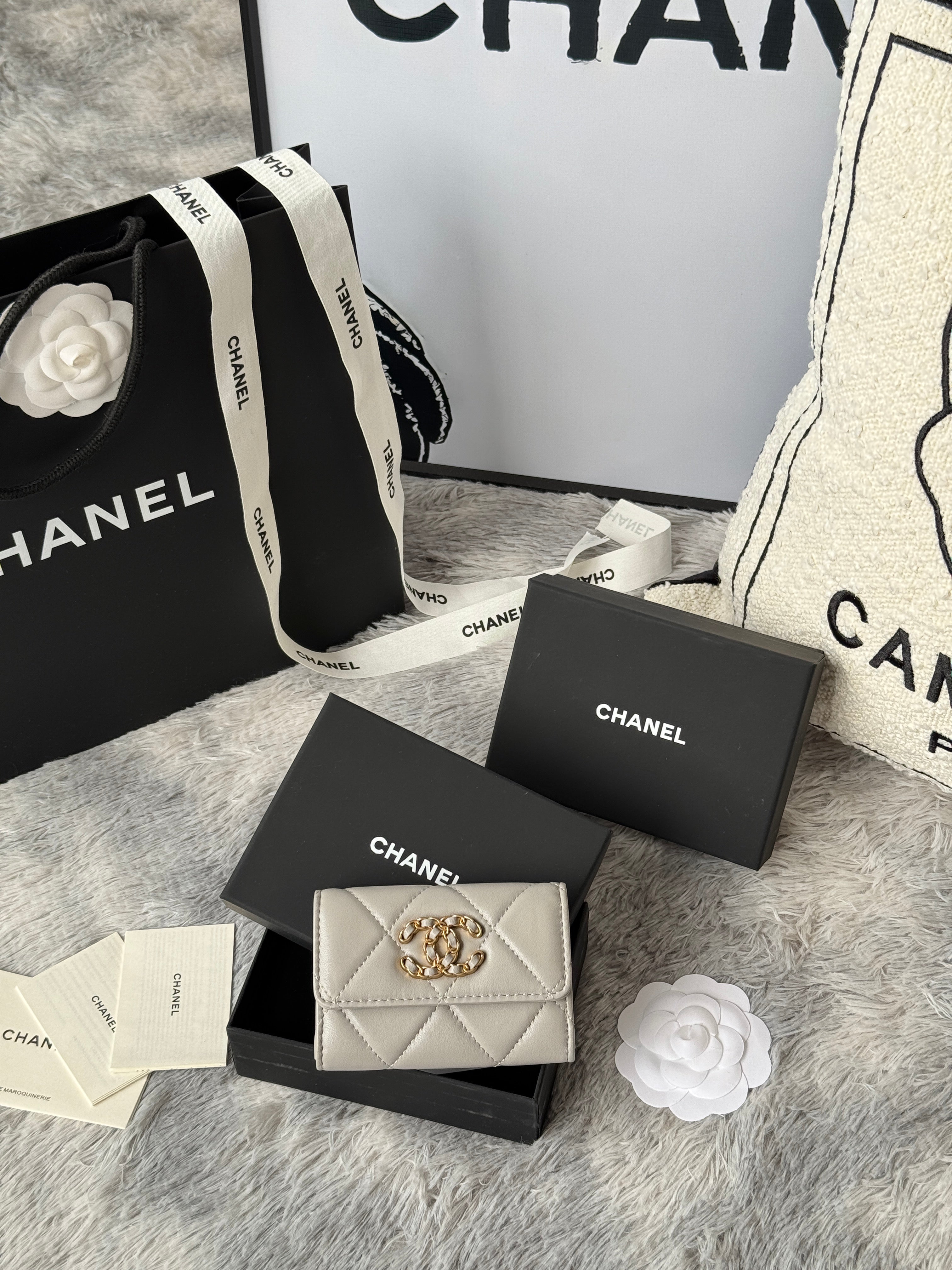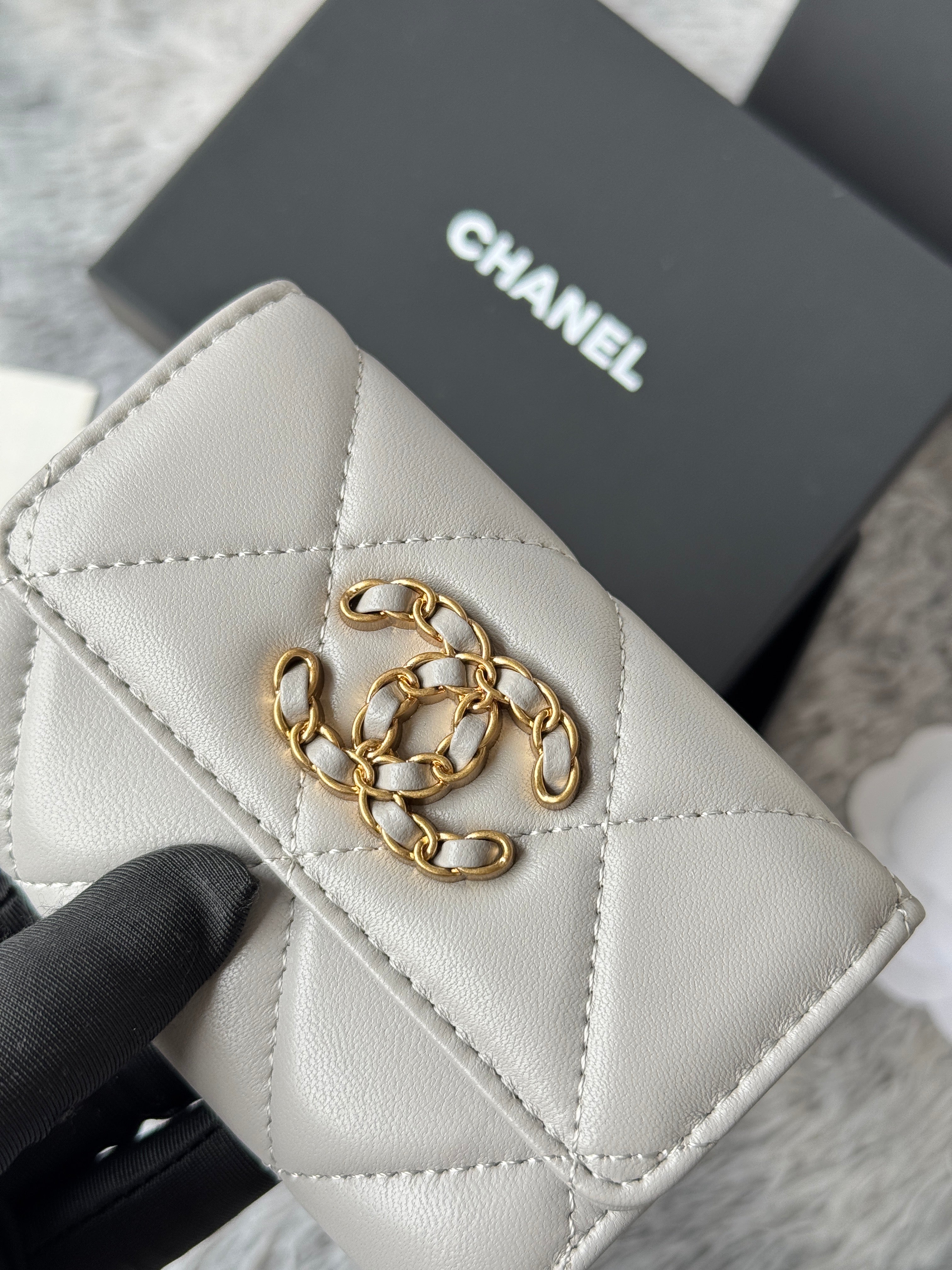 MINI FLAP CARD HOLDER 11 IN GREY LAMBSKIN GOLD-TONE METALLIC