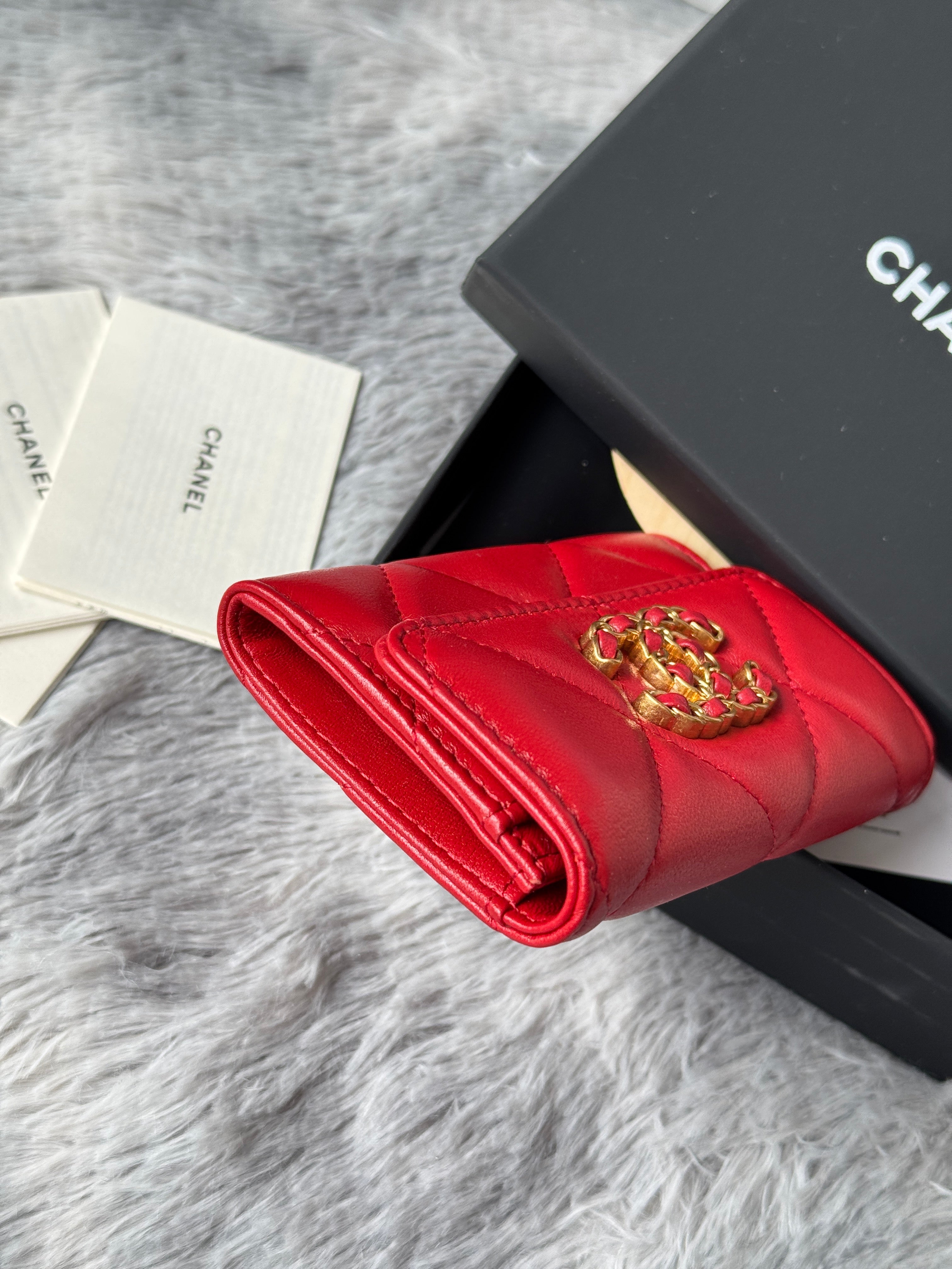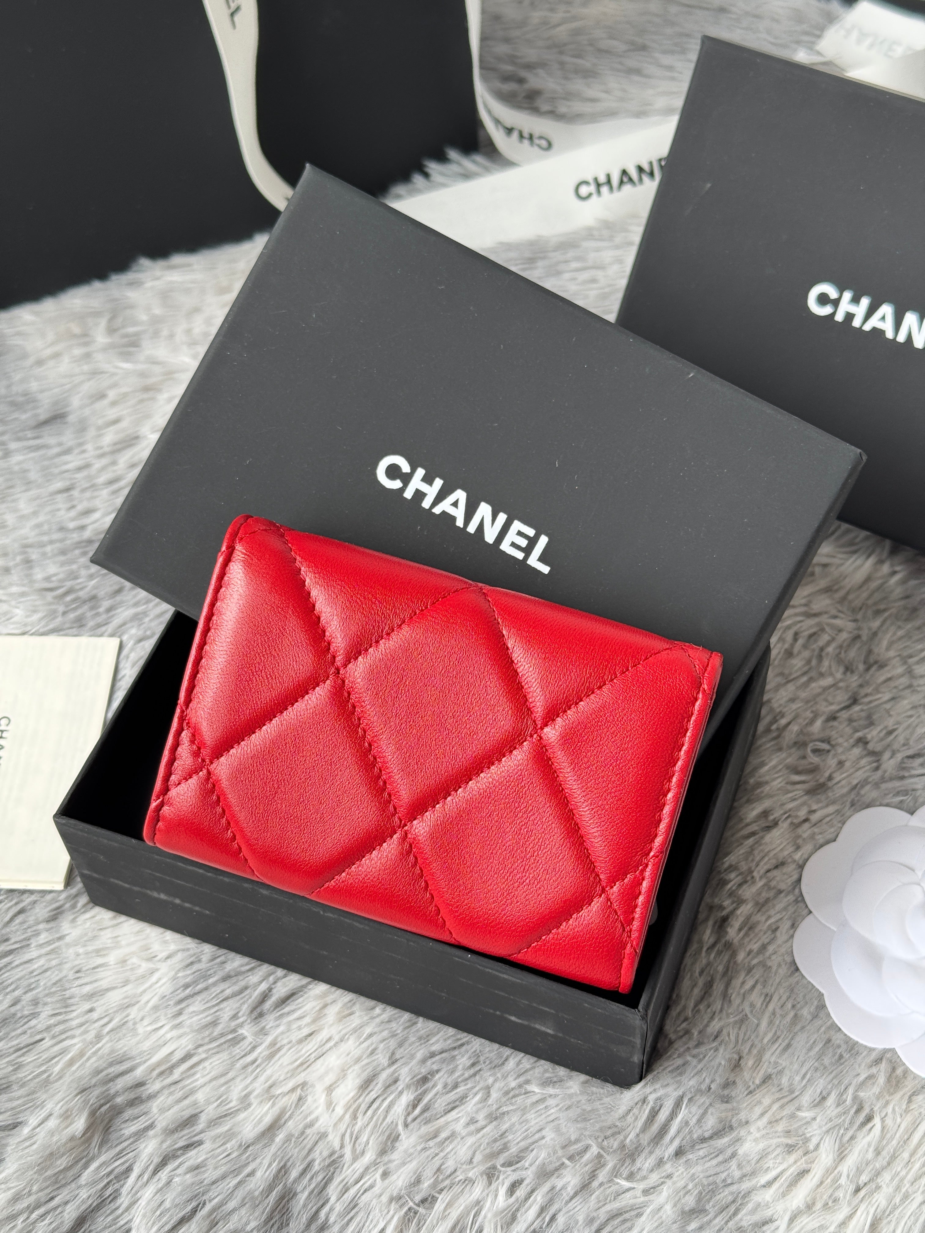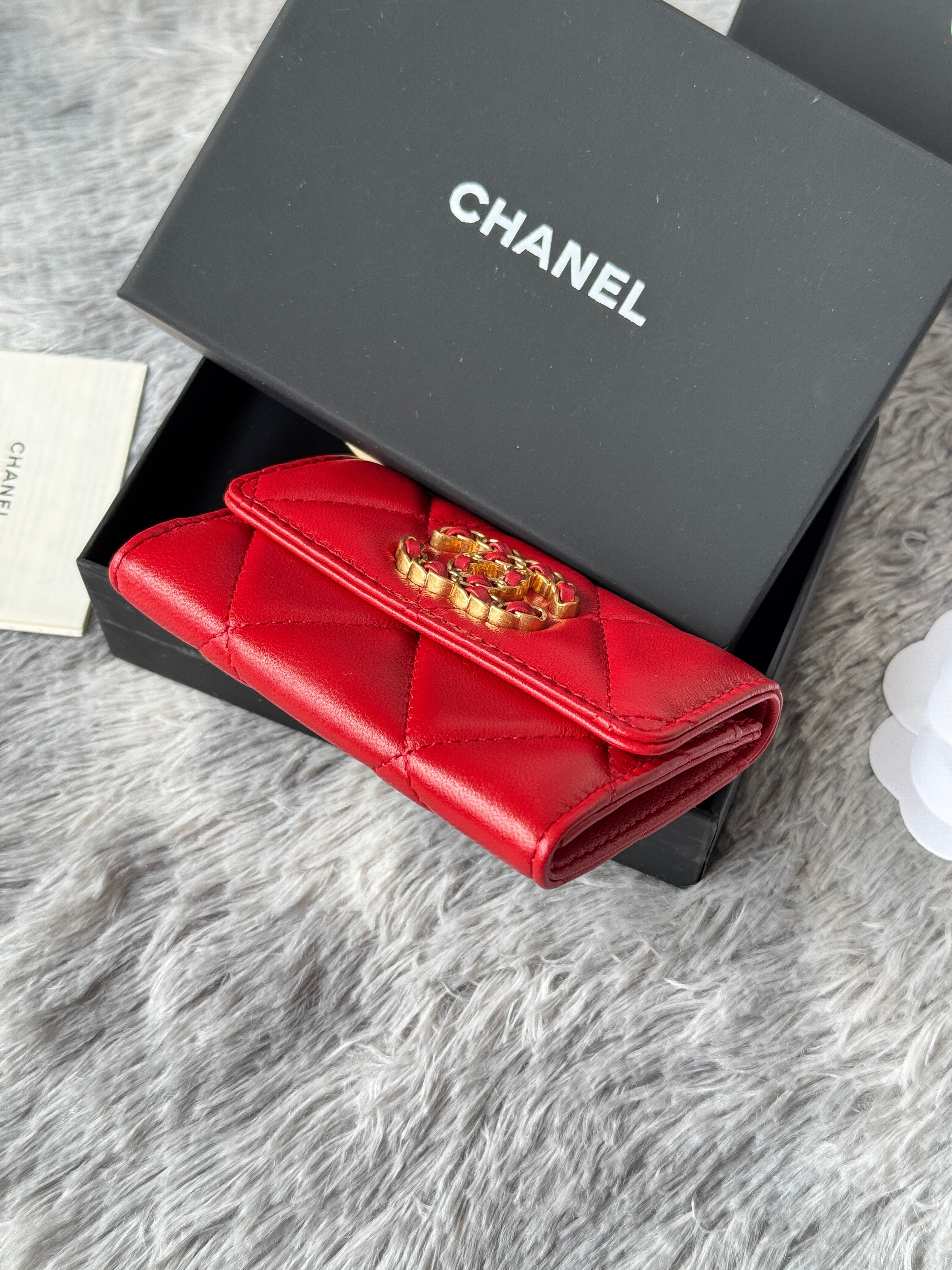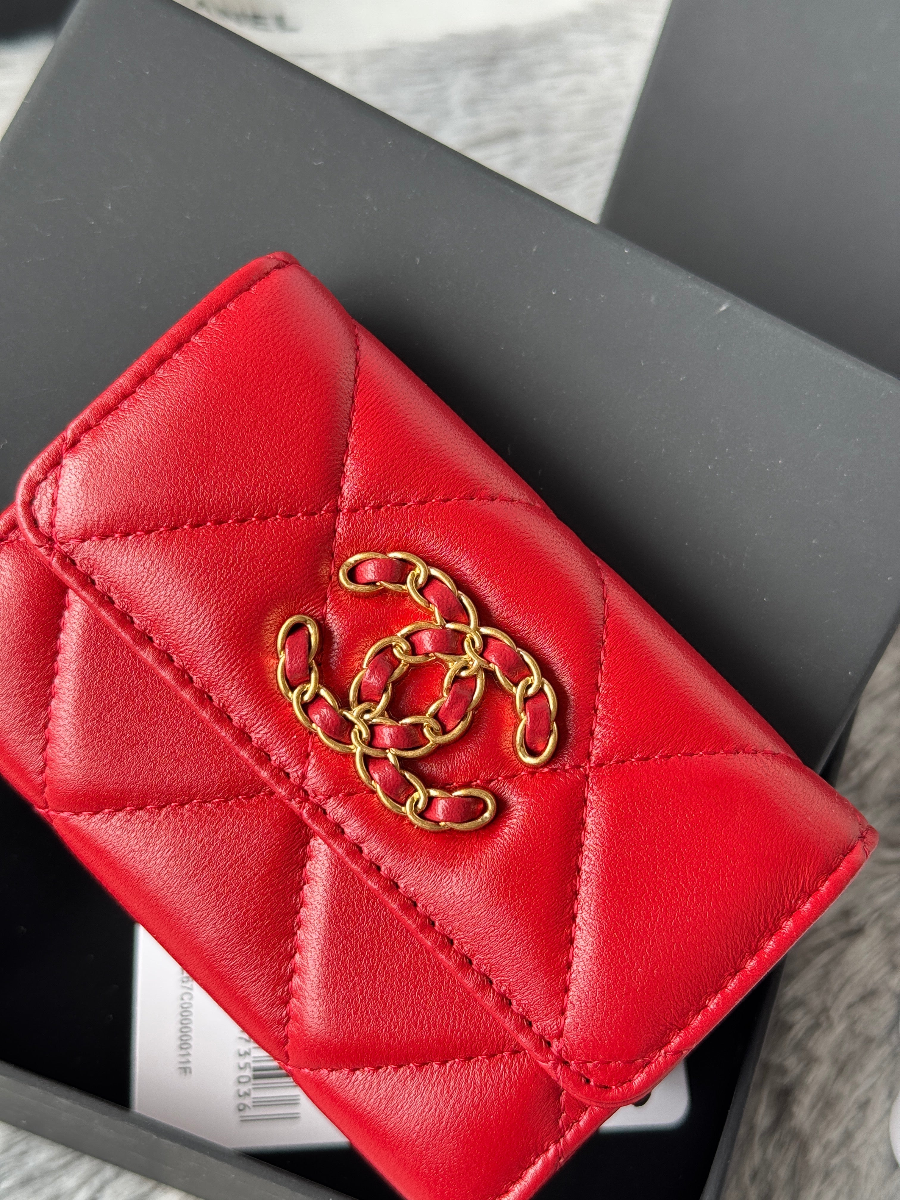 MINI FLAP CARD HOLDER 11 IN RED LAMBSKIN GOLD-TONE METALLIC