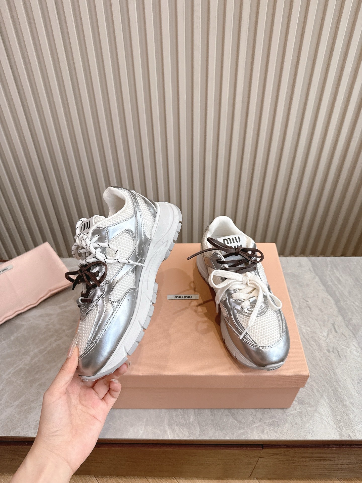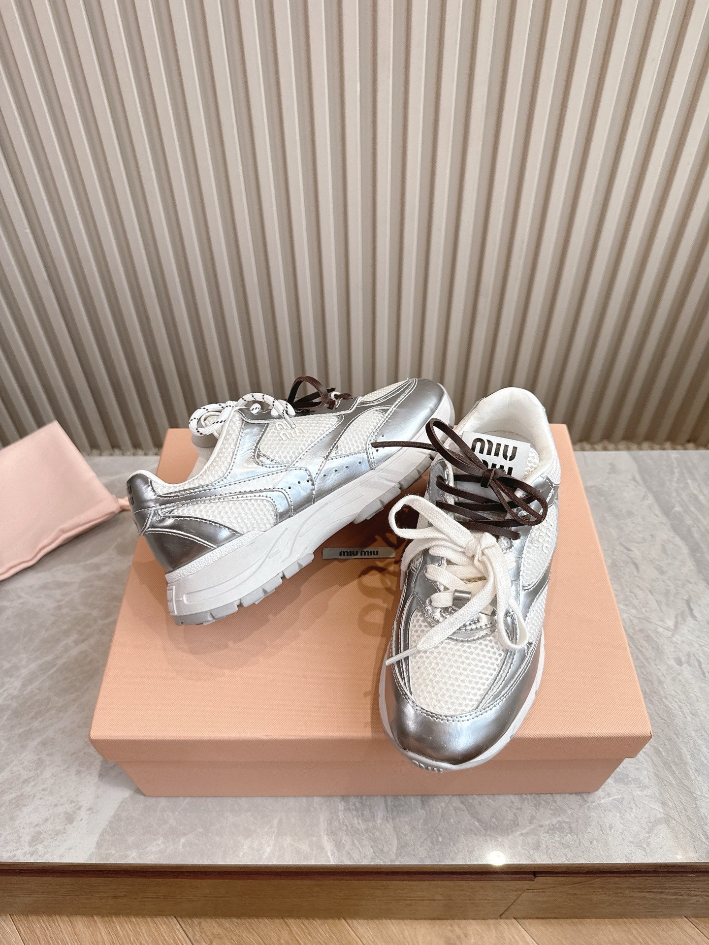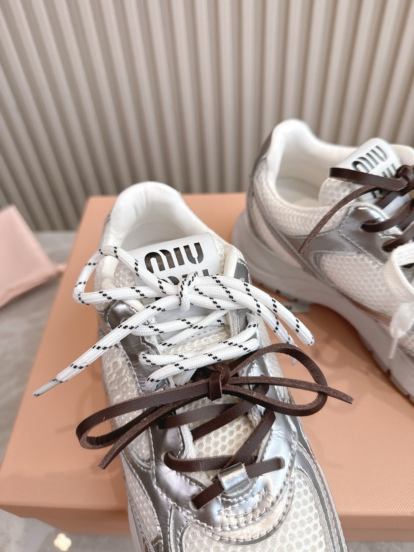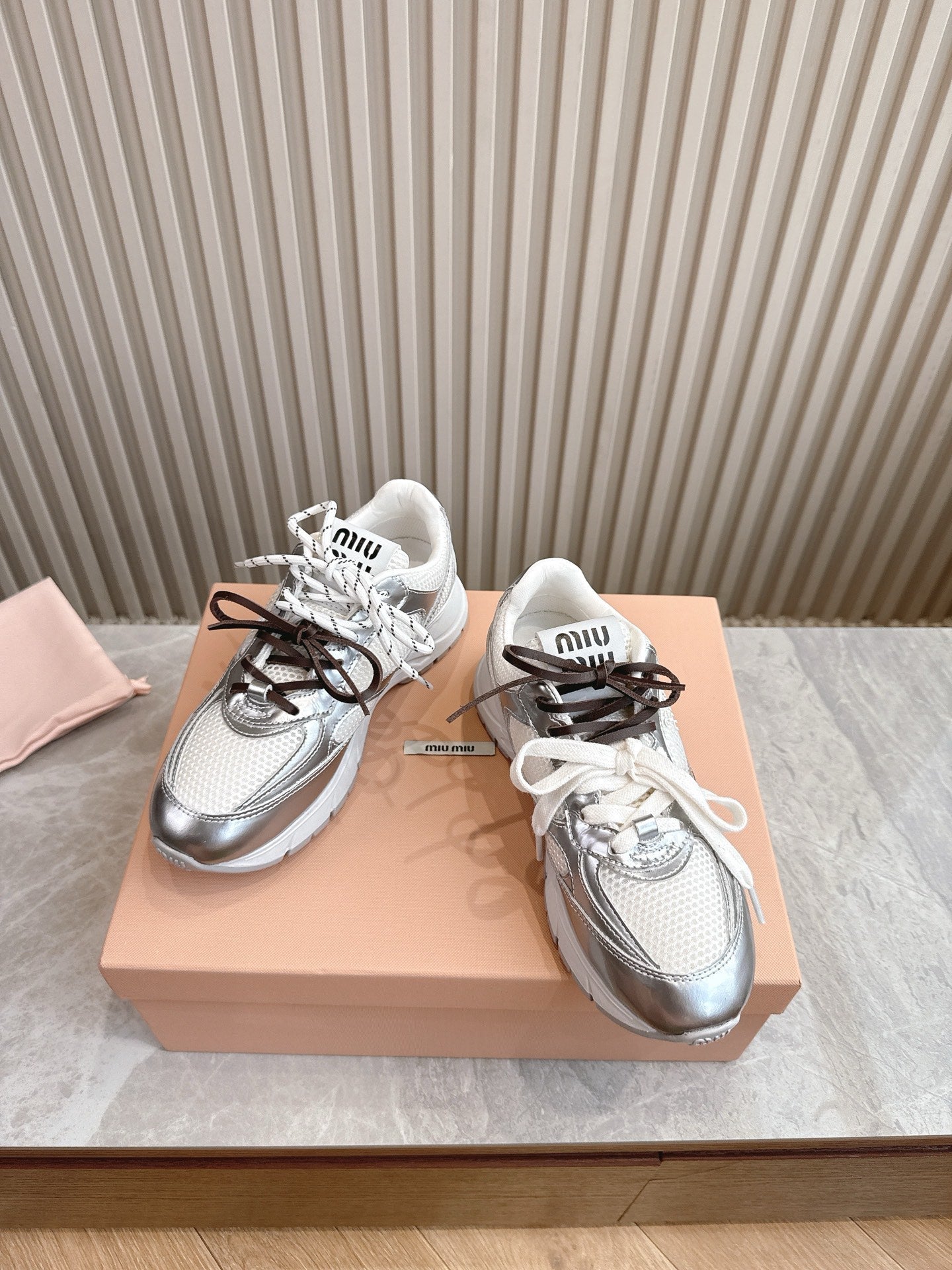 MM SNEAKERS IN WHITE AND SILVER MESH MIX CALFSKIN